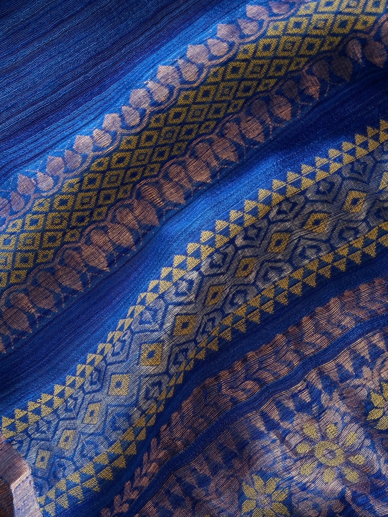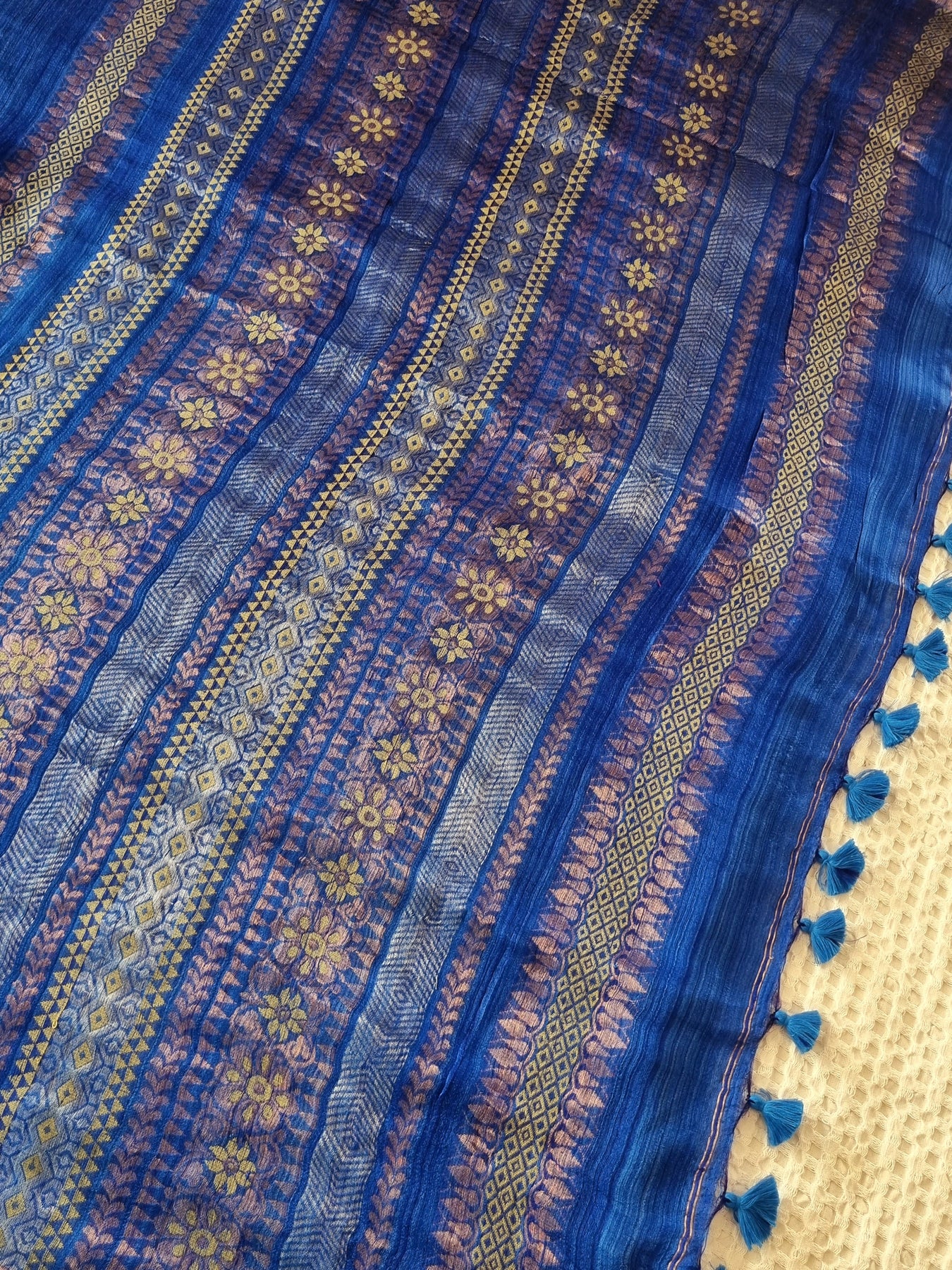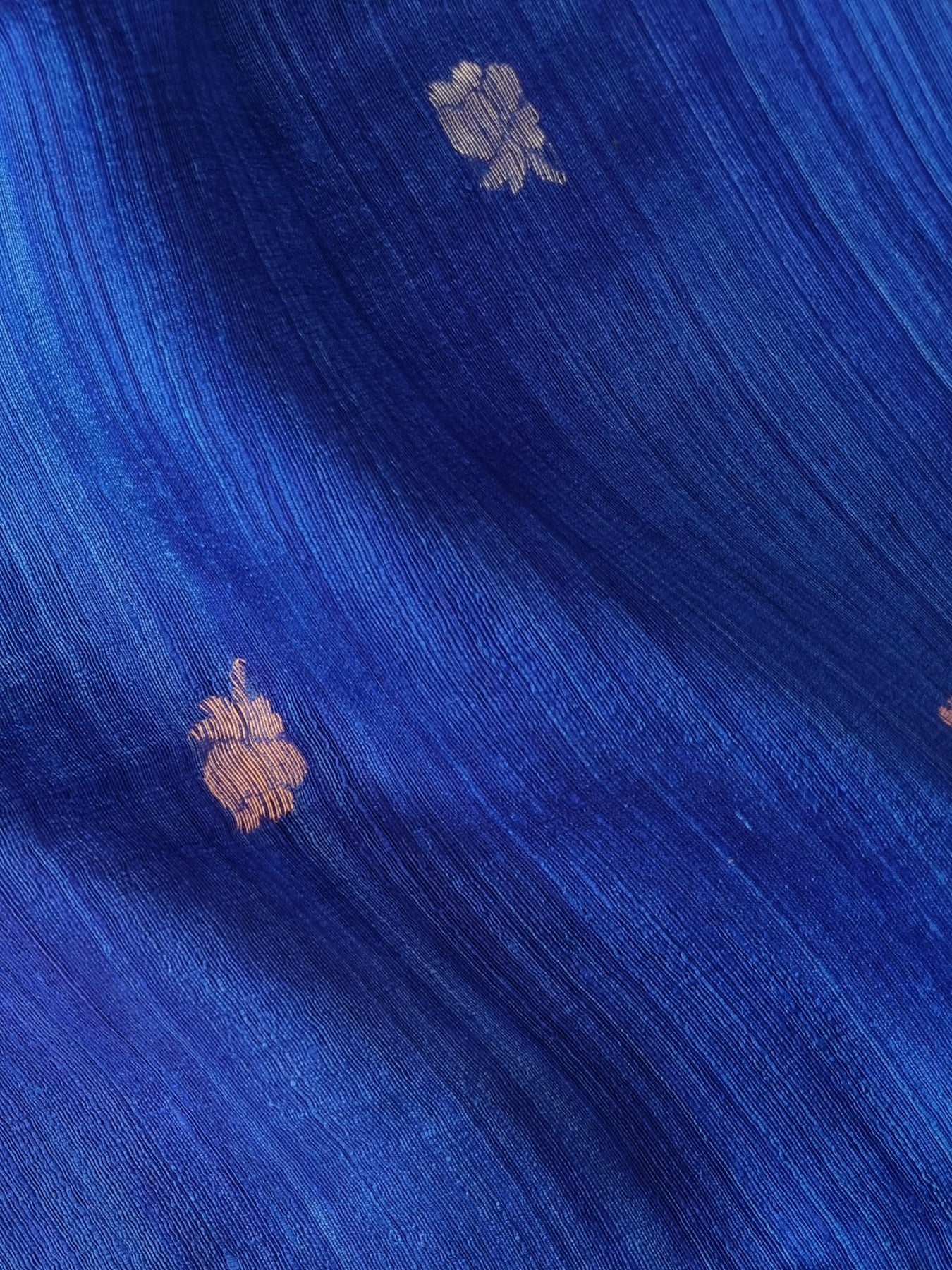 An elegant Cobalt Blue Pure Matka Silk Saree with a pallu, beautifully finished with tassels