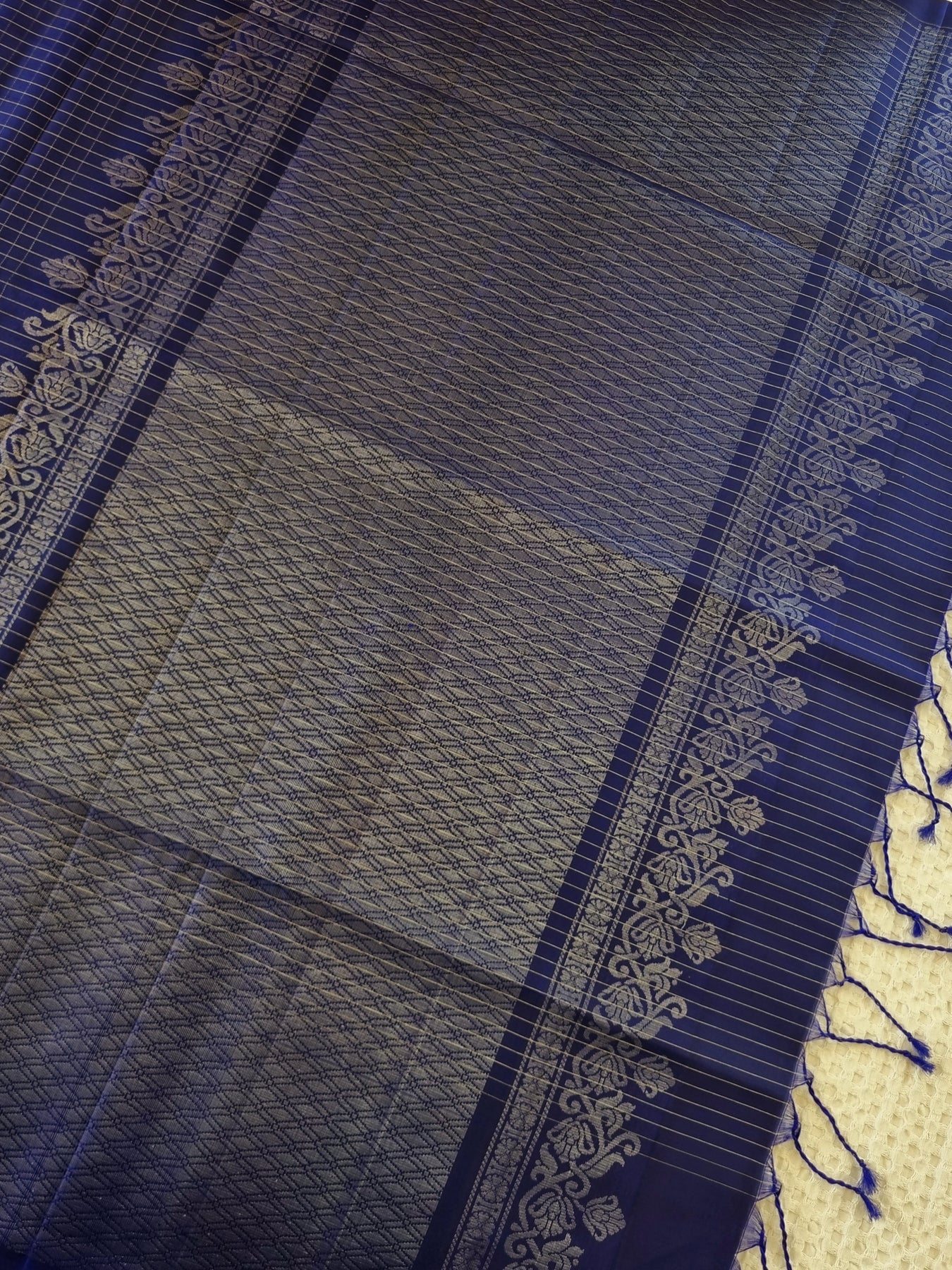 Borderless Handwoven Kanjivaram Soft Silk With Silver Zari
