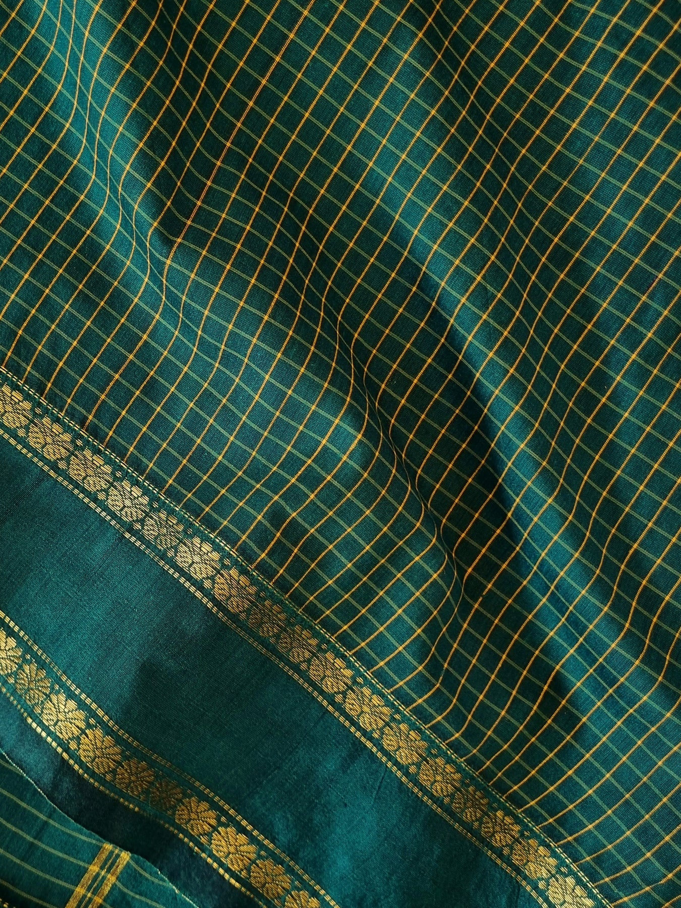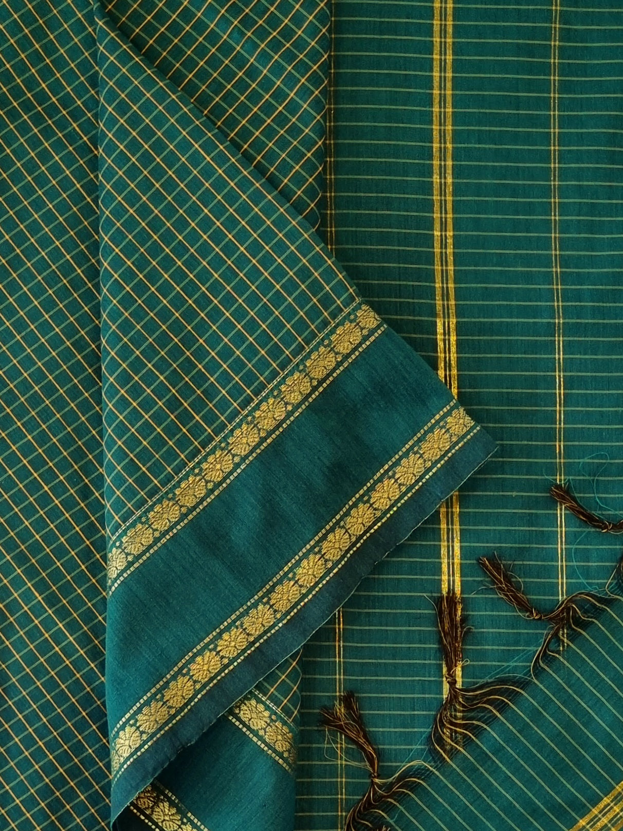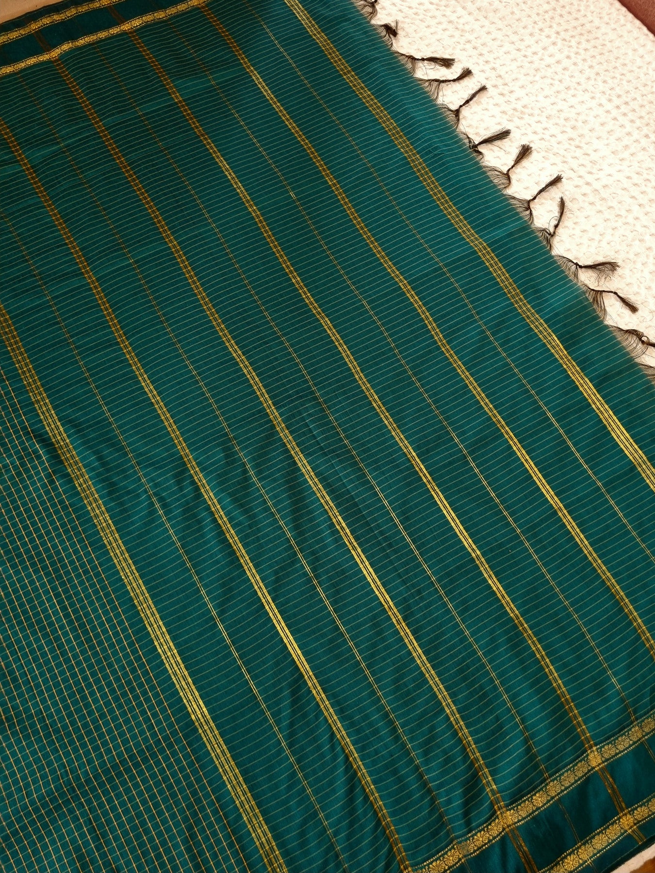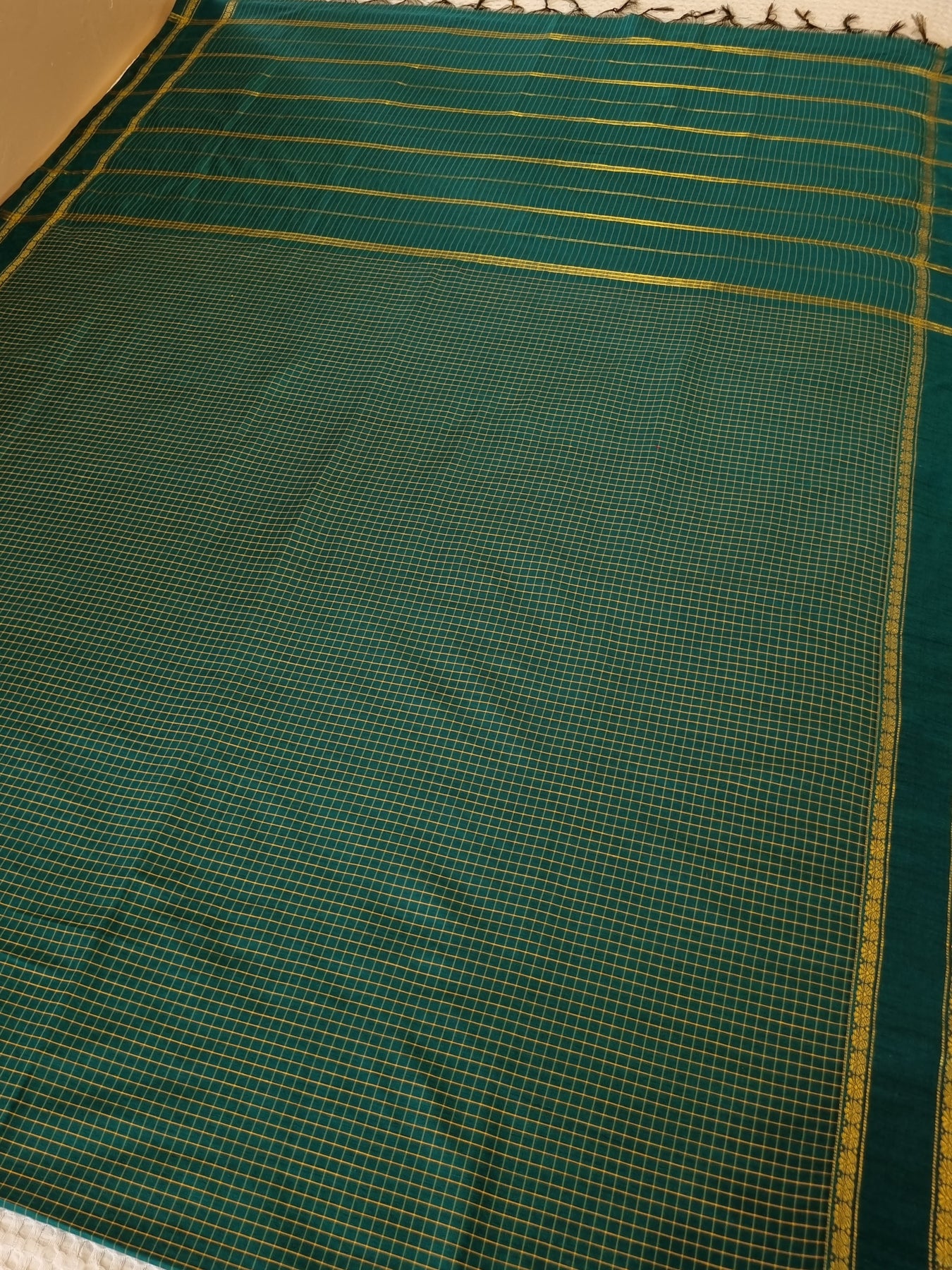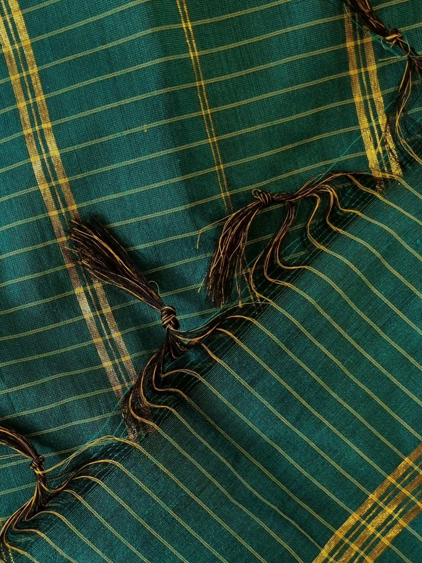 An elegant Silk Cotton Saree with Zari checks on the body and, beautifully finished with tassels