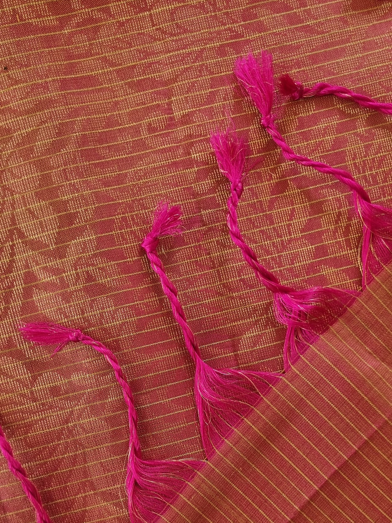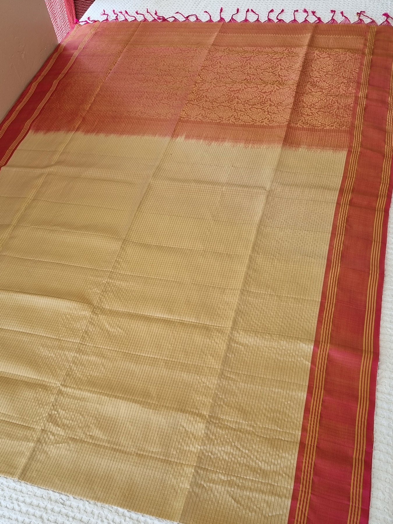 Beautiful Handwoven Soft Silk Saree with an elegant checked body and intricately woven gold motifs on the body and a rich contrast pallu