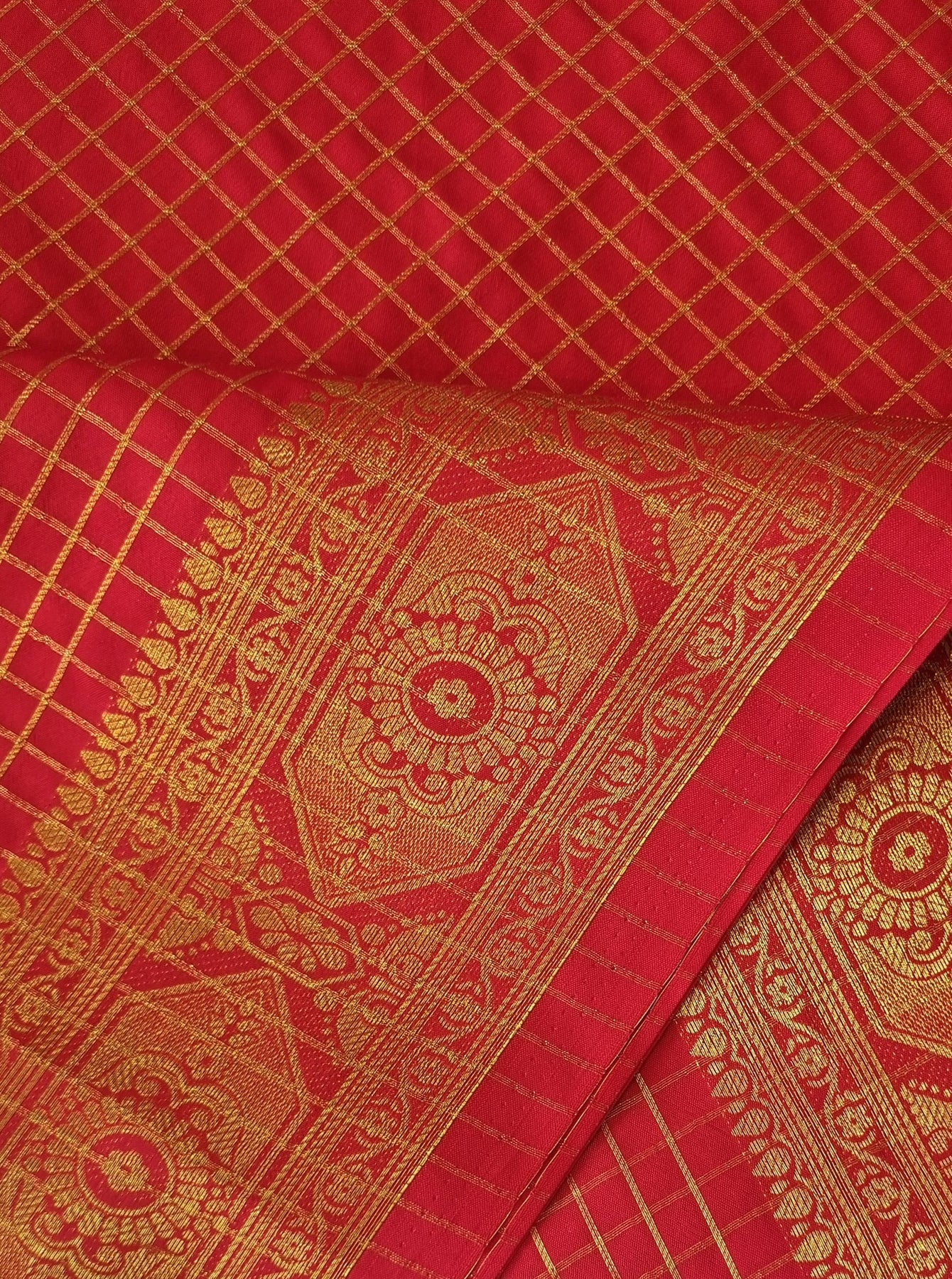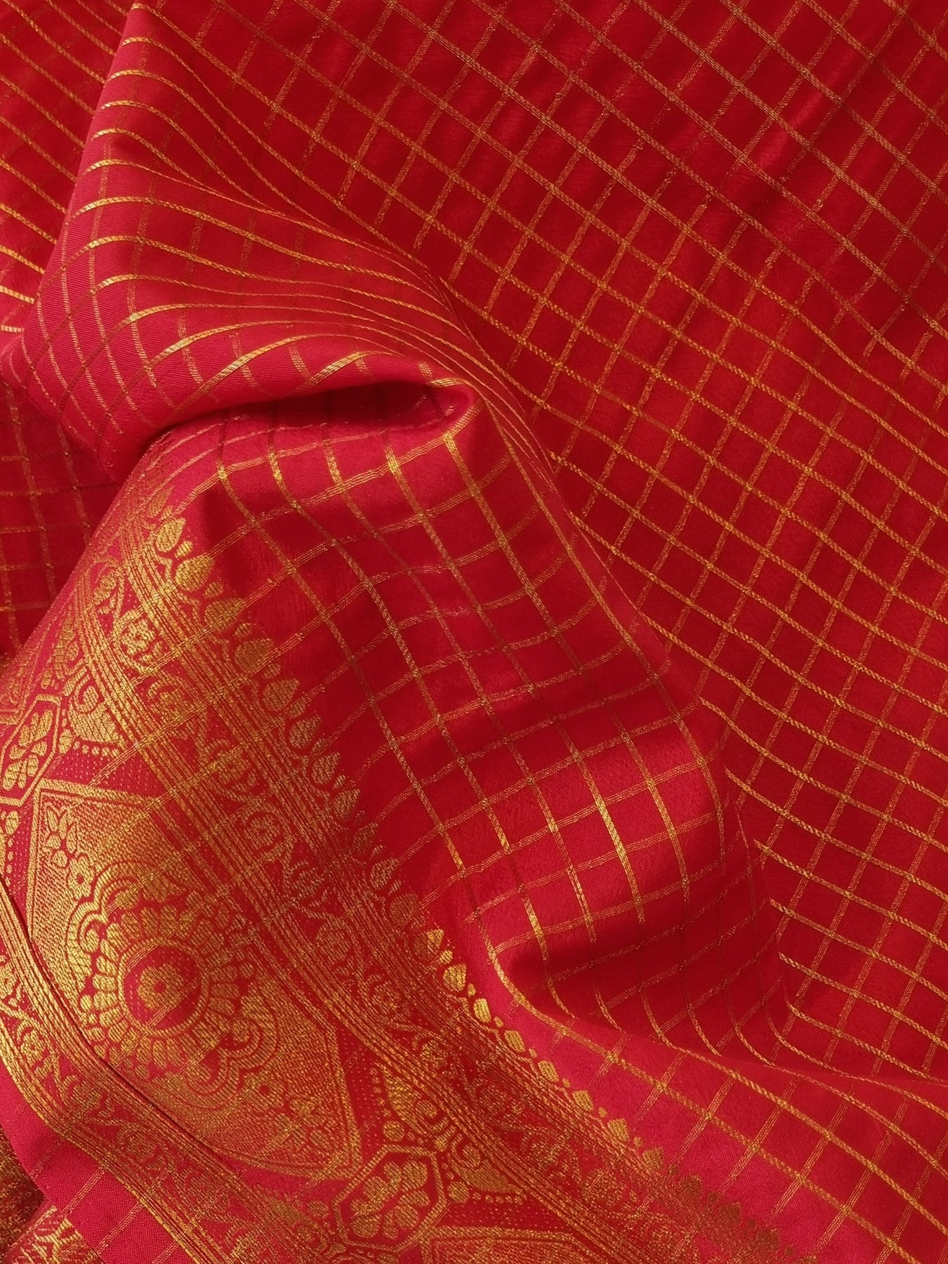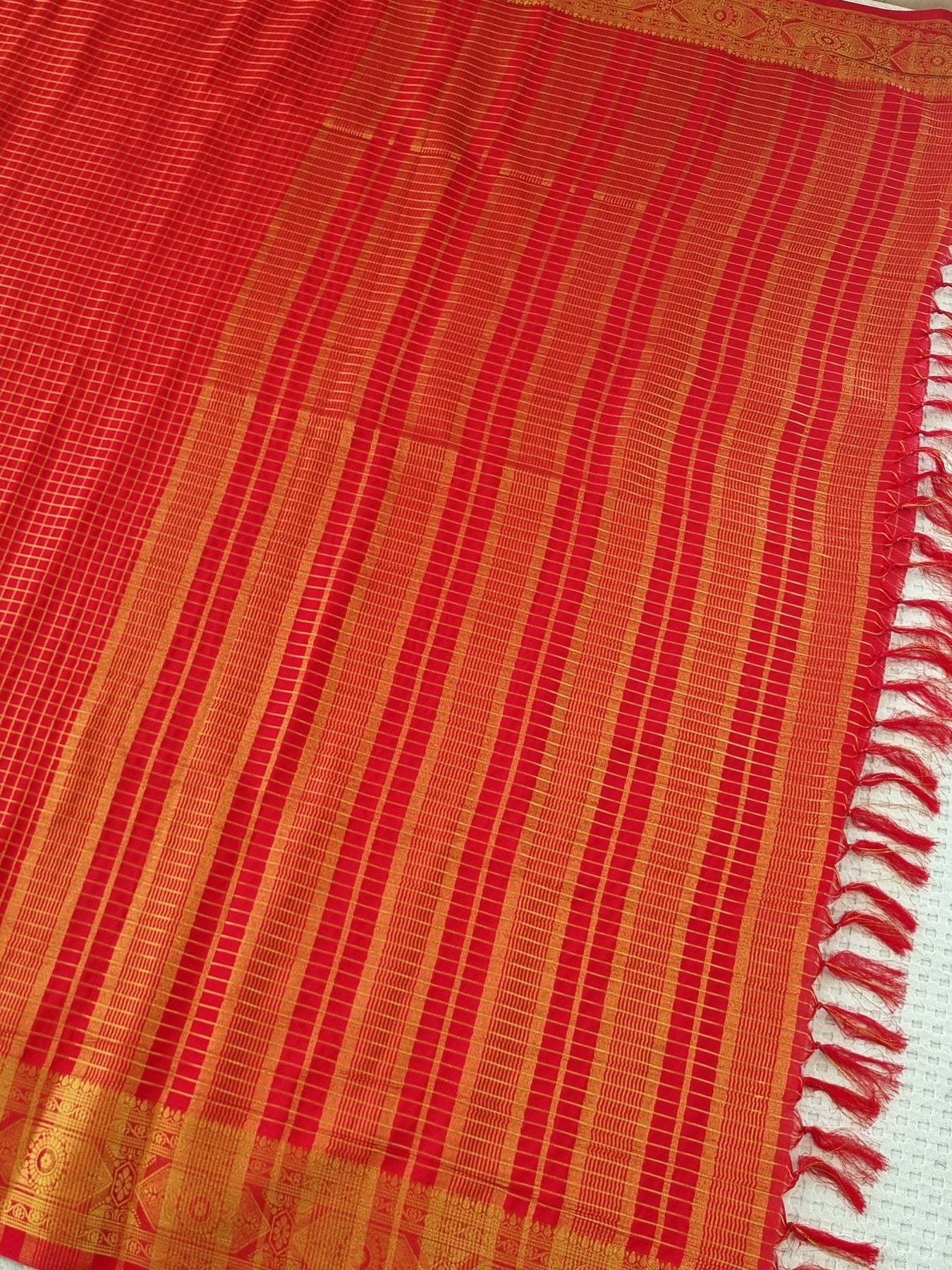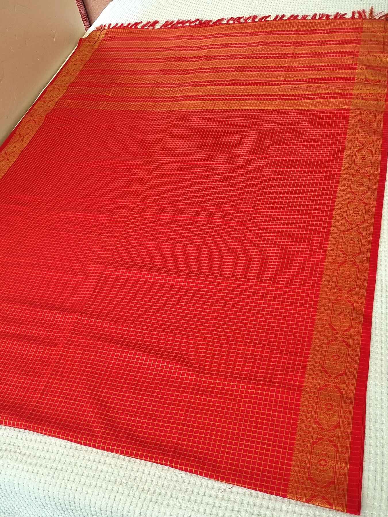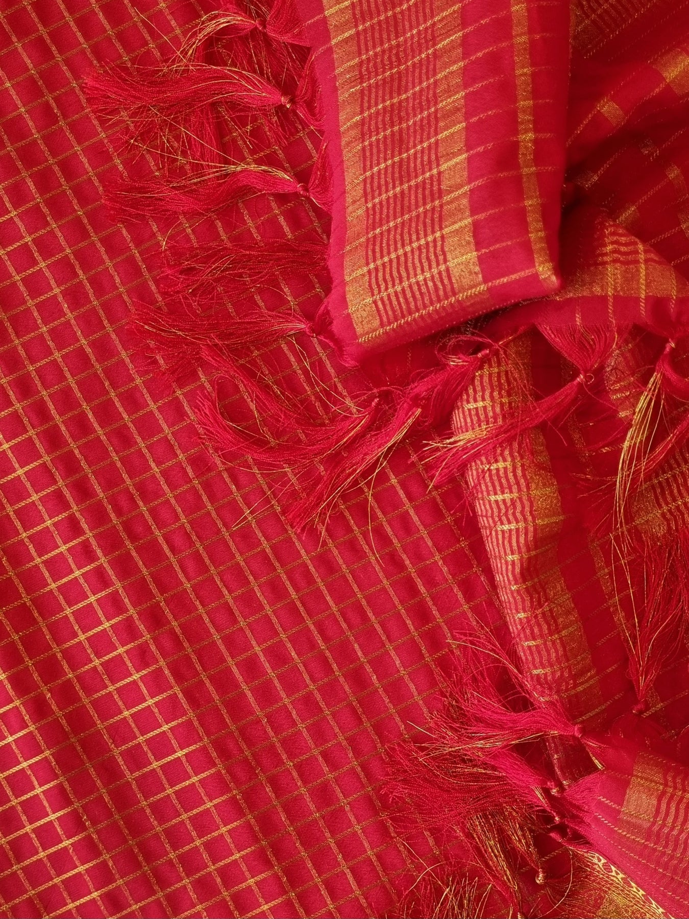 An elegant Semi Silk Saree with Zari checks on the body and, beautifully finished with tassels