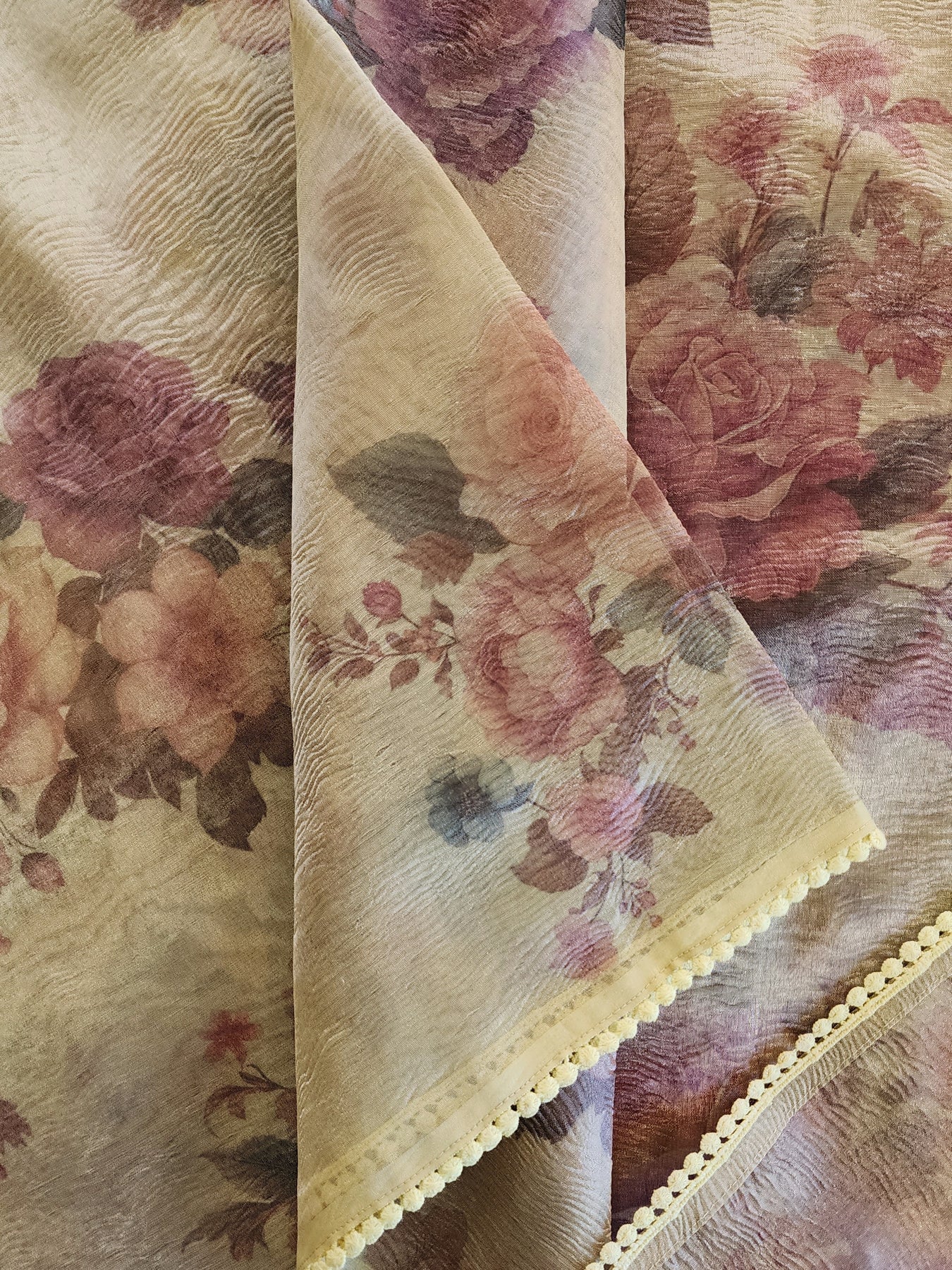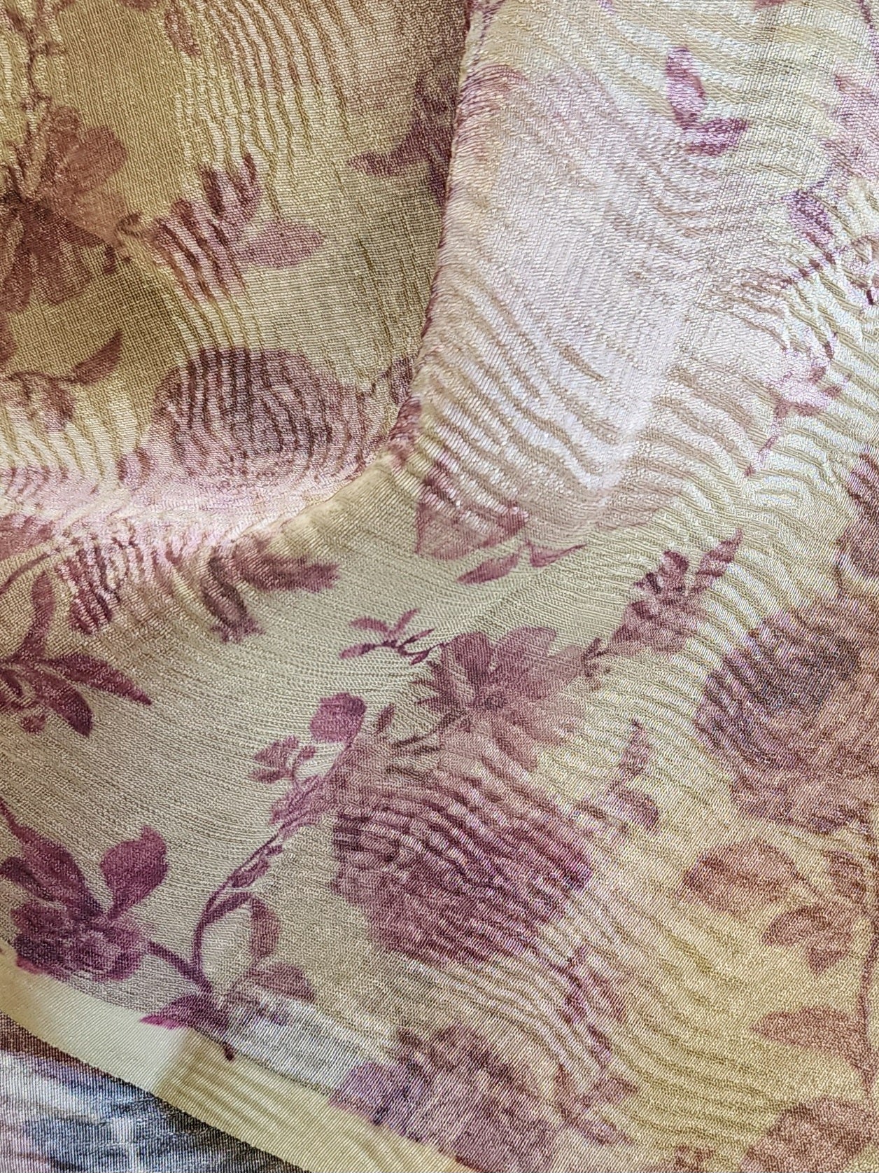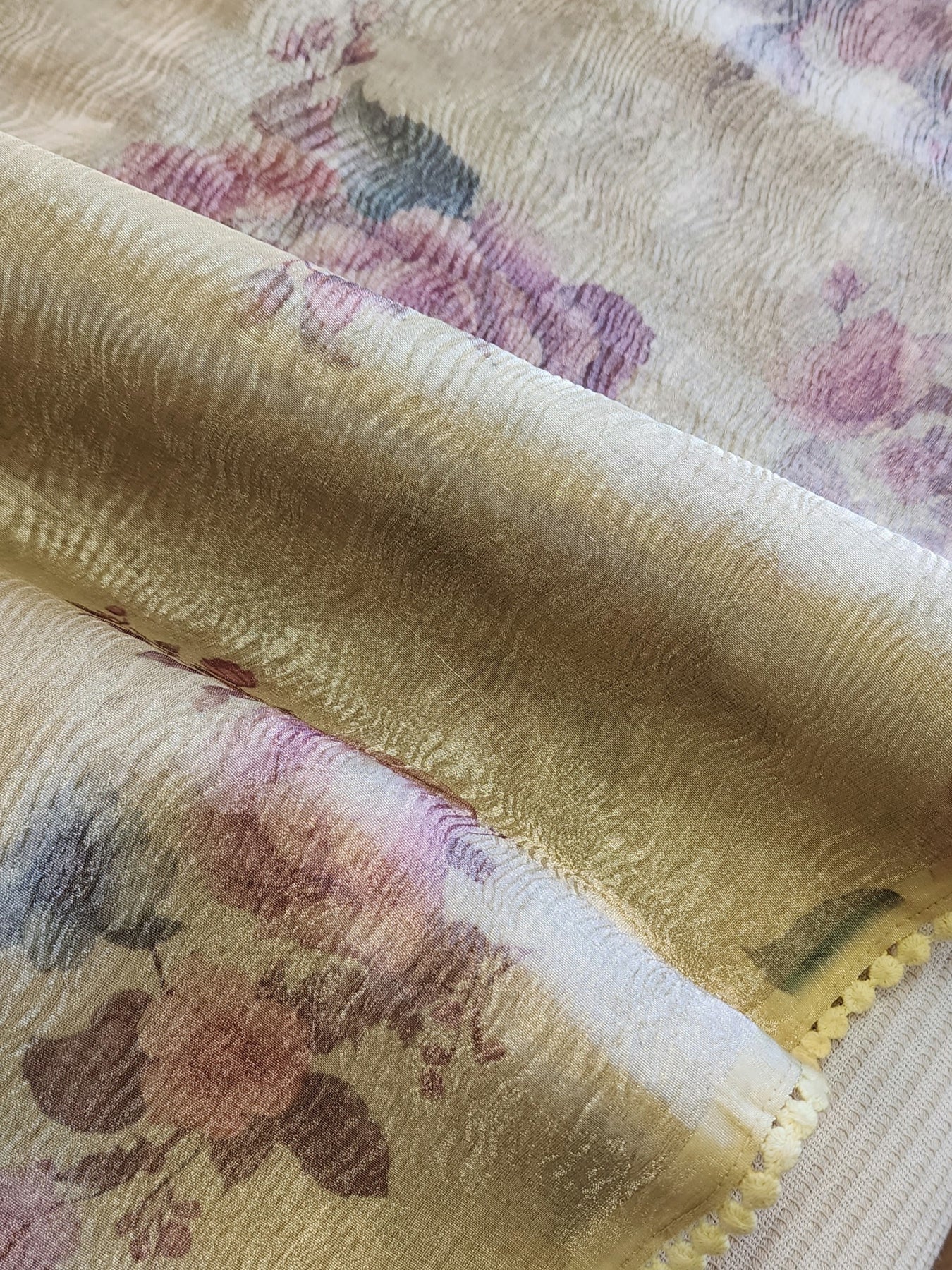 This elegant Crushed Silk Saree with Digital Floral Prints has a modern appeal