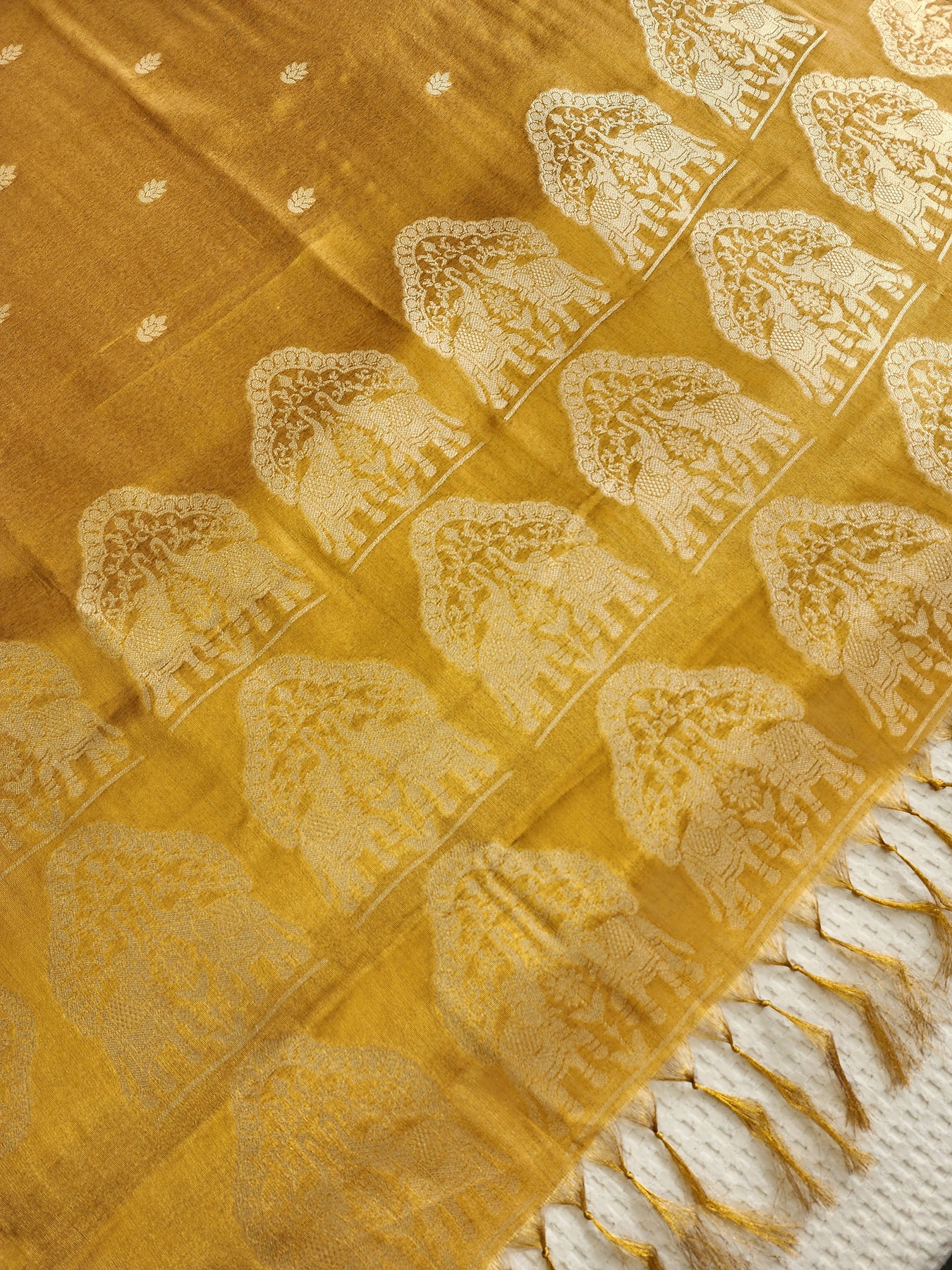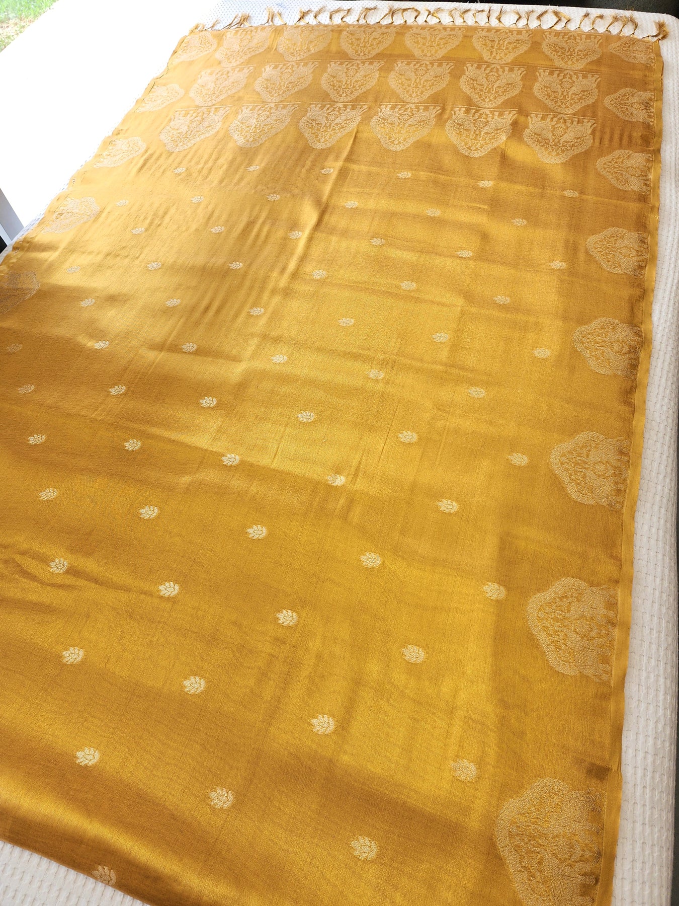 Dual Toned Yellow Tissue Saree with Woven Borders