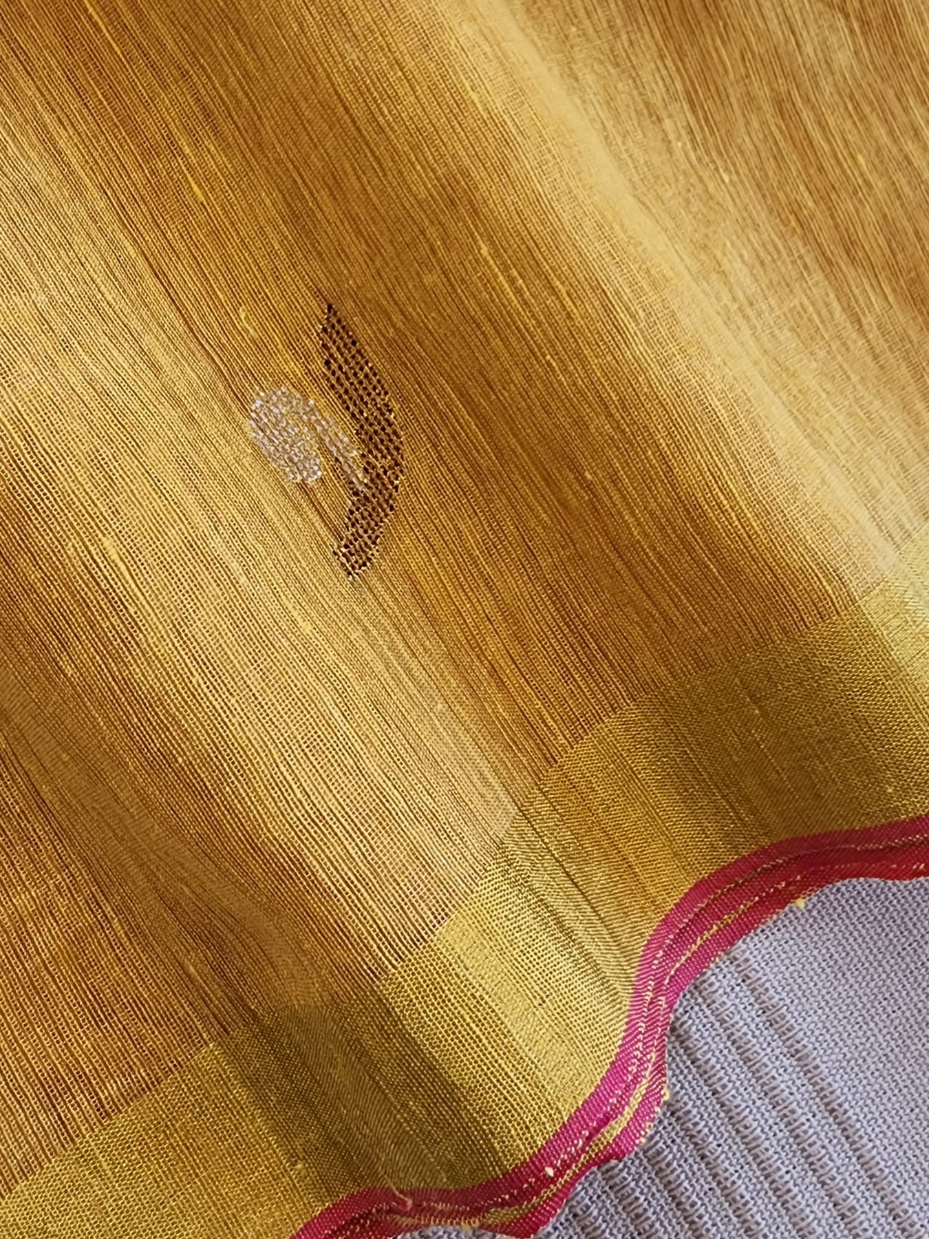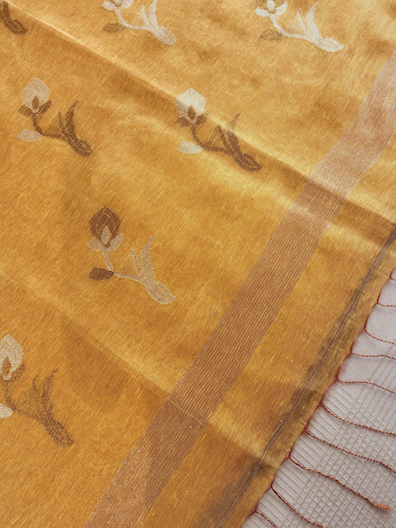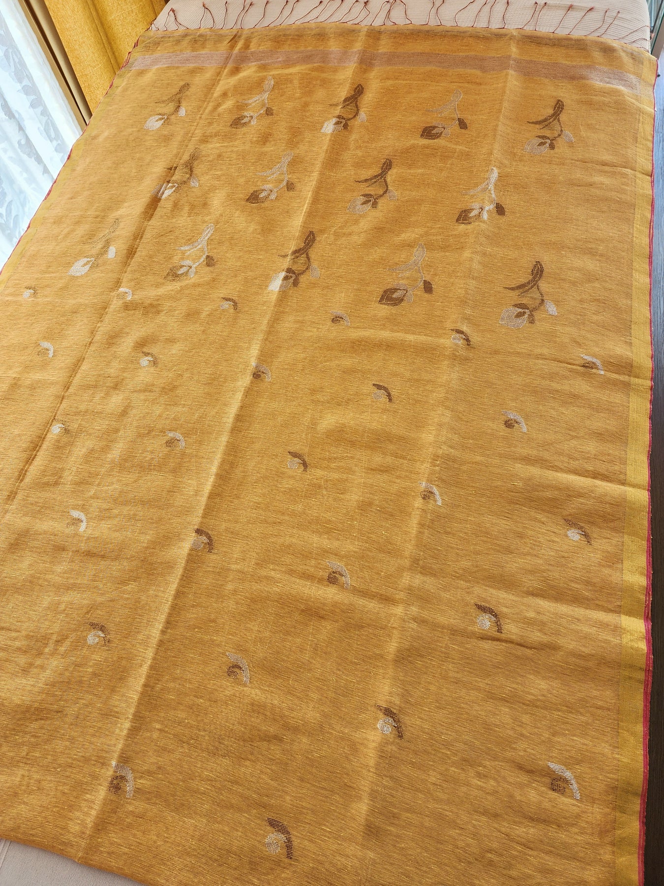 This elegant Tissue Linen Saree with Embroidery has a modern appeal