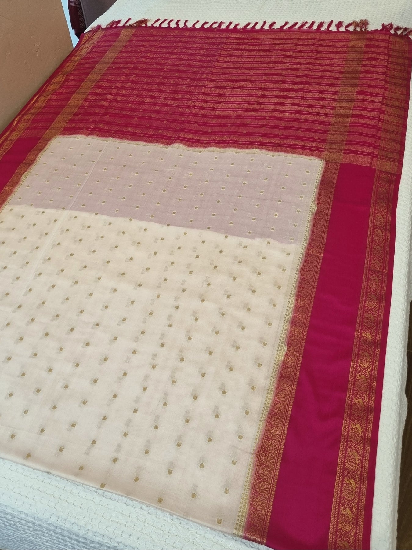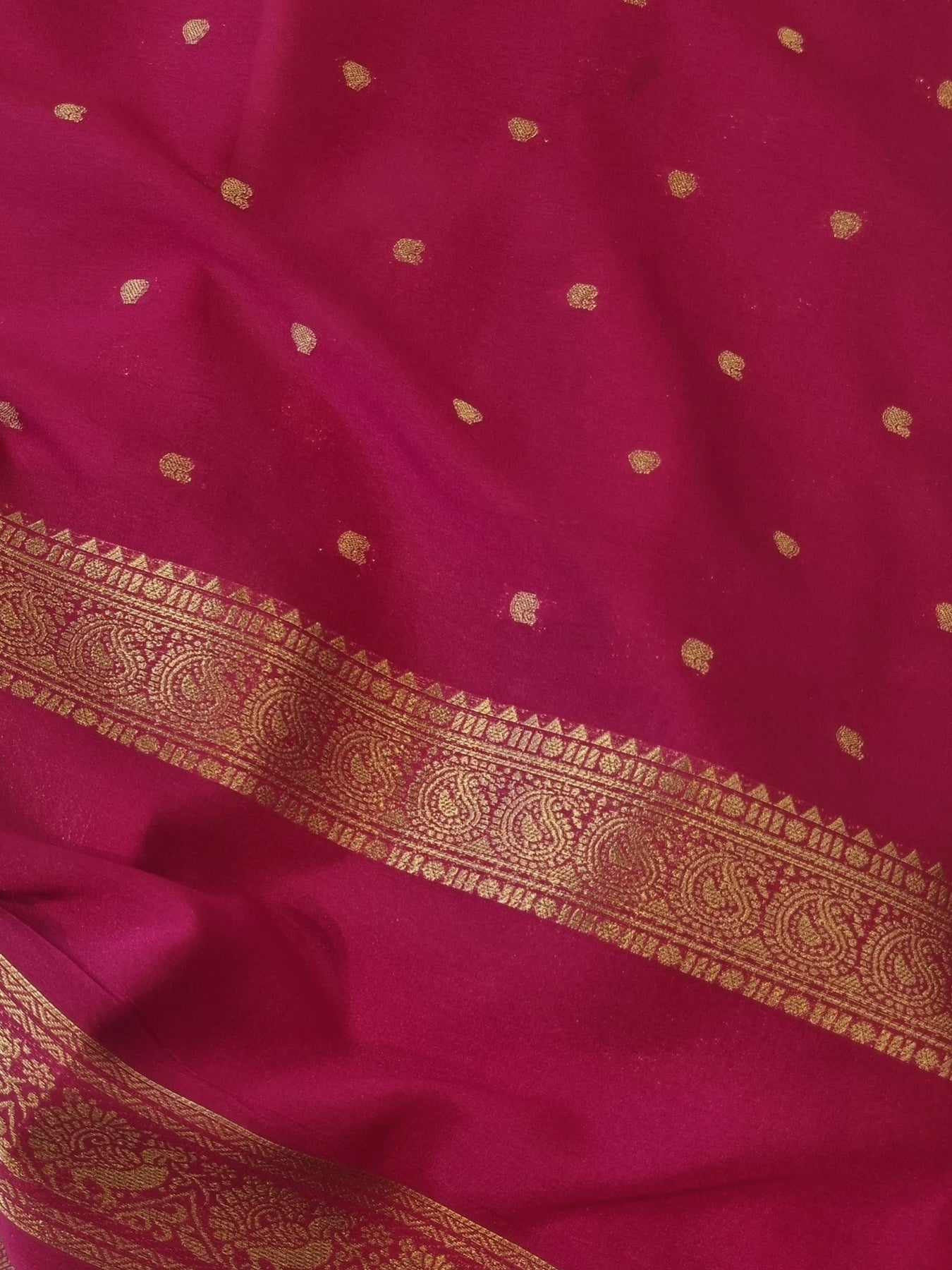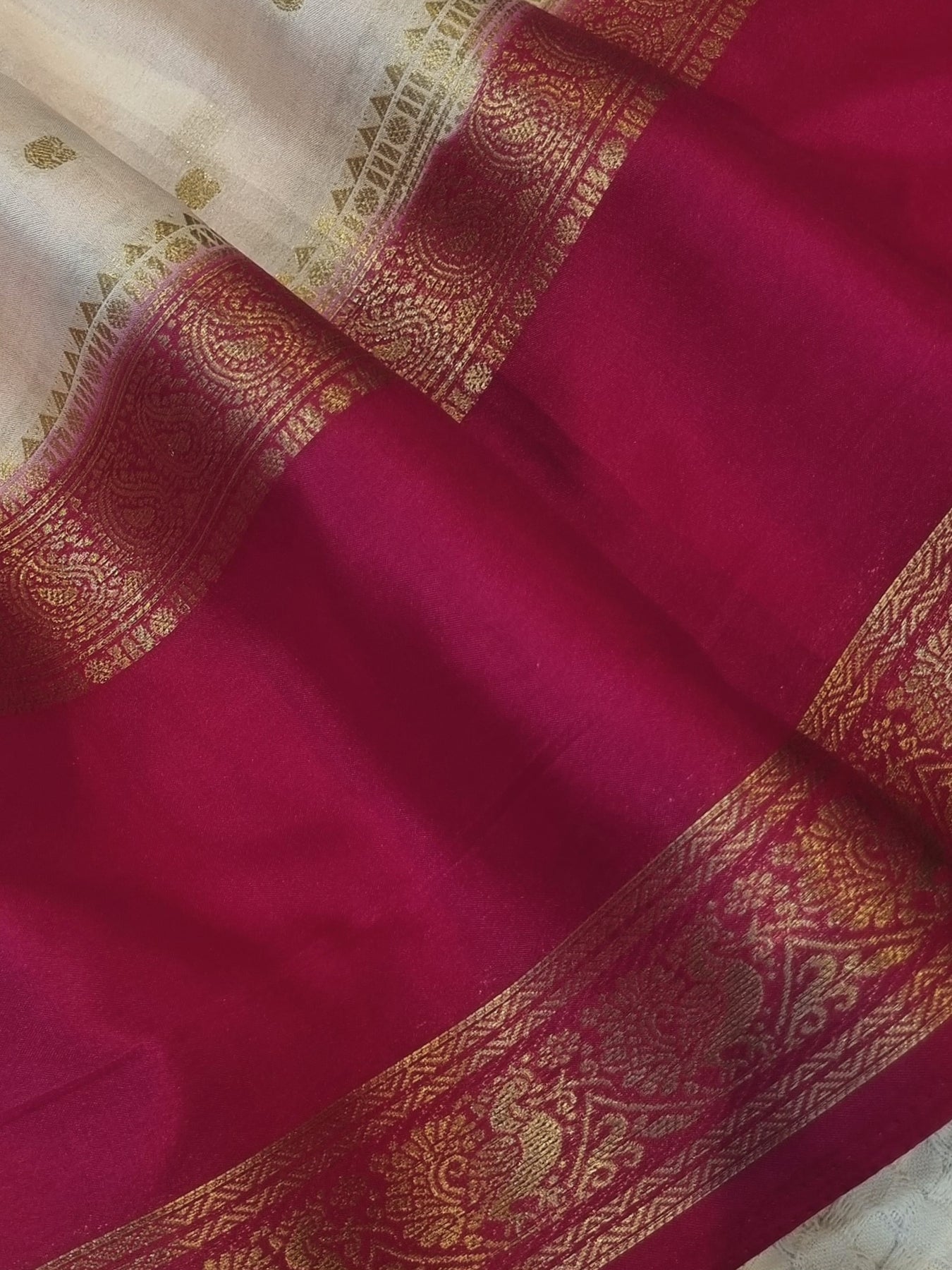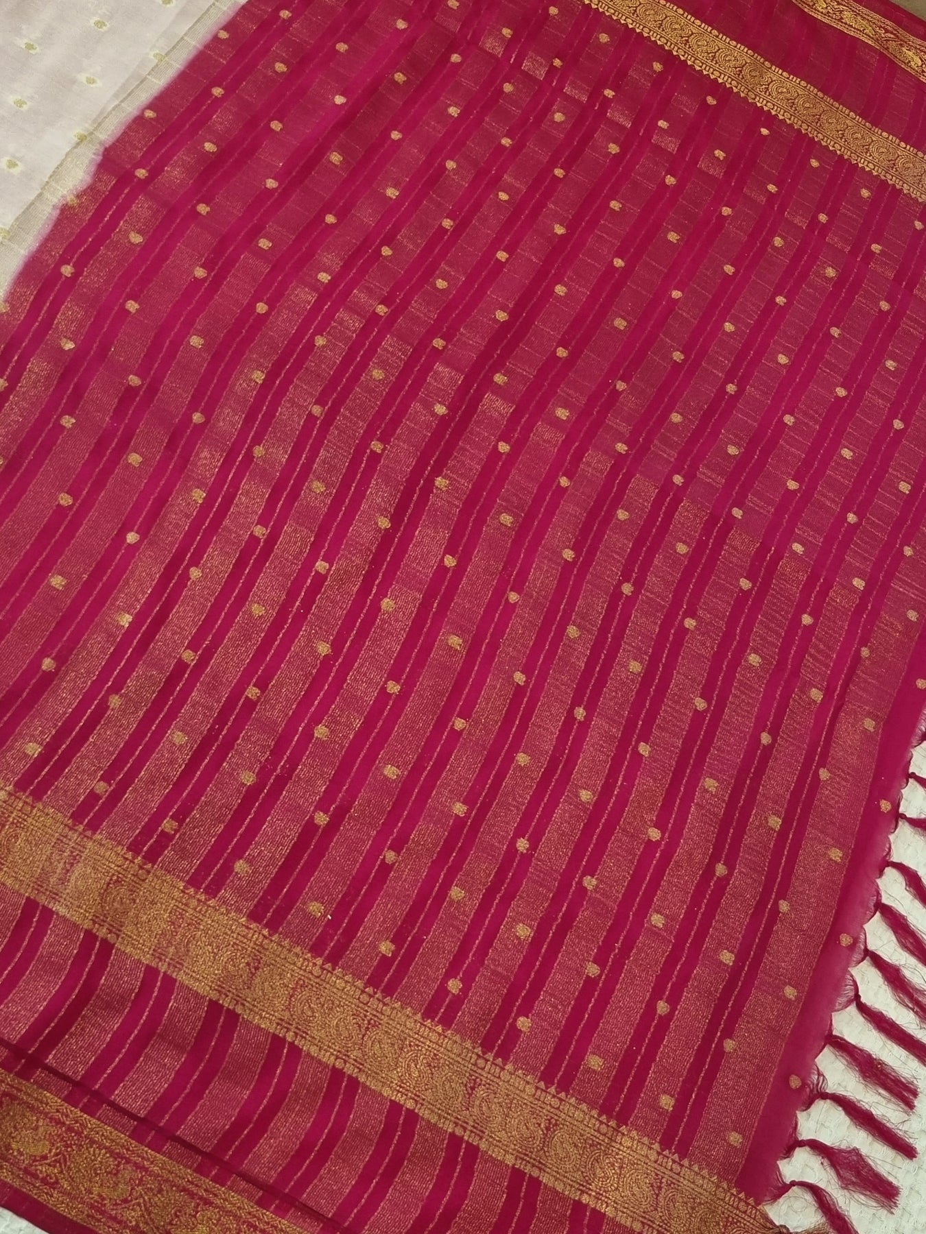 • The beautiful Gold Striped Zari patterns on the body and pallu elevates the style quotient