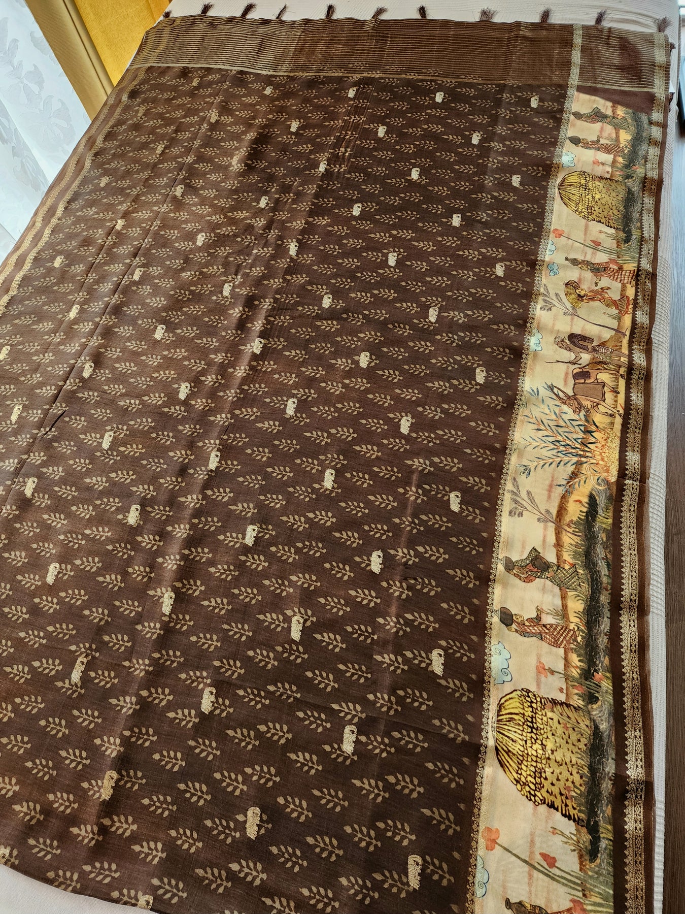 Semi Georgette Saree, with woven borders, paired with a Blouse fabric