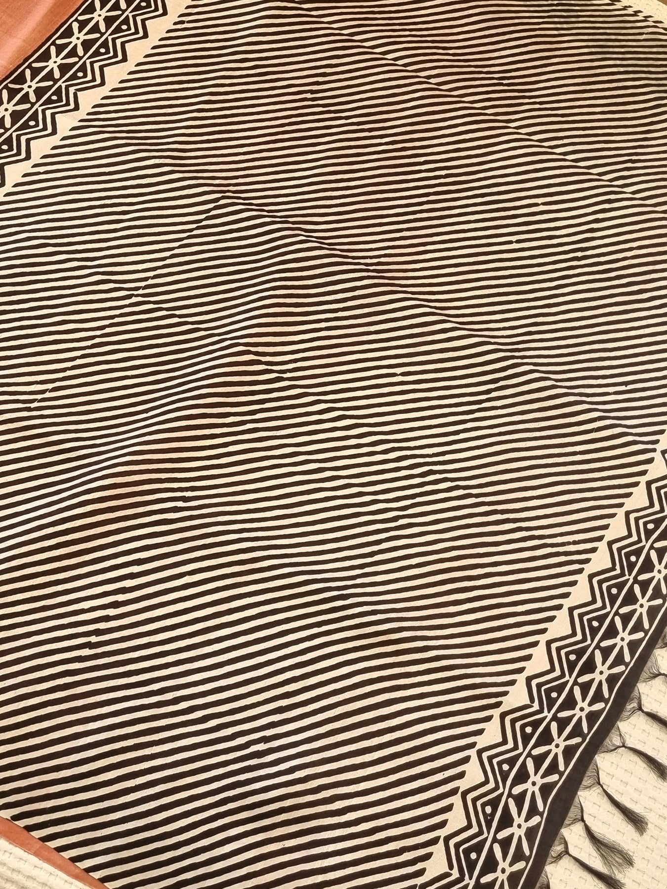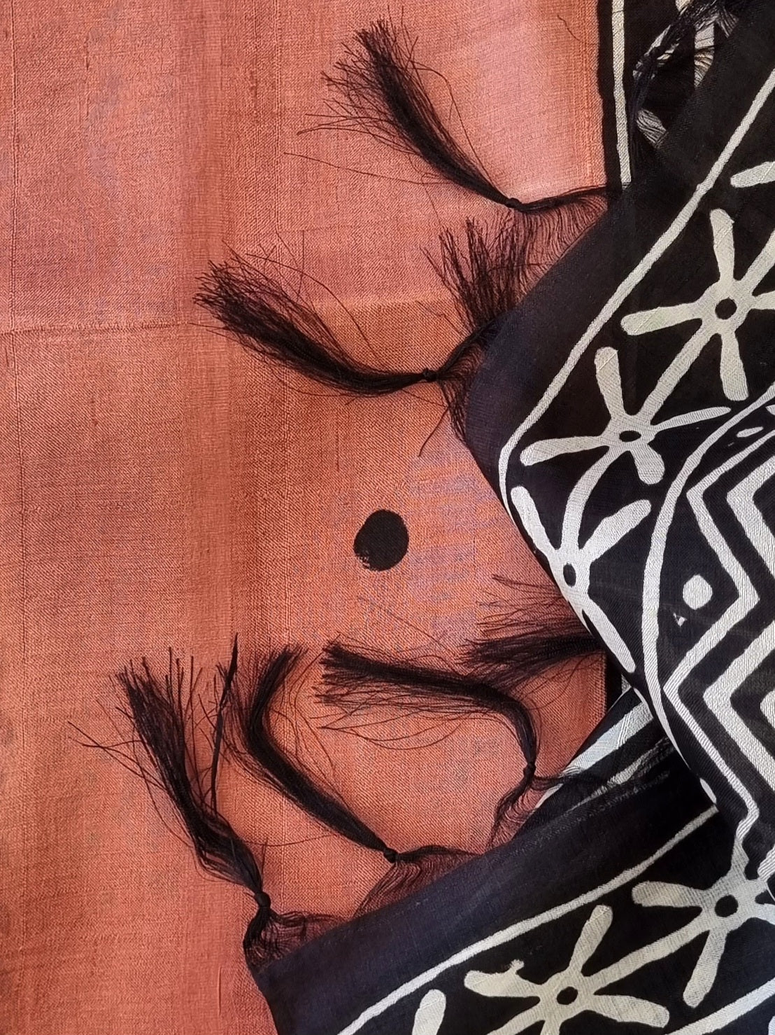 Handloom Murshidabad Half and Half Silk Saree with Block Prints beautifully finished with tassels