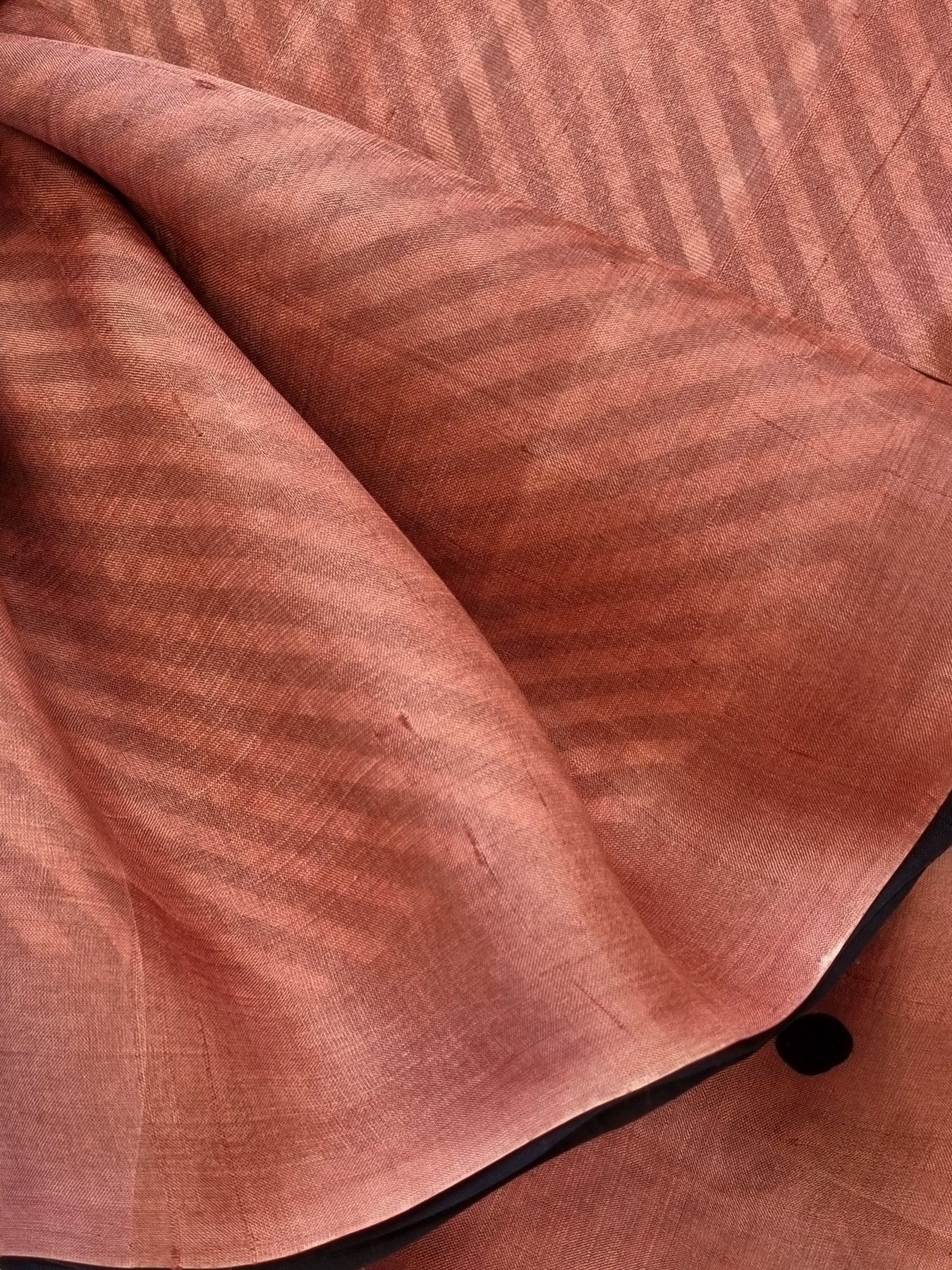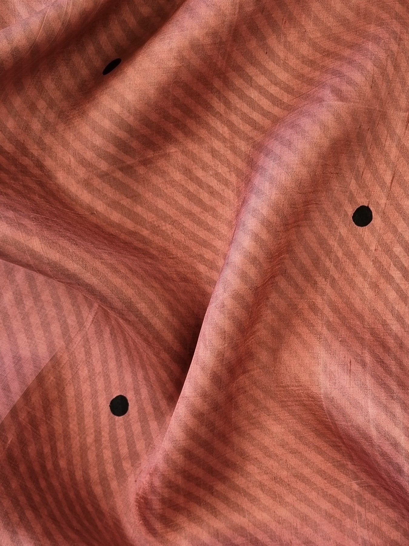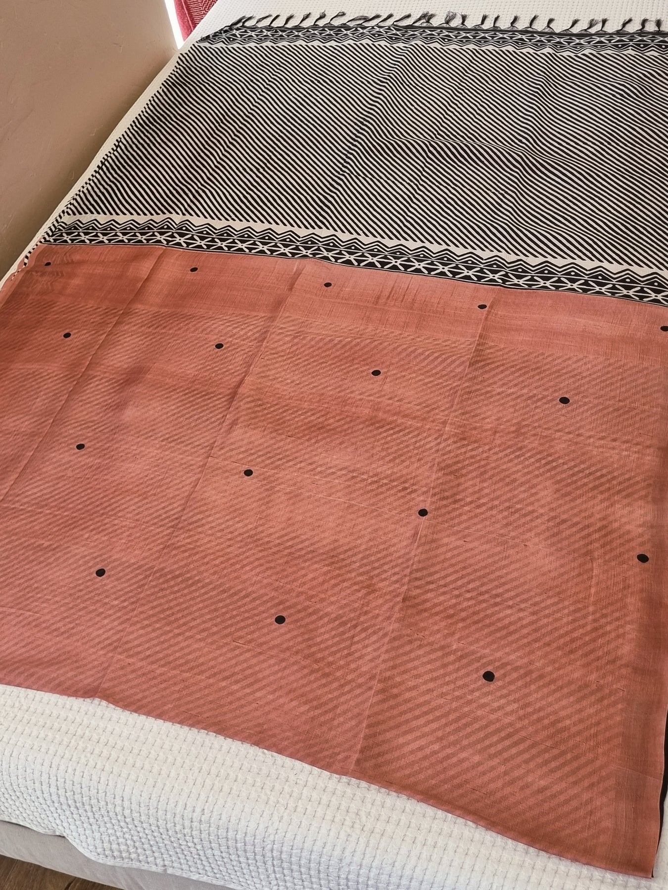 This is a genuine handwoven piece with Colour Body and contrast Pink and Black block prints