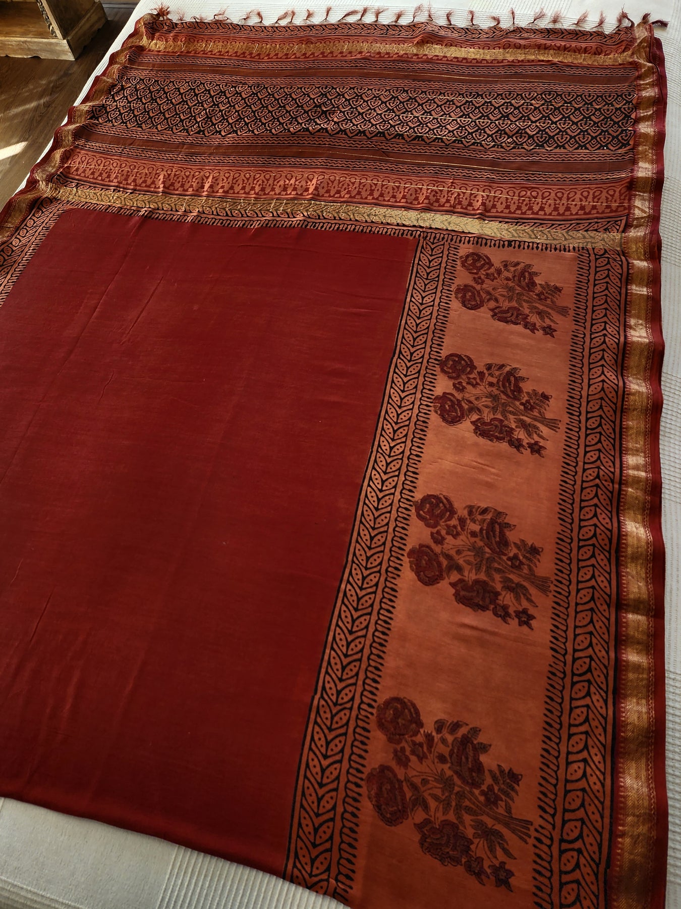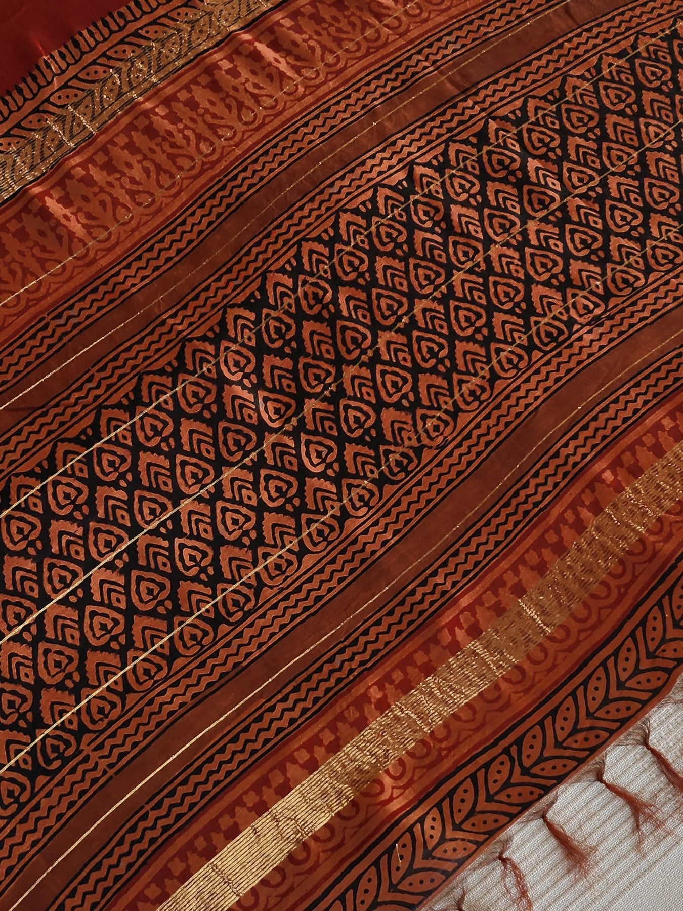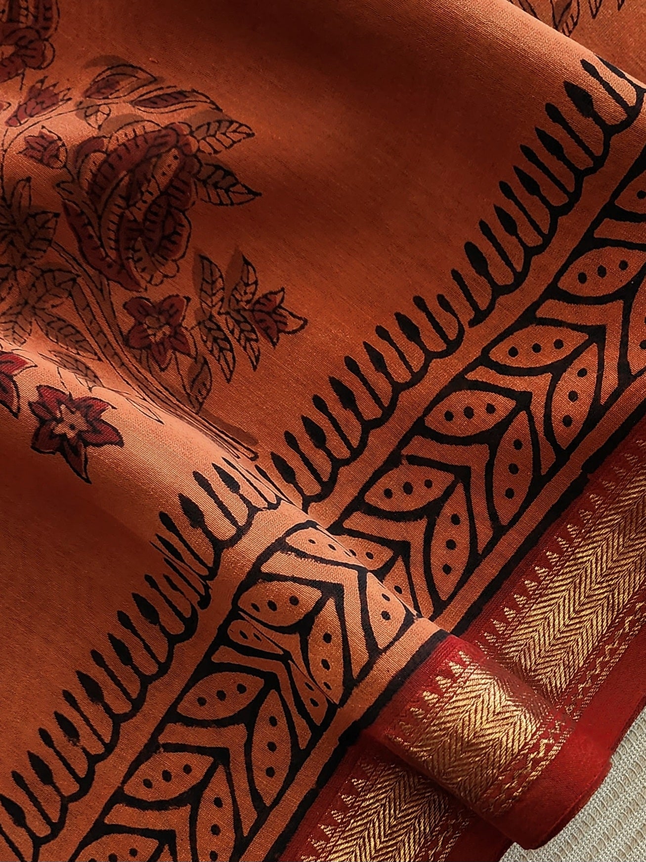 Maheshwari Silk Cotton Saree with Handblock Prints