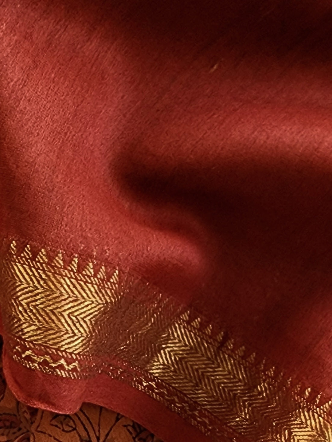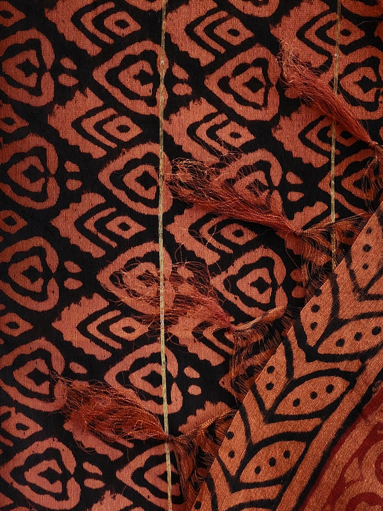 An elegant Maheshwari Silk Cotton Saree Handblock Prints