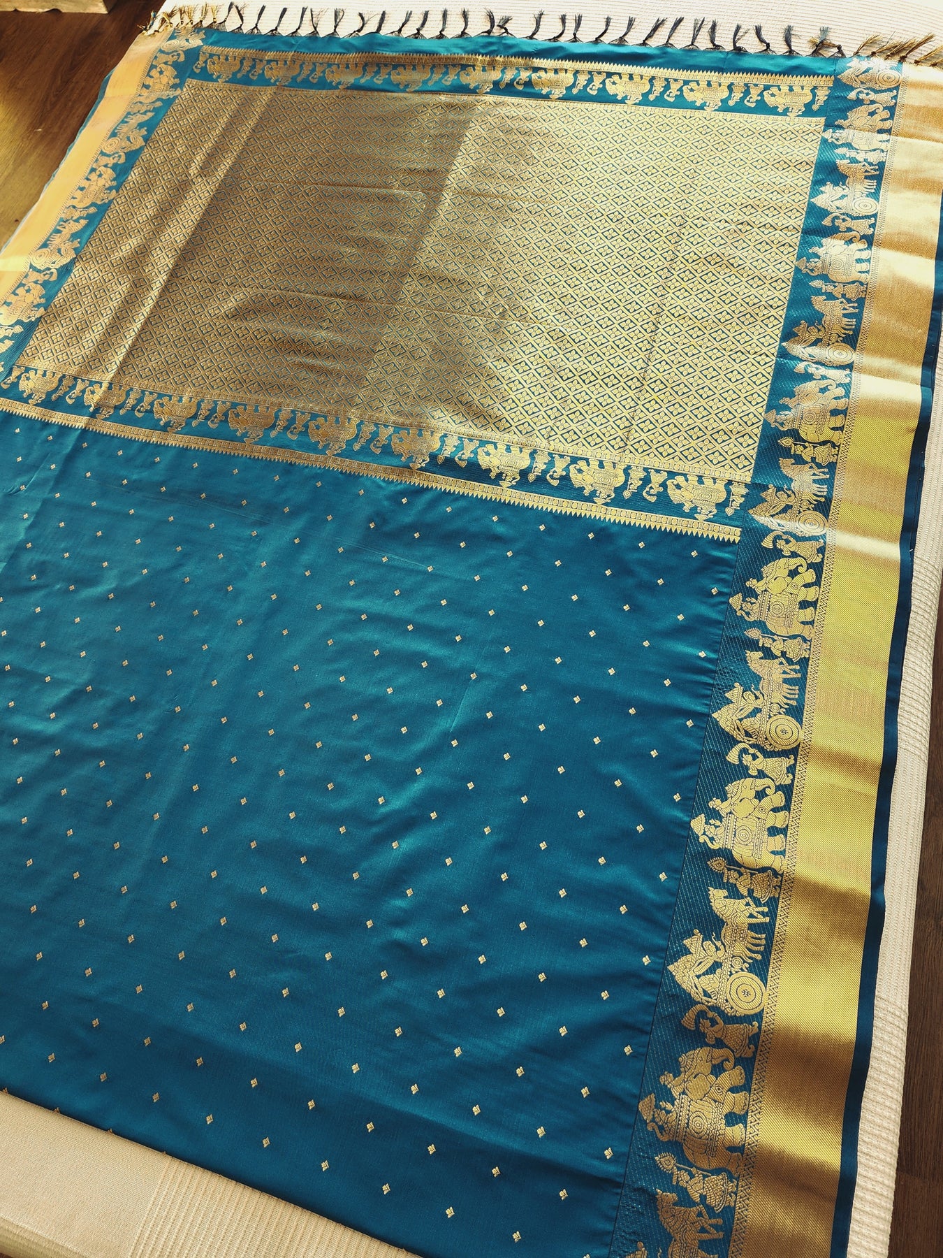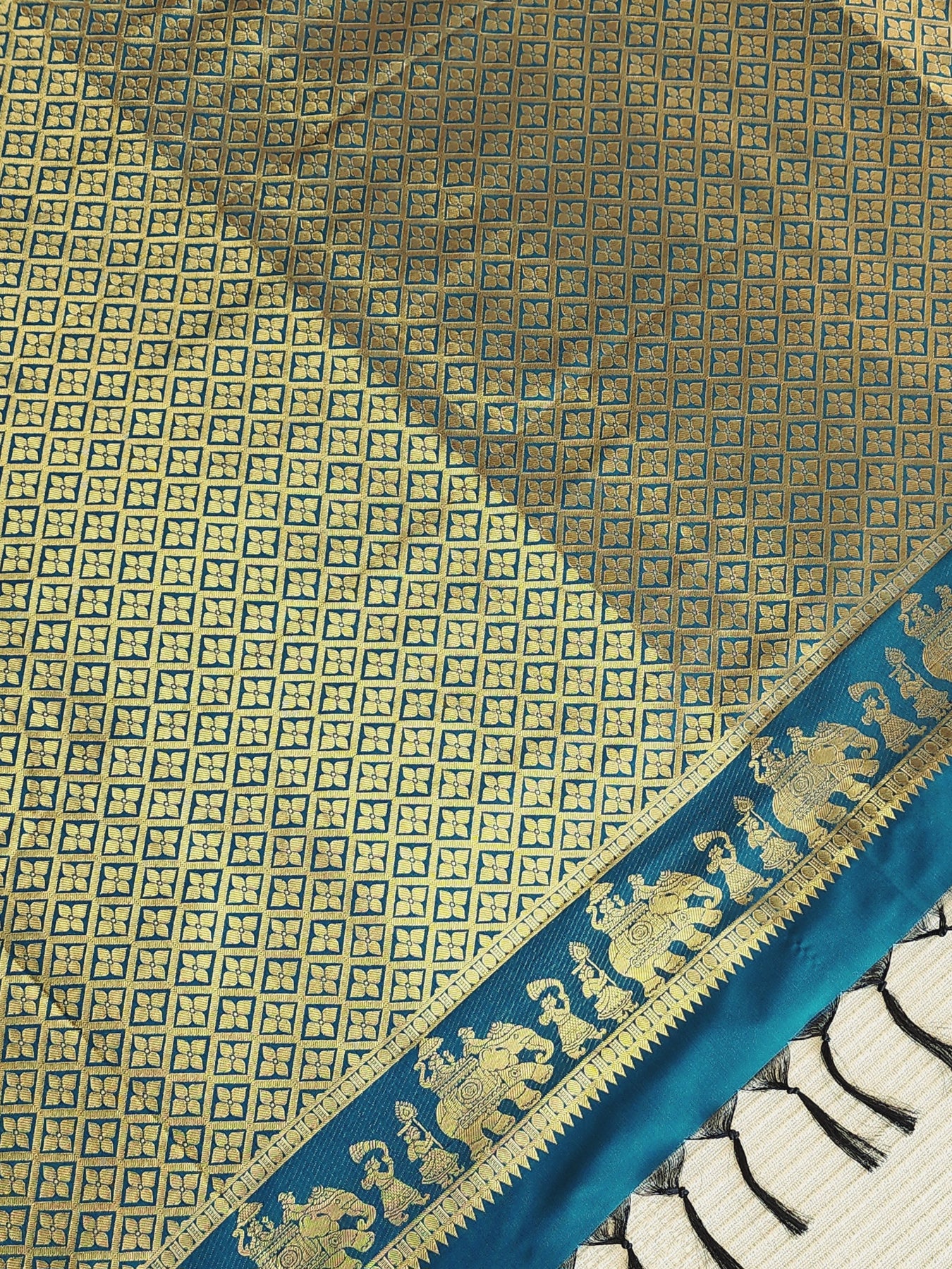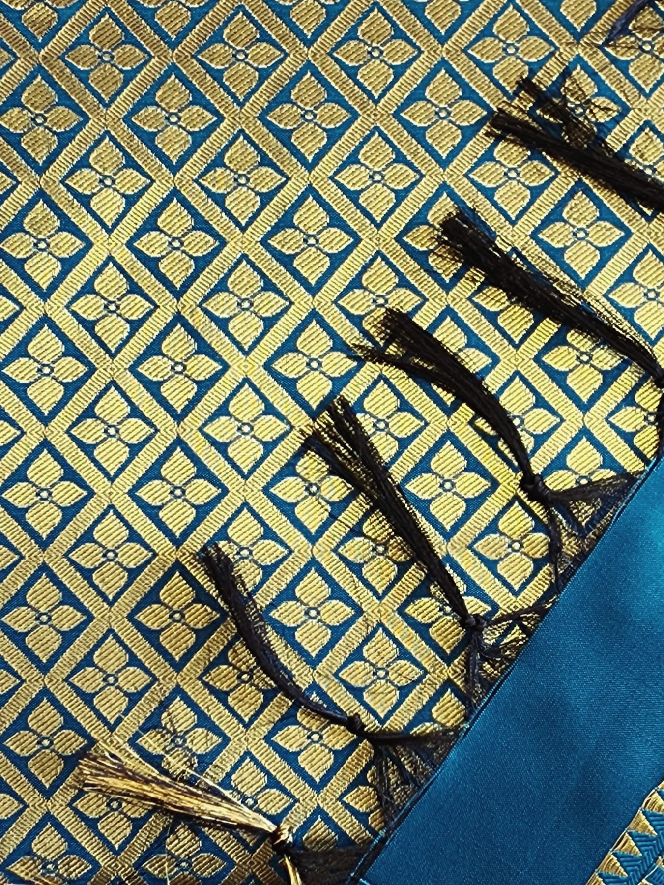 • Blue Semi Silk Saree with woven borders and pallu, beautifully finished with tassels