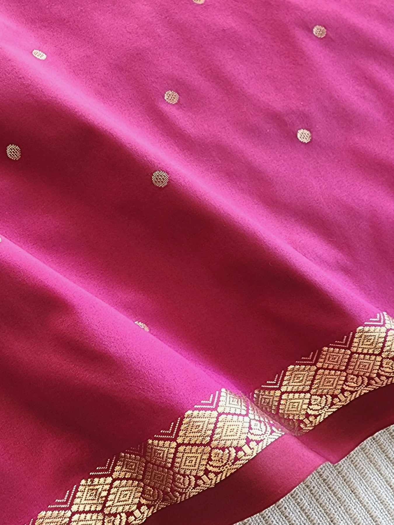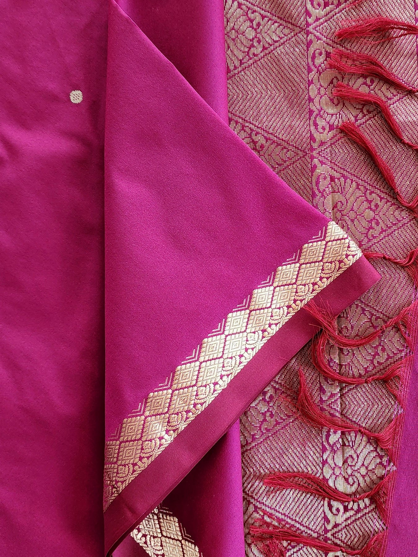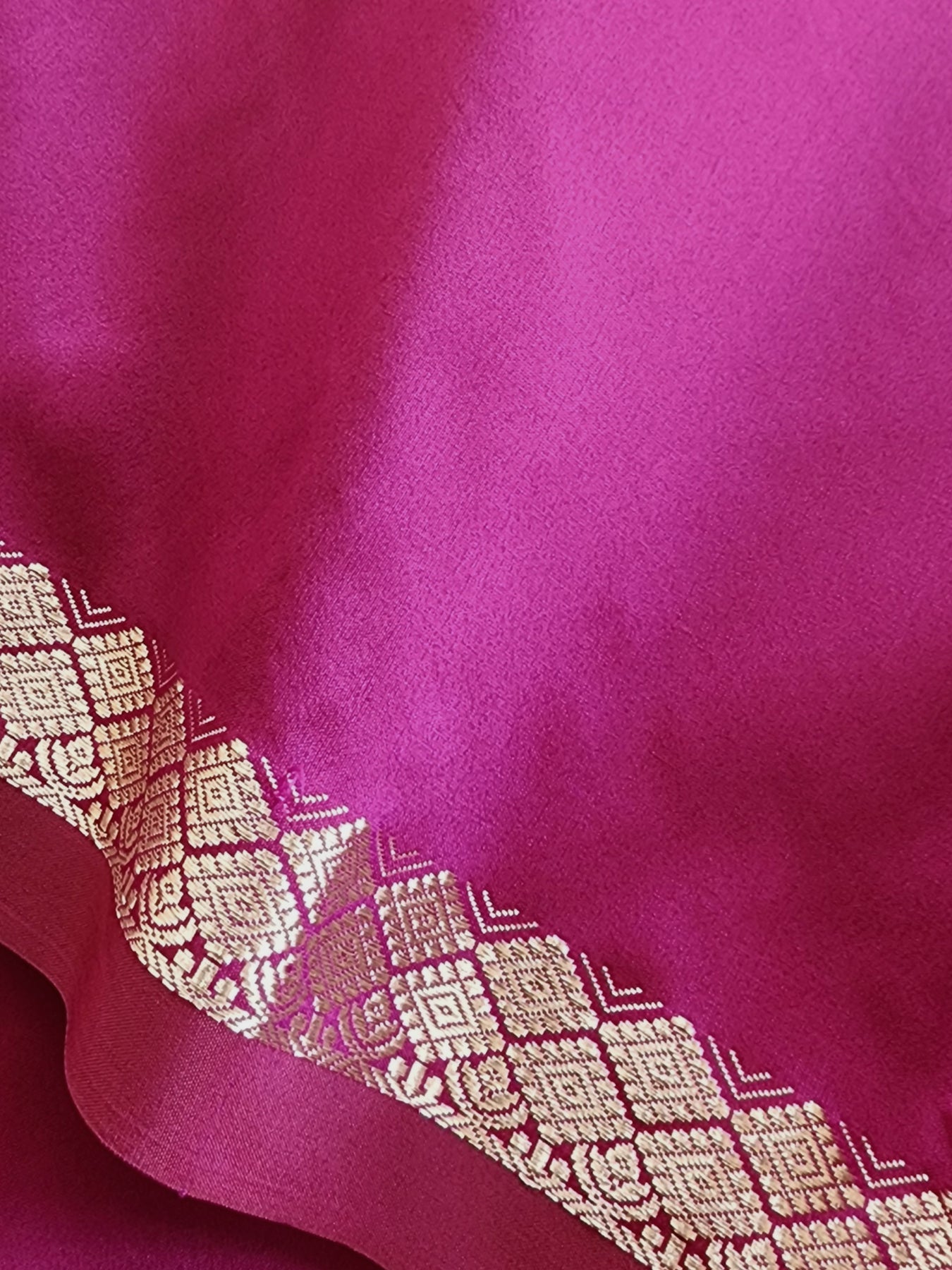 An elegant Magenta Semi Silk Saree with Gold Borders