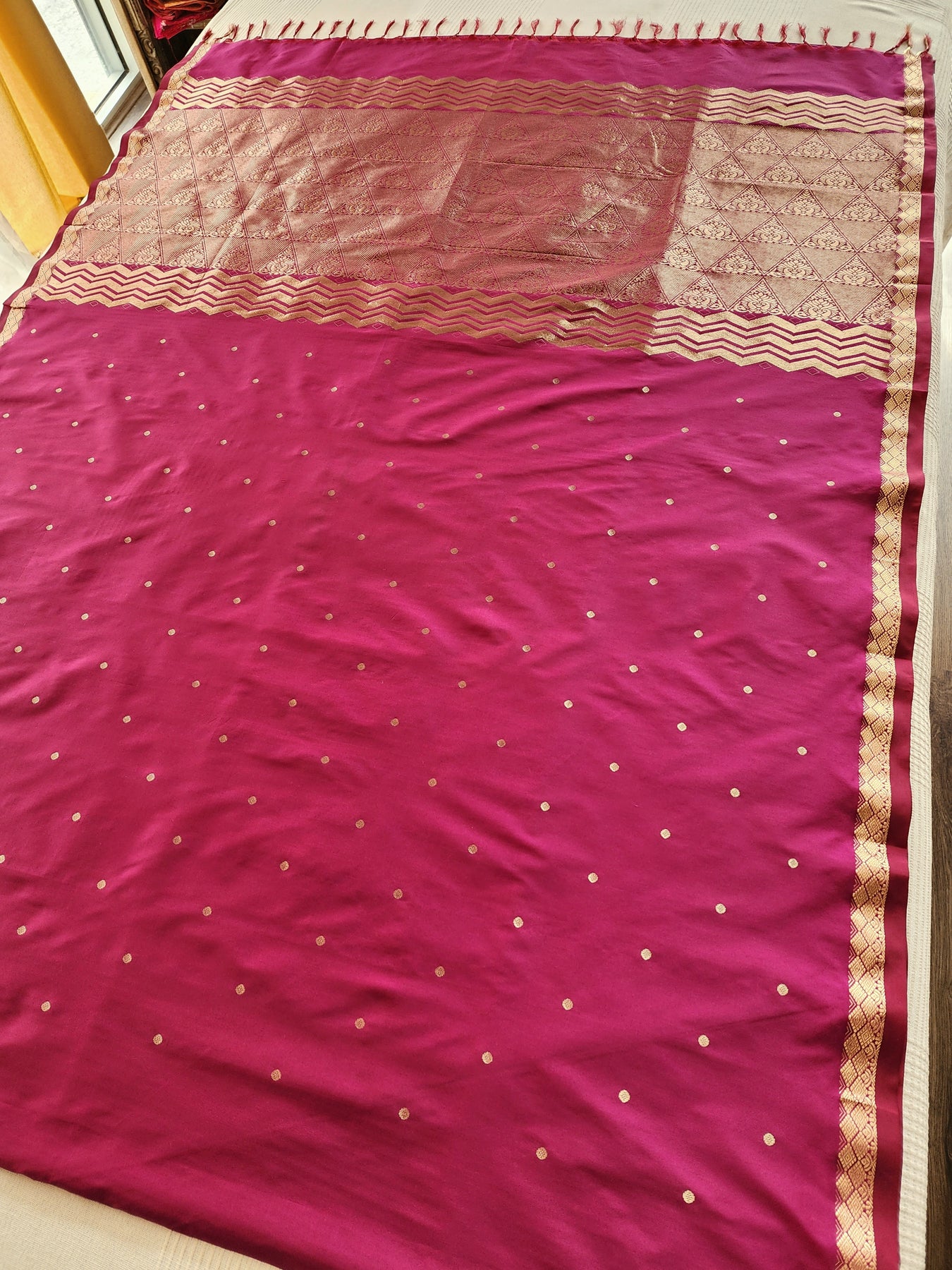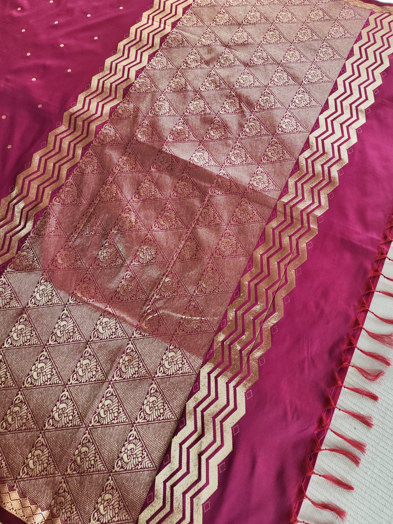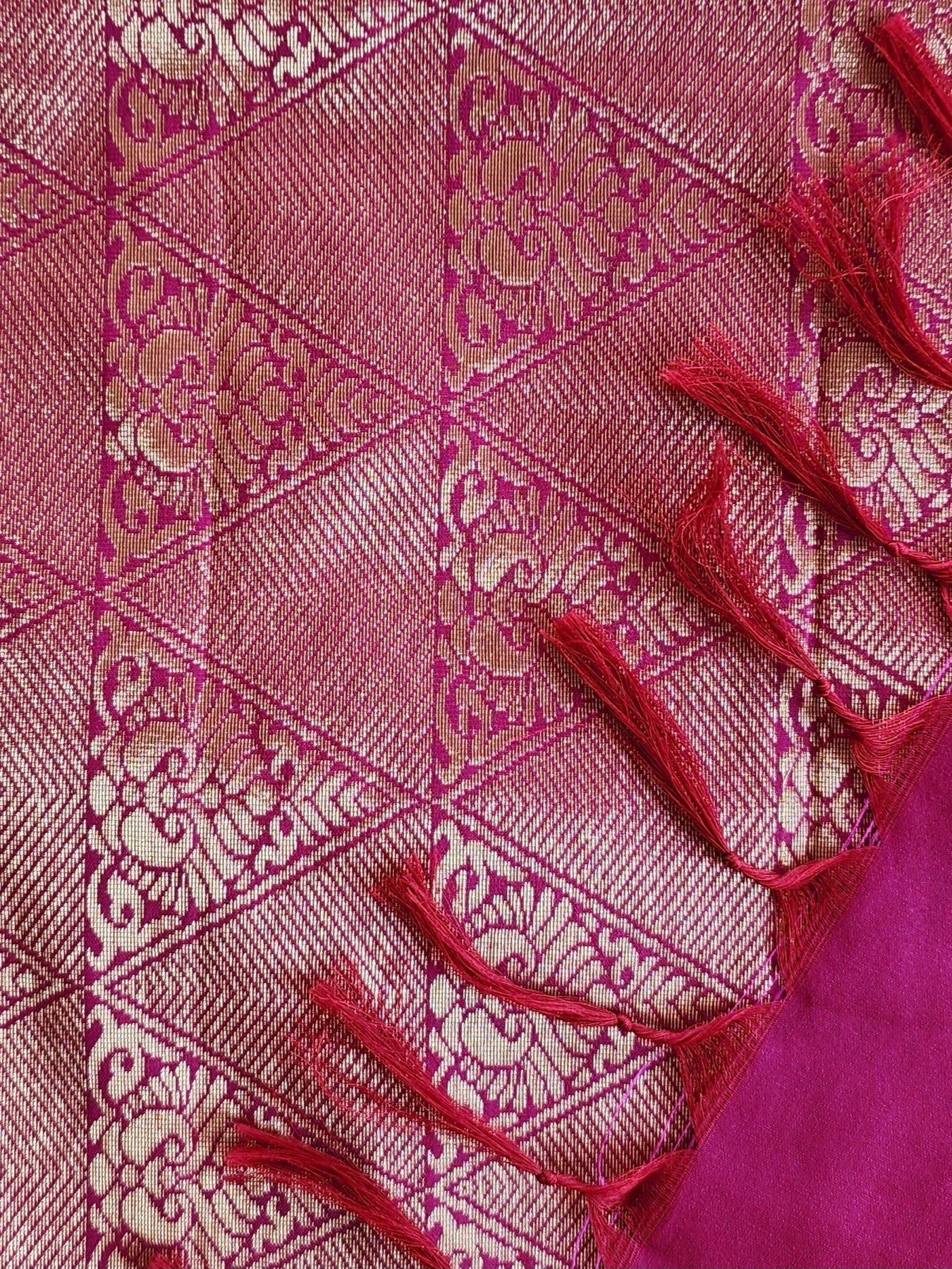 An elegant Magenta Semi Silk Saree with Gold Borders