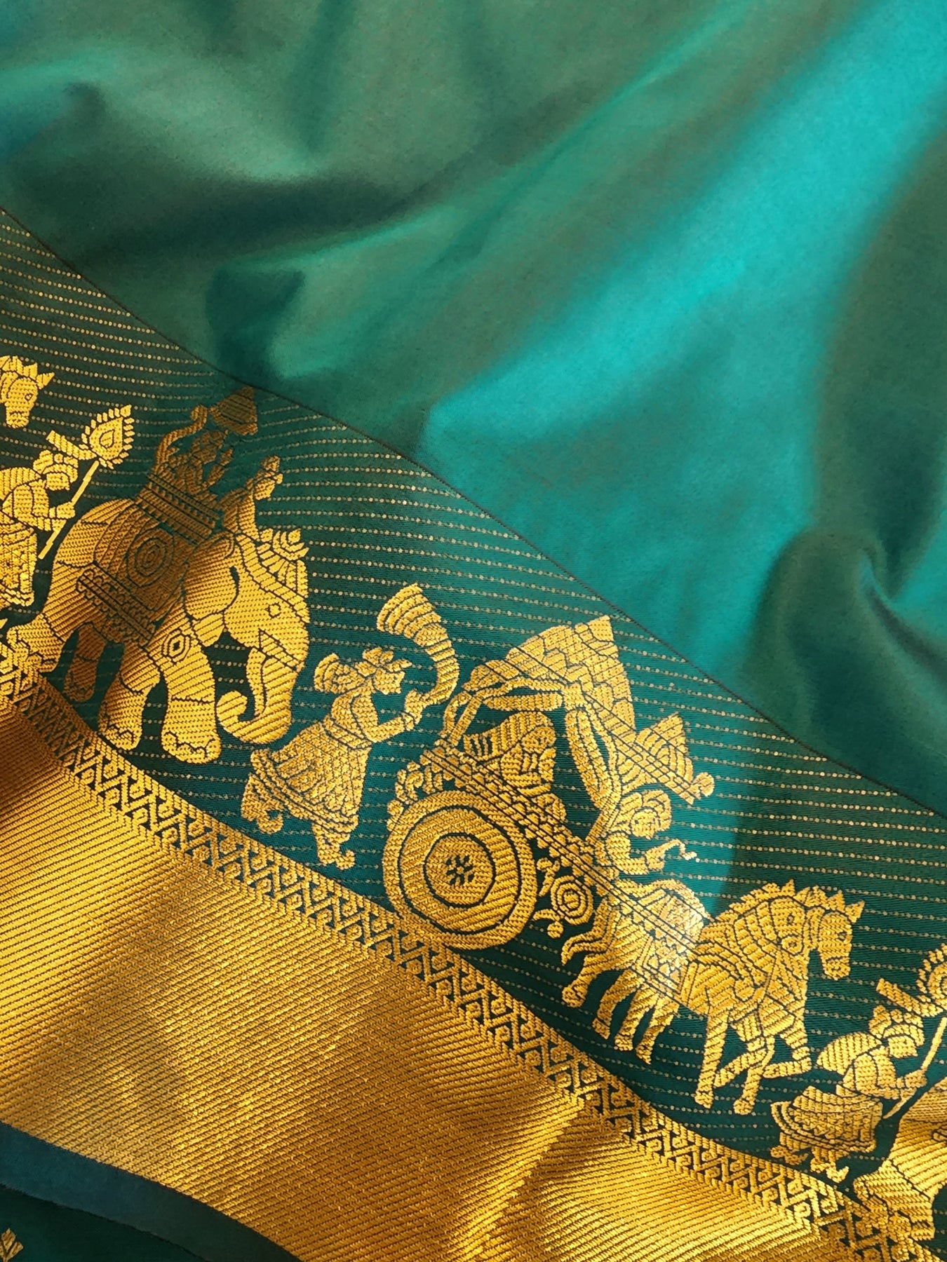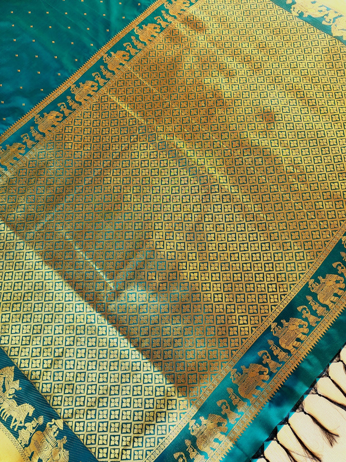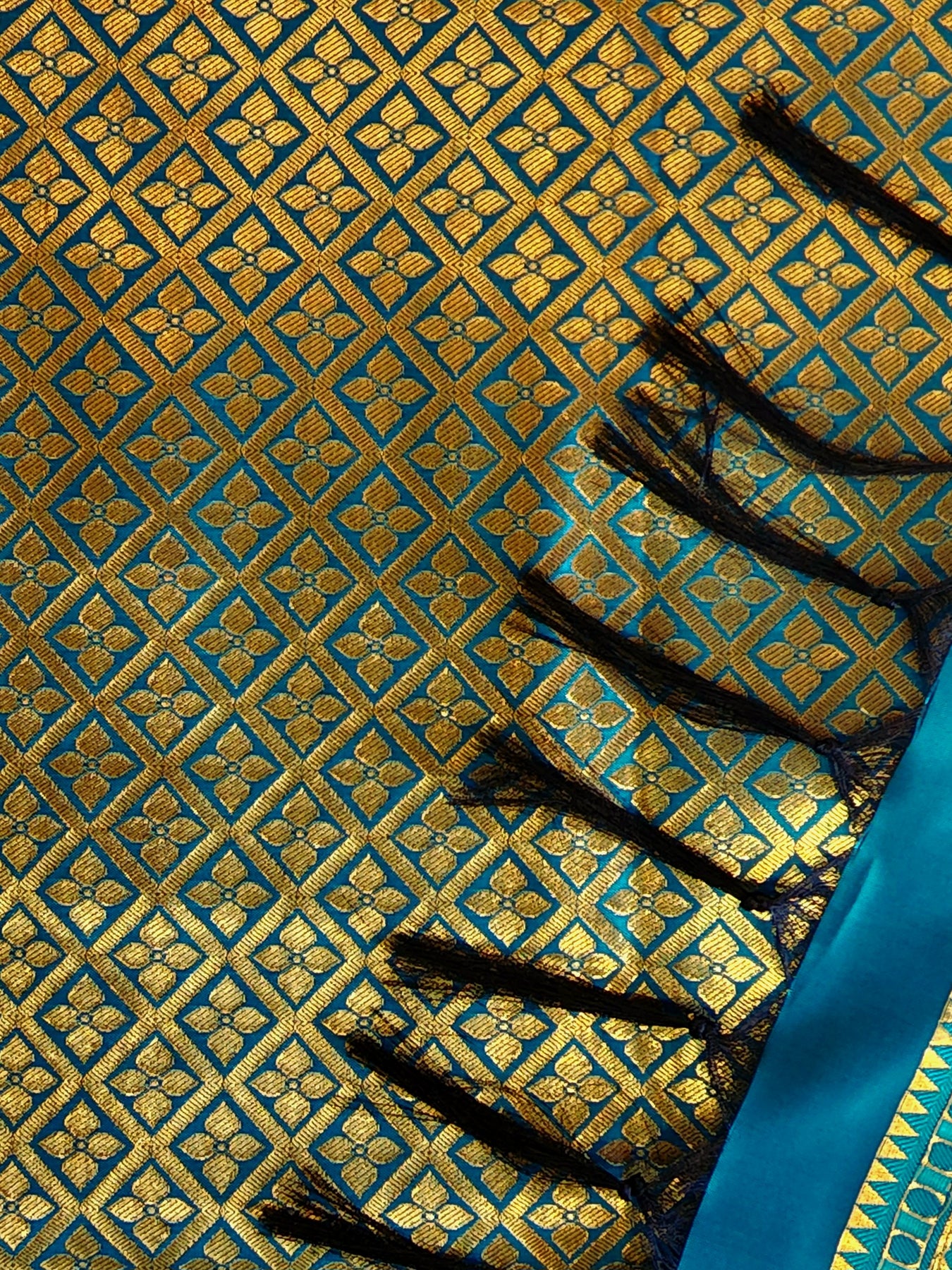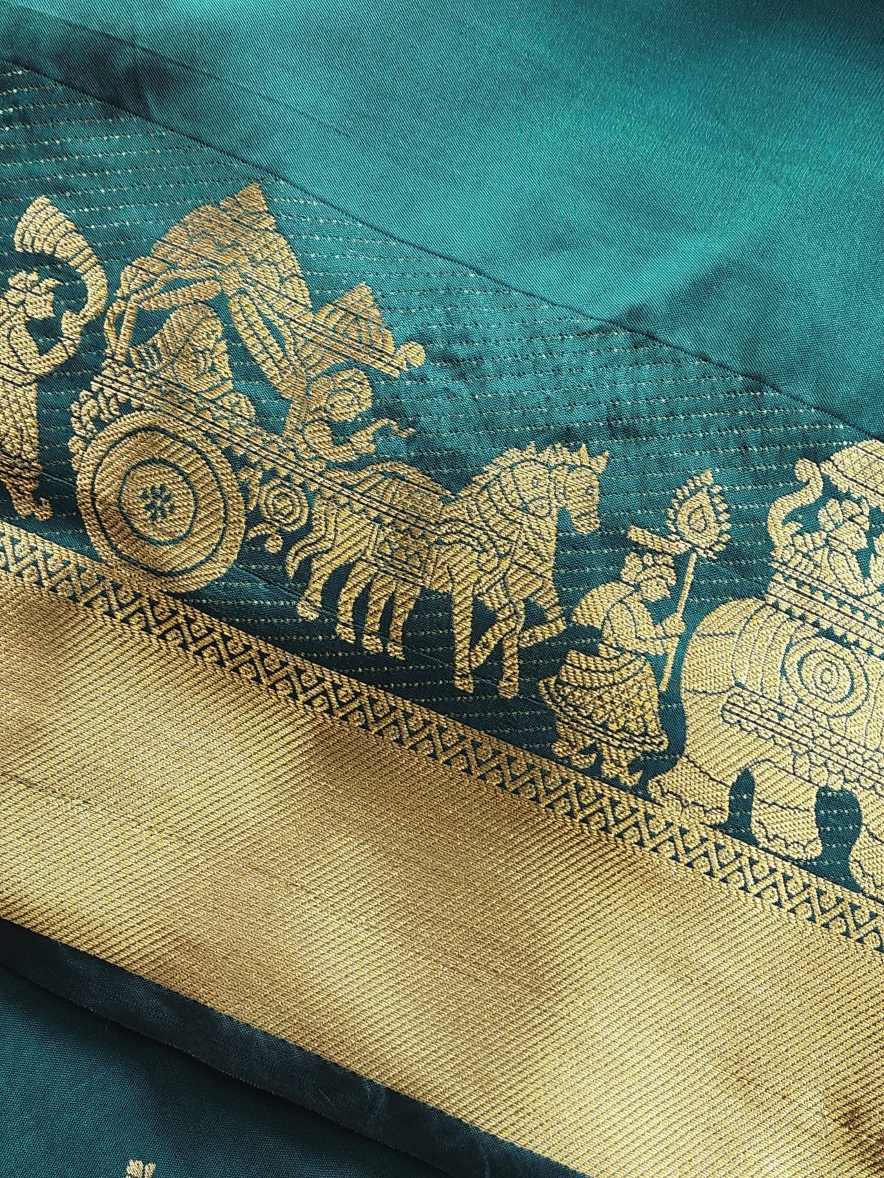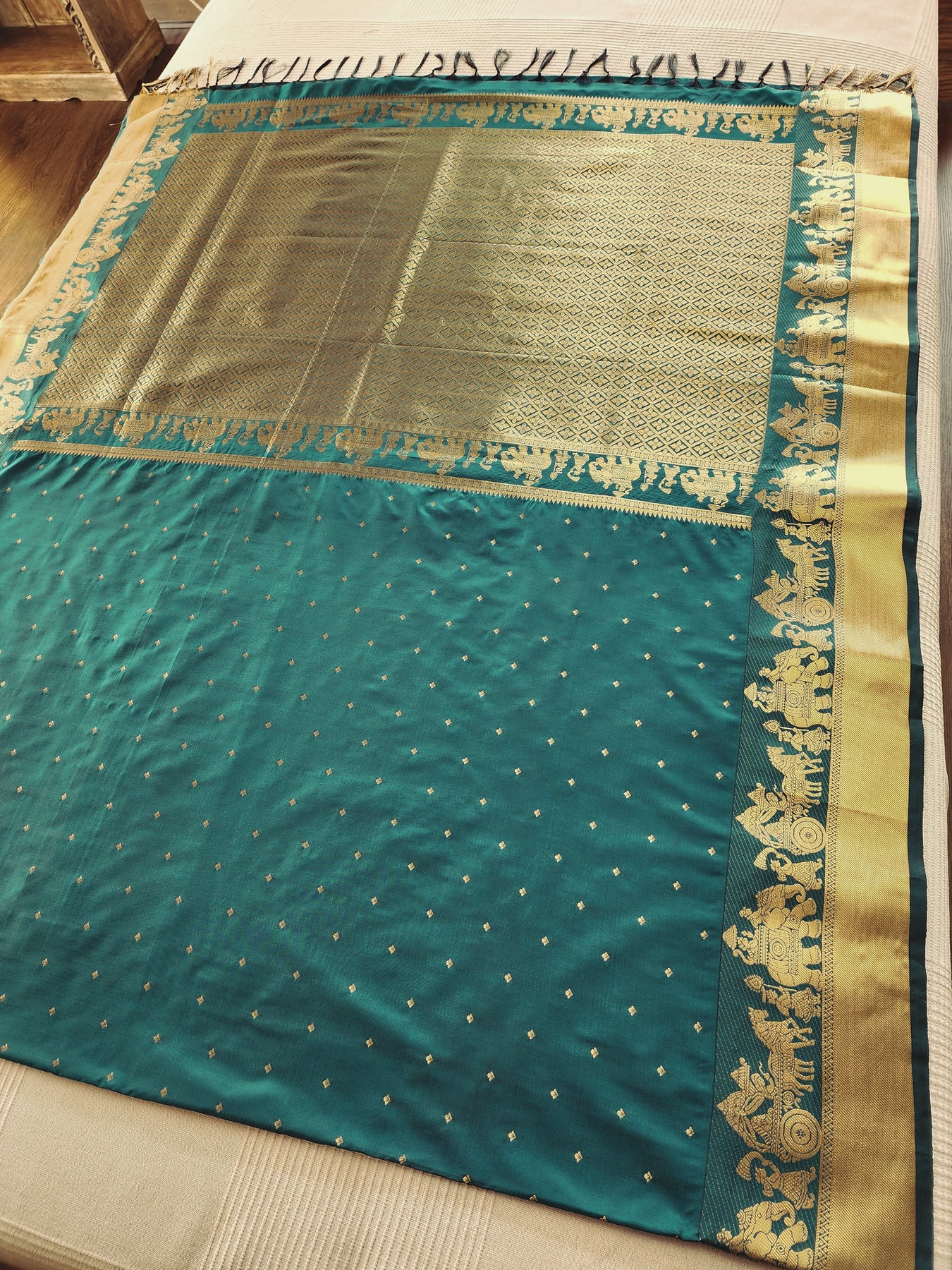 Teal Green Semi Silk Saree with woven borders and pallu, beautifully finished with tassels