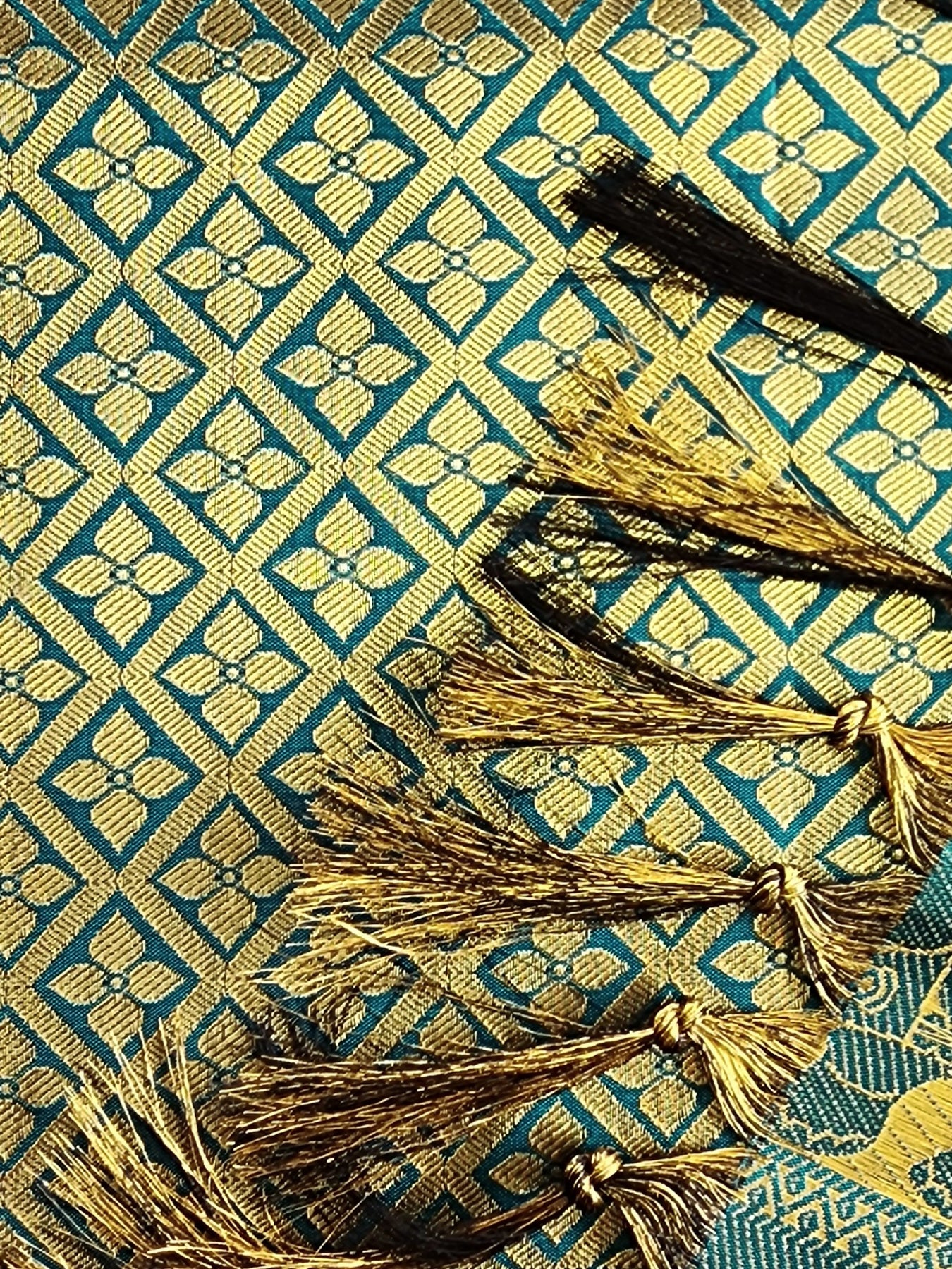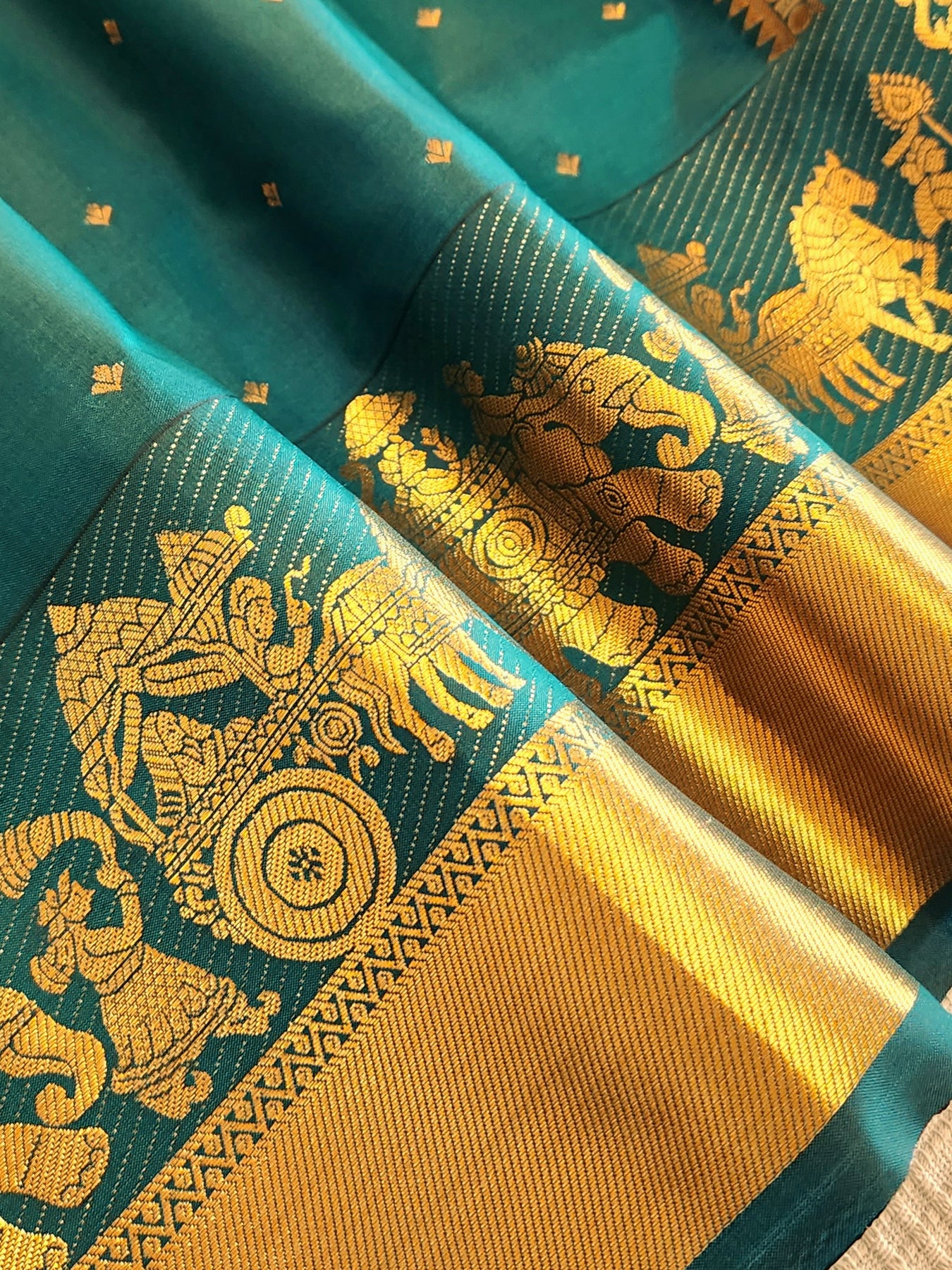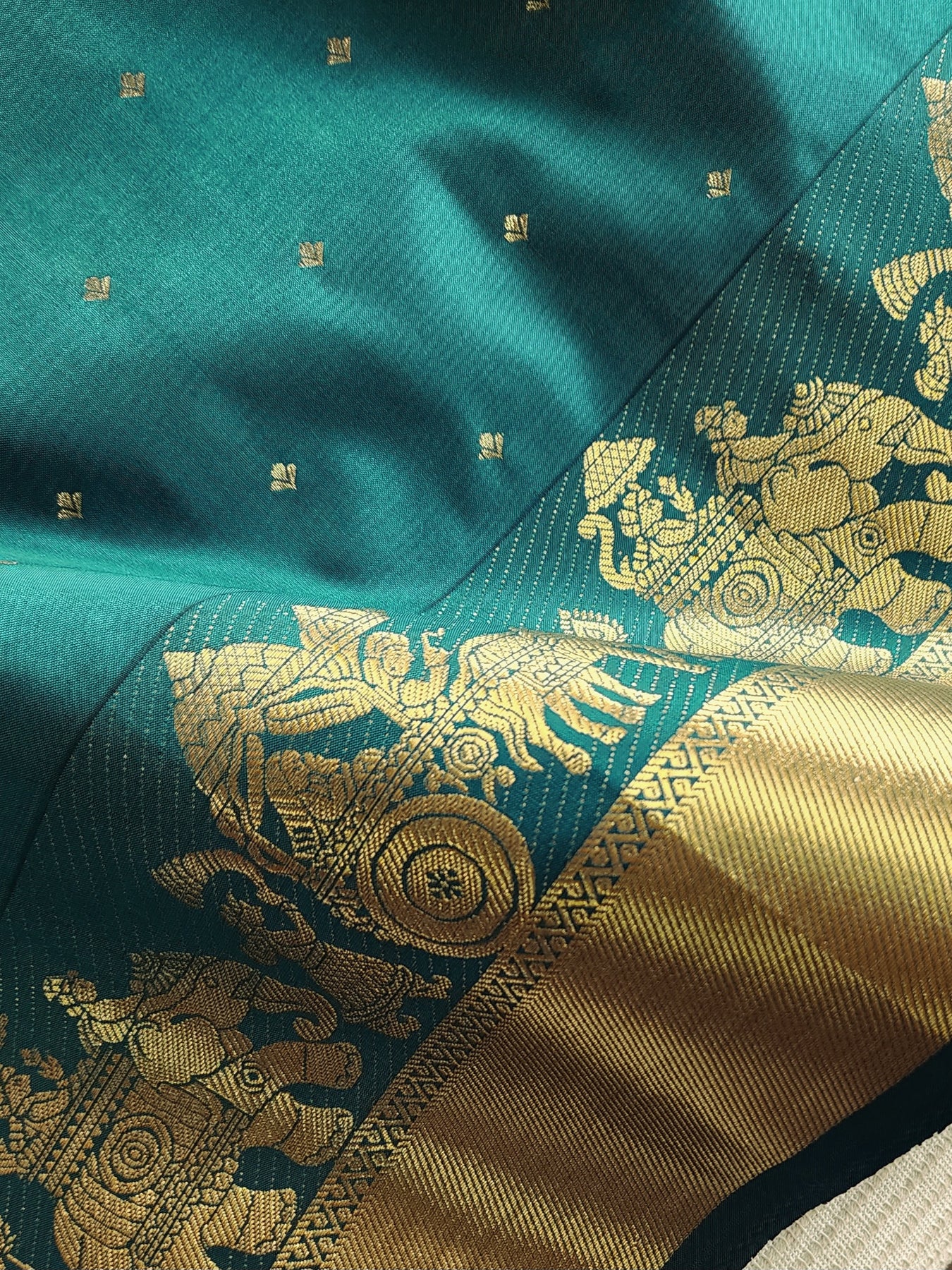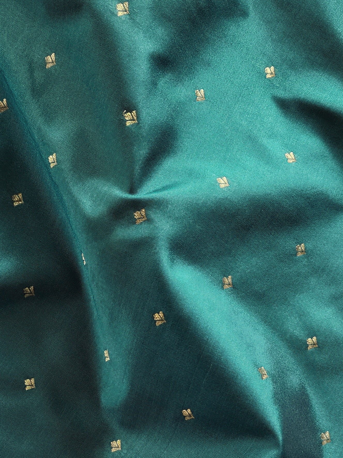 Teal Green Semi Silk Saree with woven borders and pallu, beautifully finished with tassels