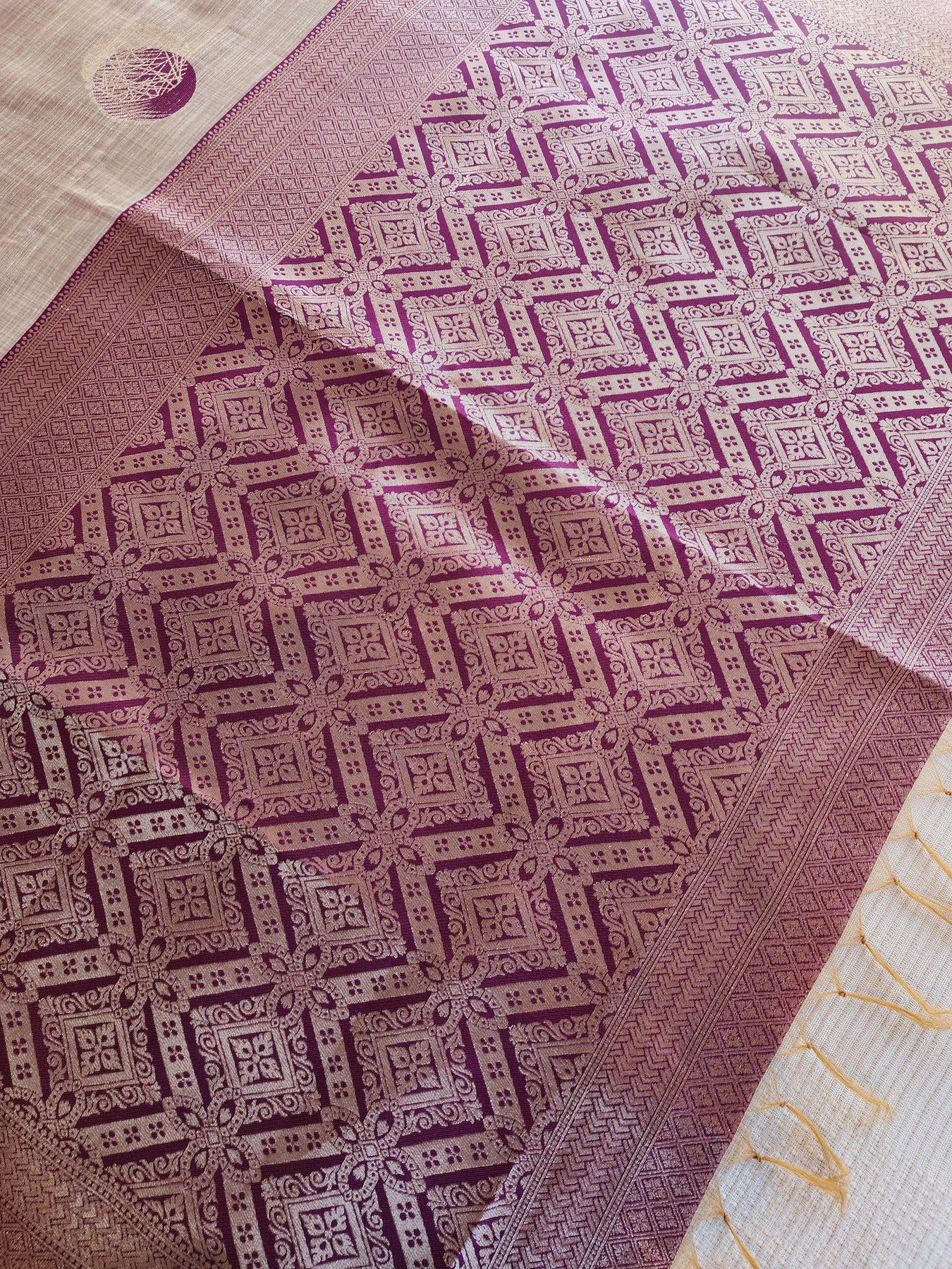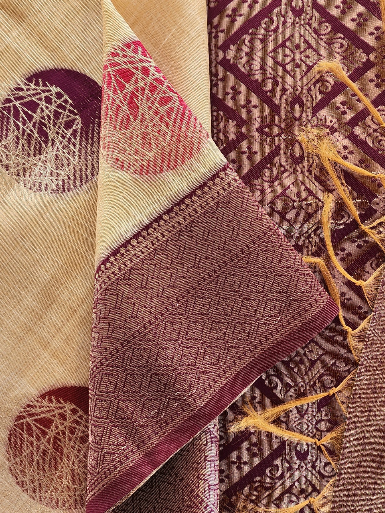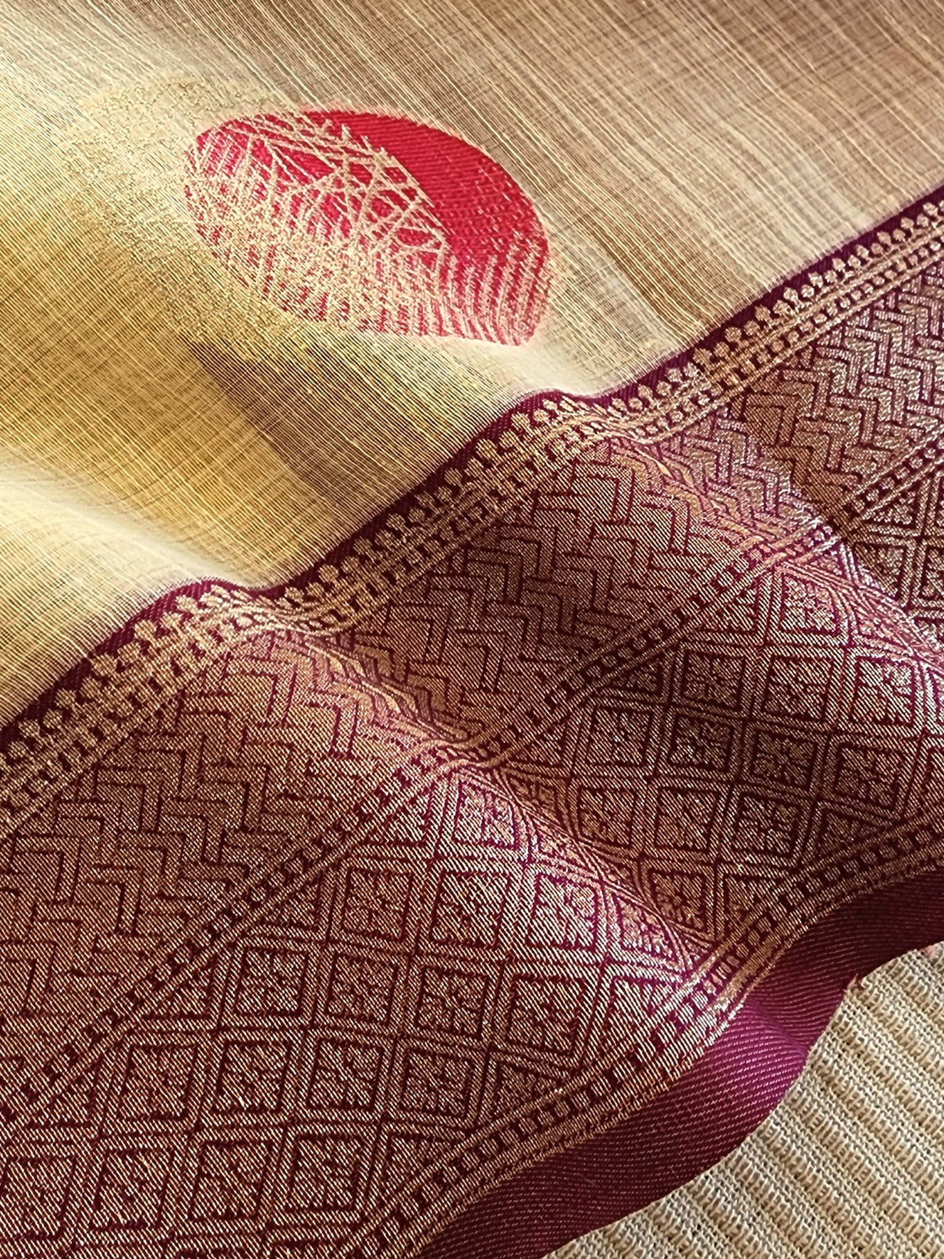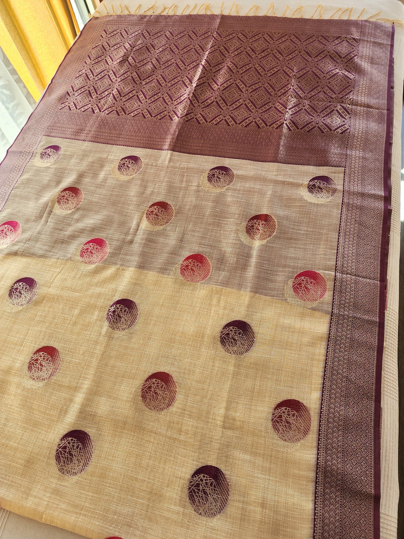 Beige Silk Saree with Contrast Borders