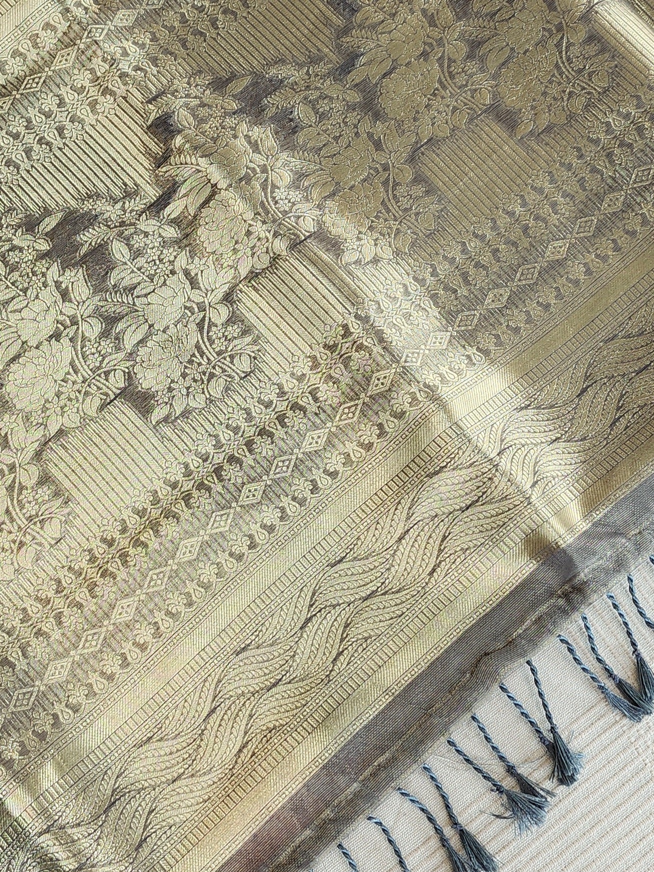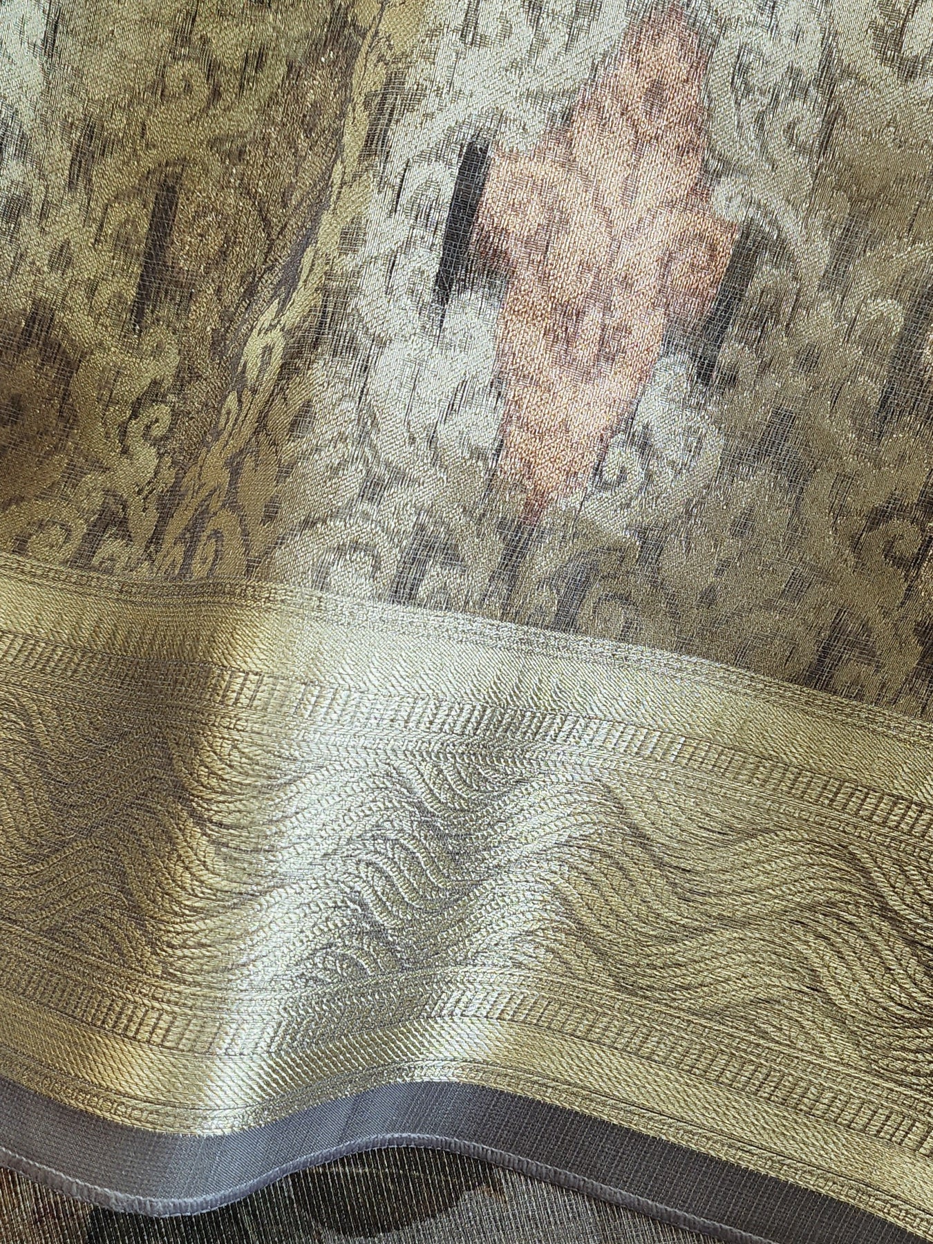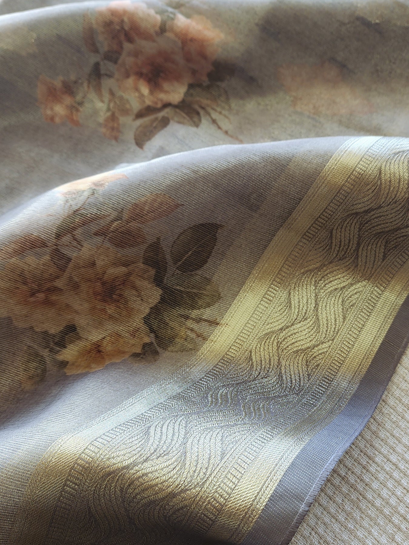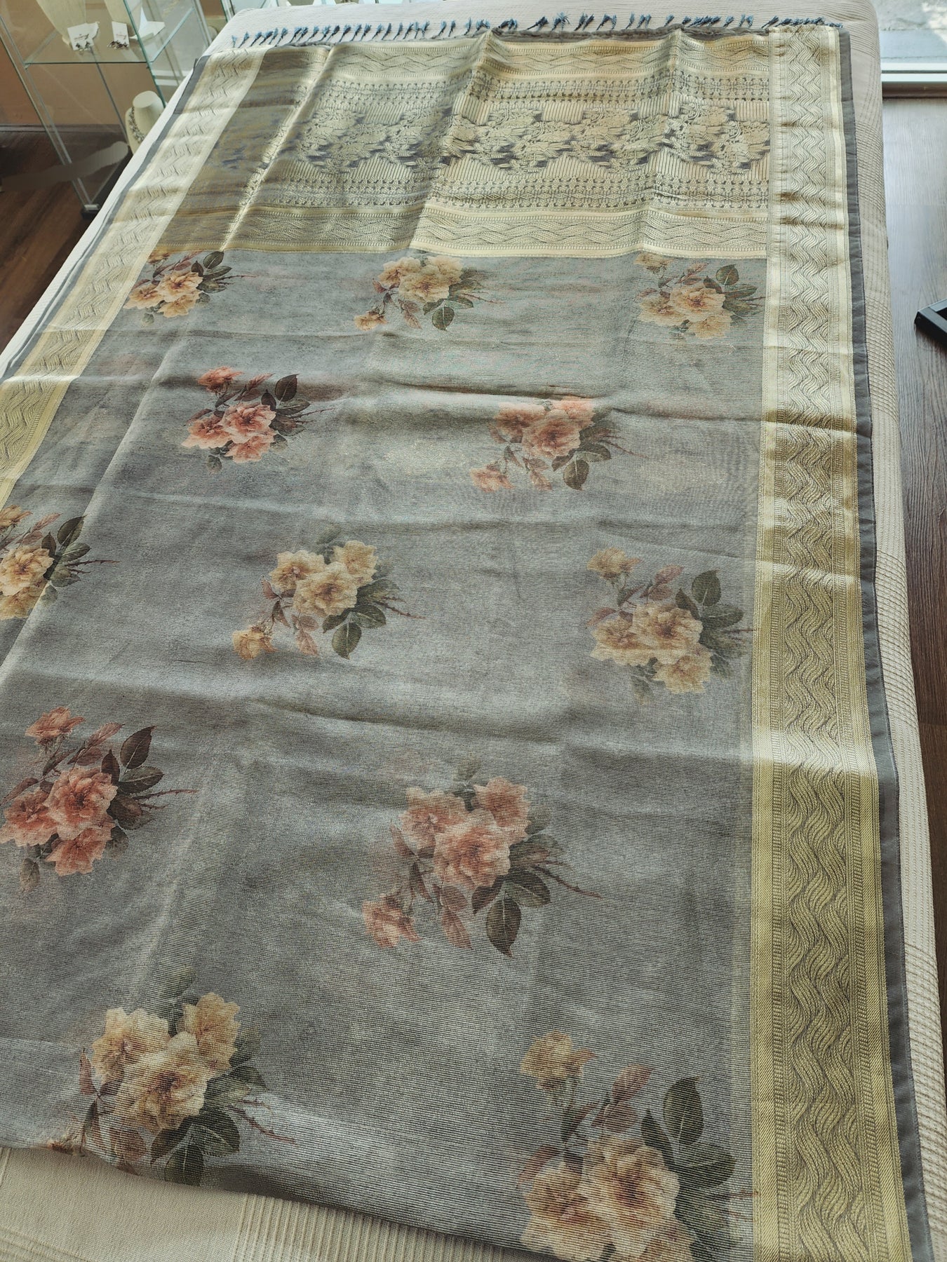 This elegant Tissue Silk Saree with Digital Floral Prints has a modern appeal