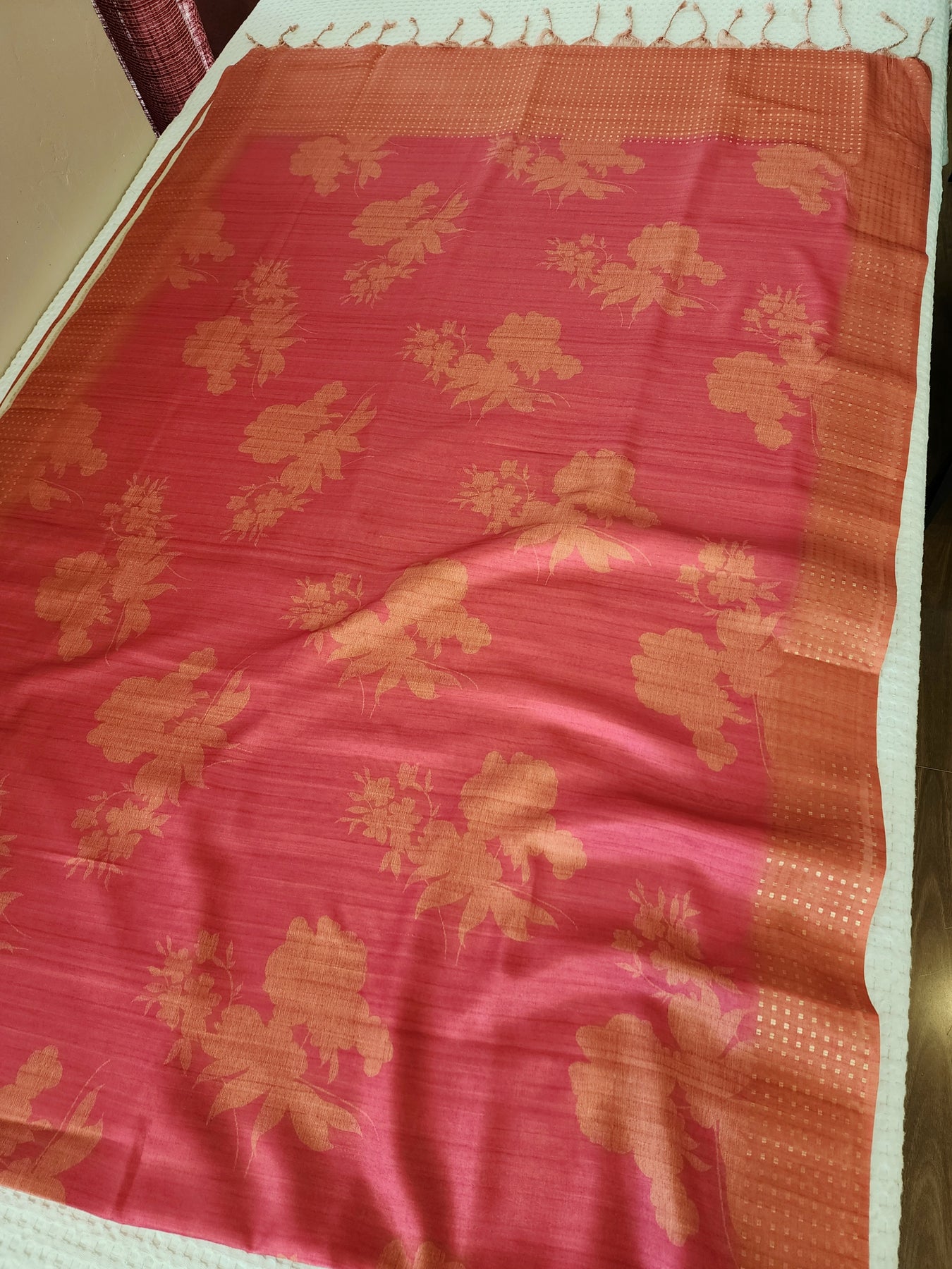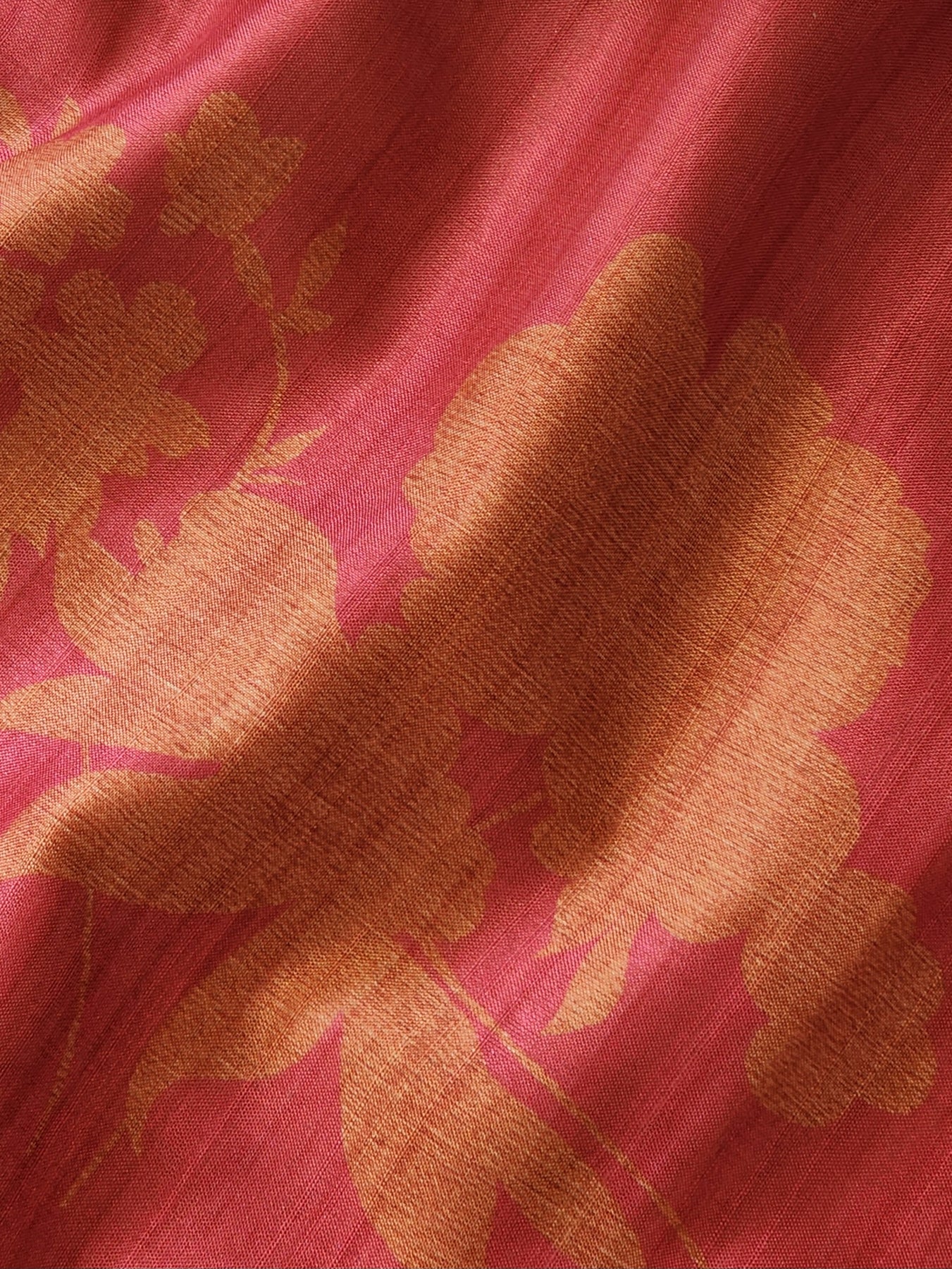 • An elegant Pink Semi Tussar Silk Saree with Digital Floral Prints.