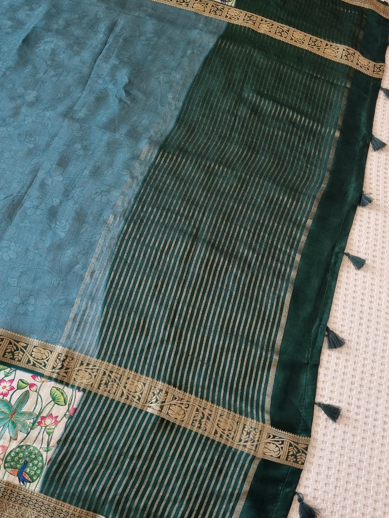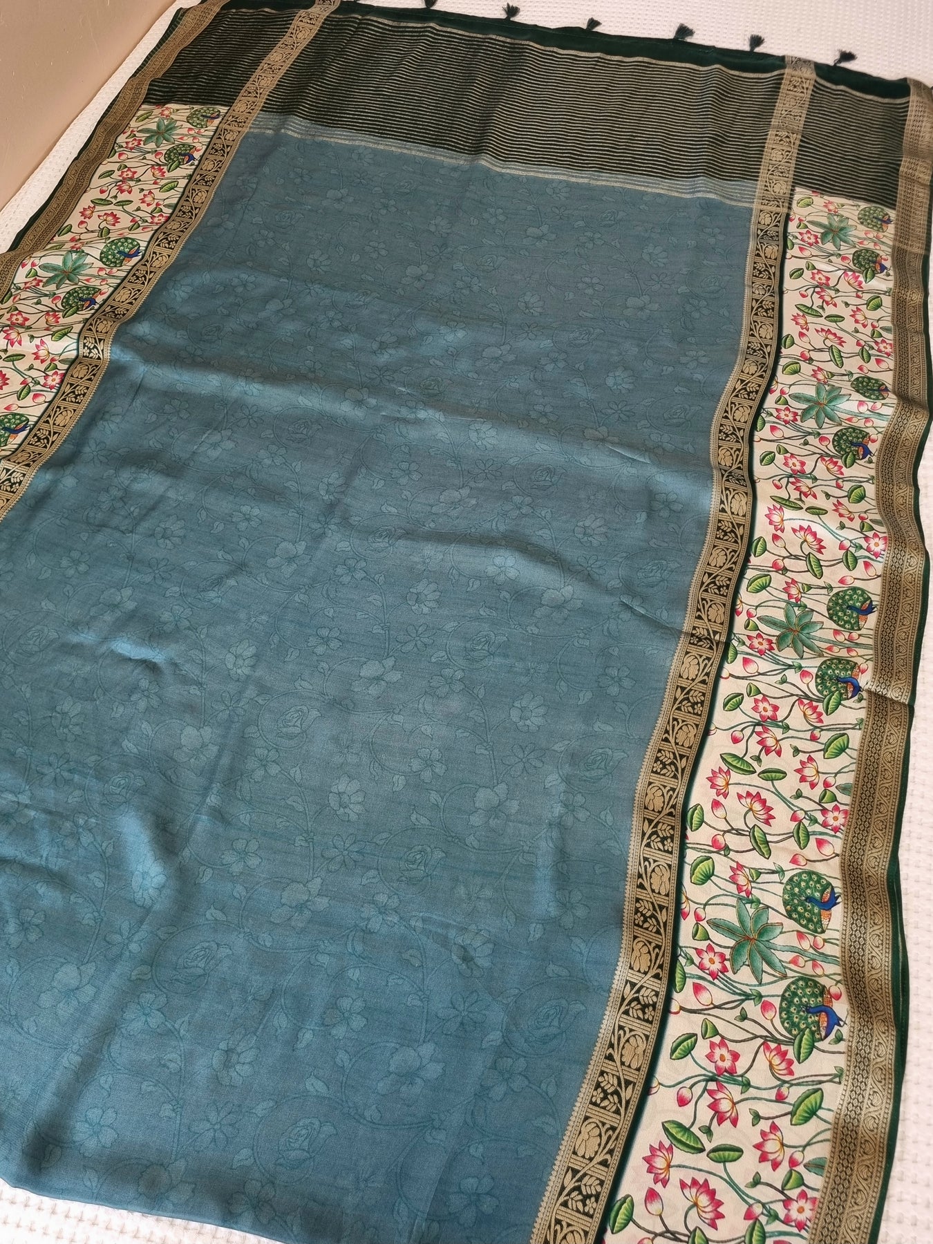 The beautiful motifs on the borders elevates the style quotient