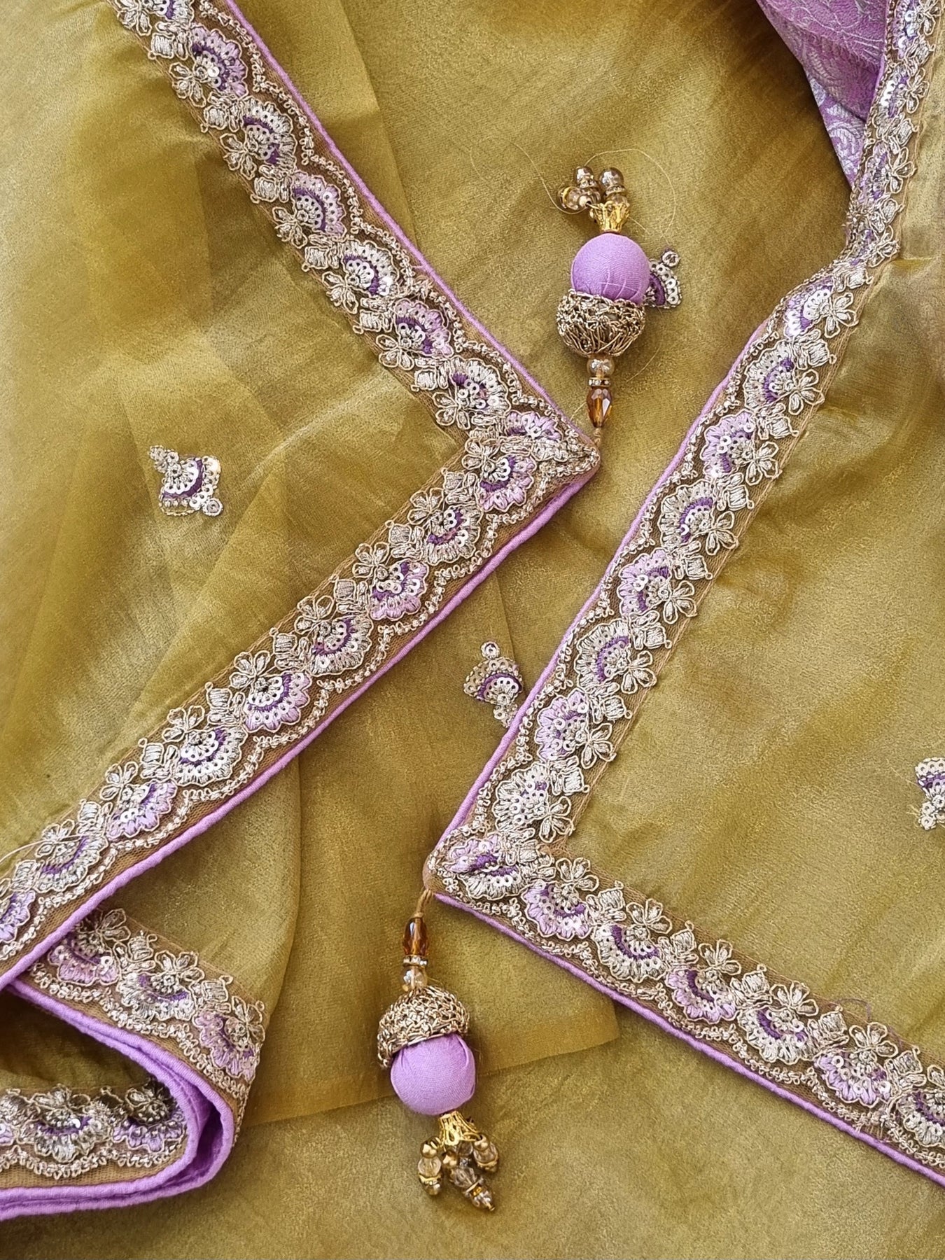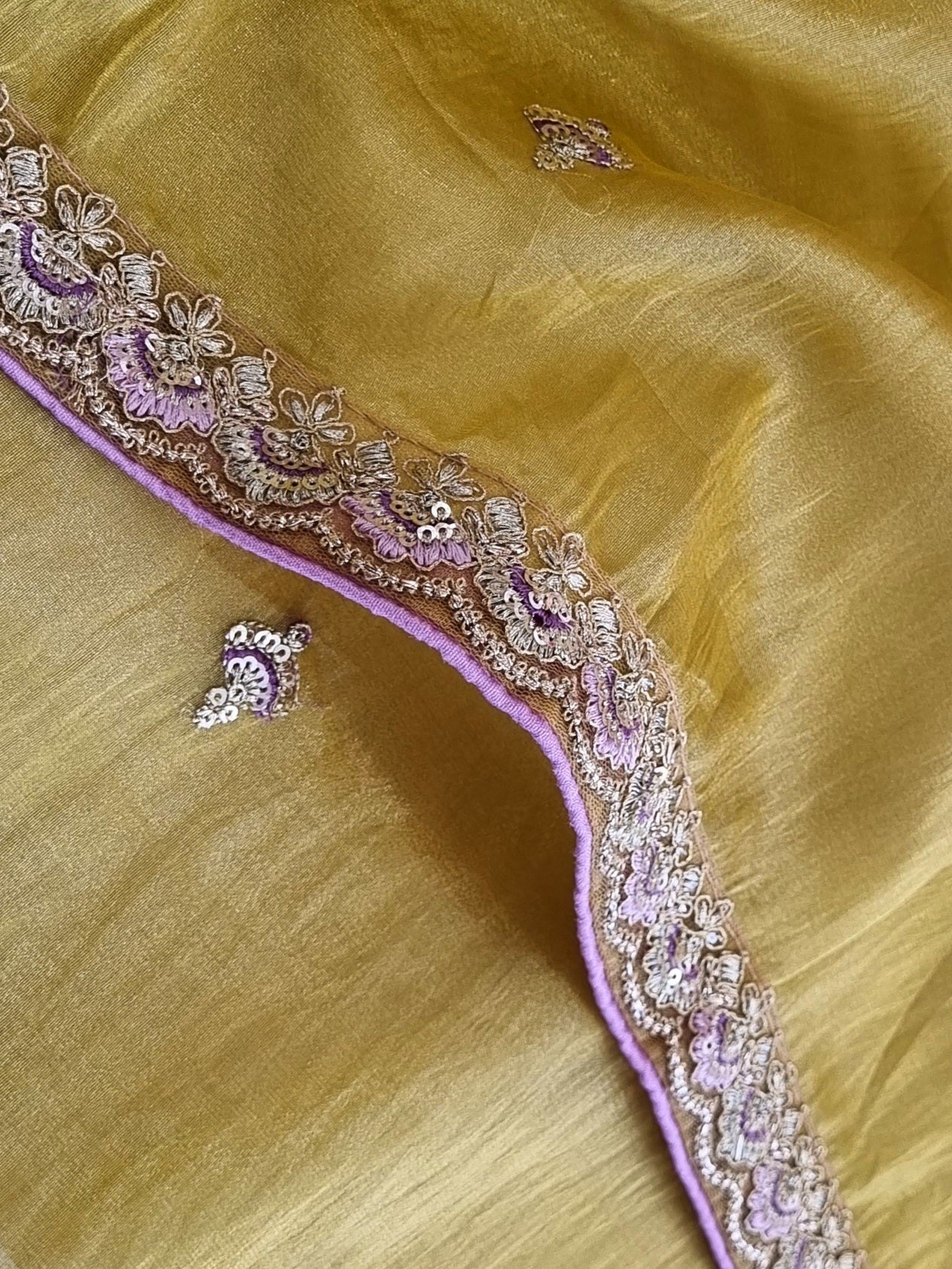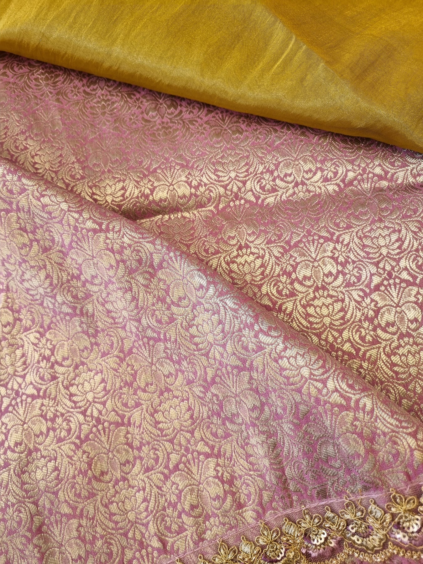 Soft & Easy to Drape Saree, with Embroidery on the Body & Borders, paired with a Contrast Brocade Blouse Fabric