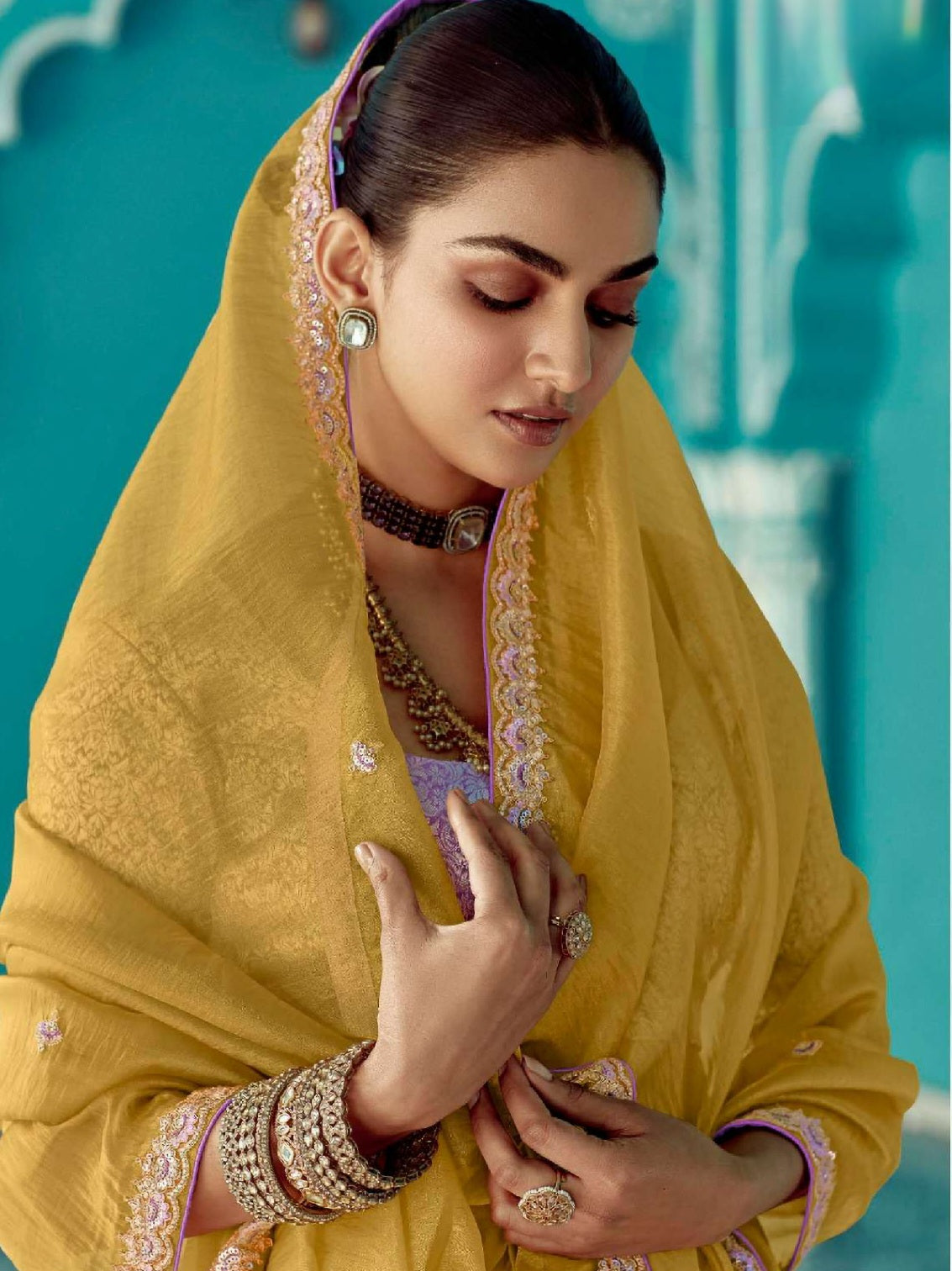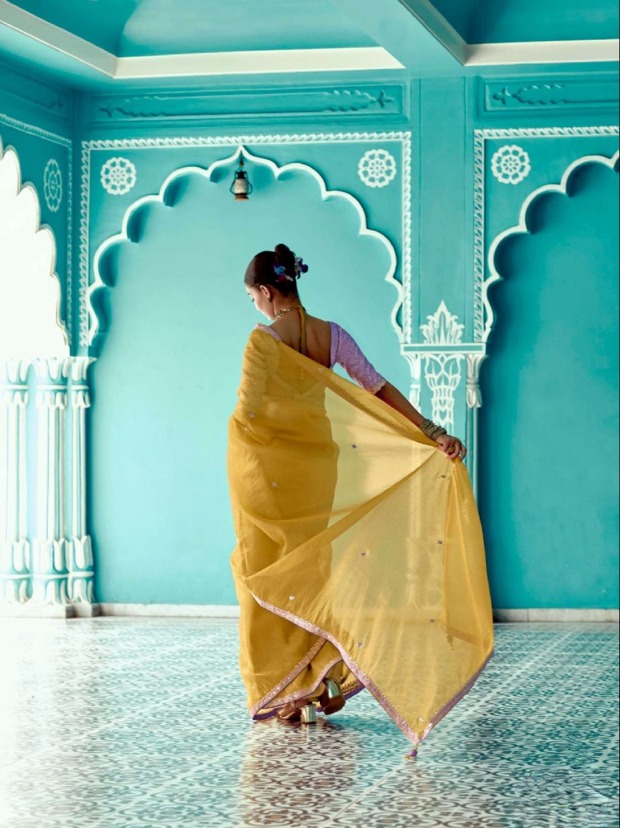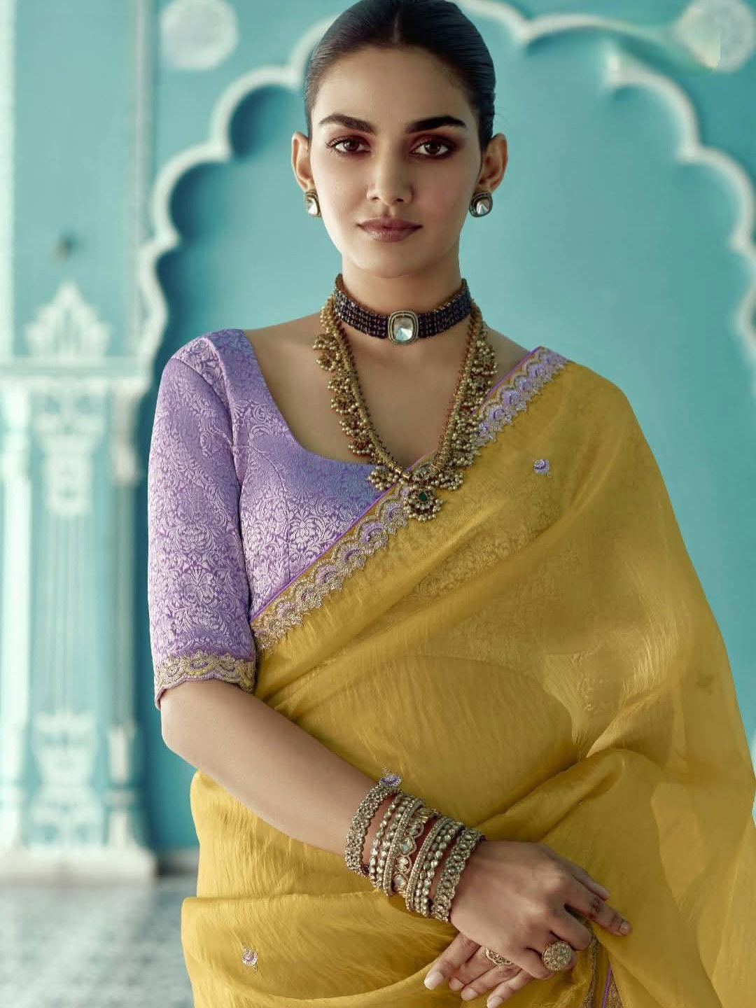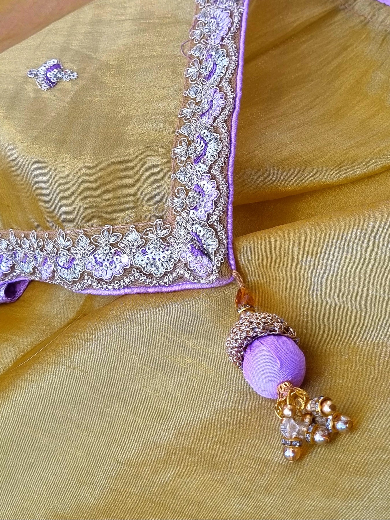 Soft & Easy to Drape Saree, with Embroidery on the Body & Borders, paired with a Contrast Brocade Blouse Fabric