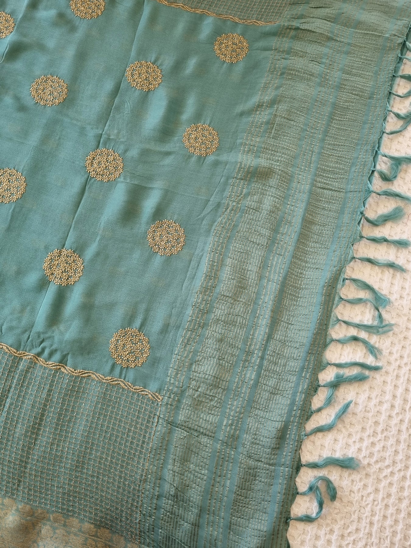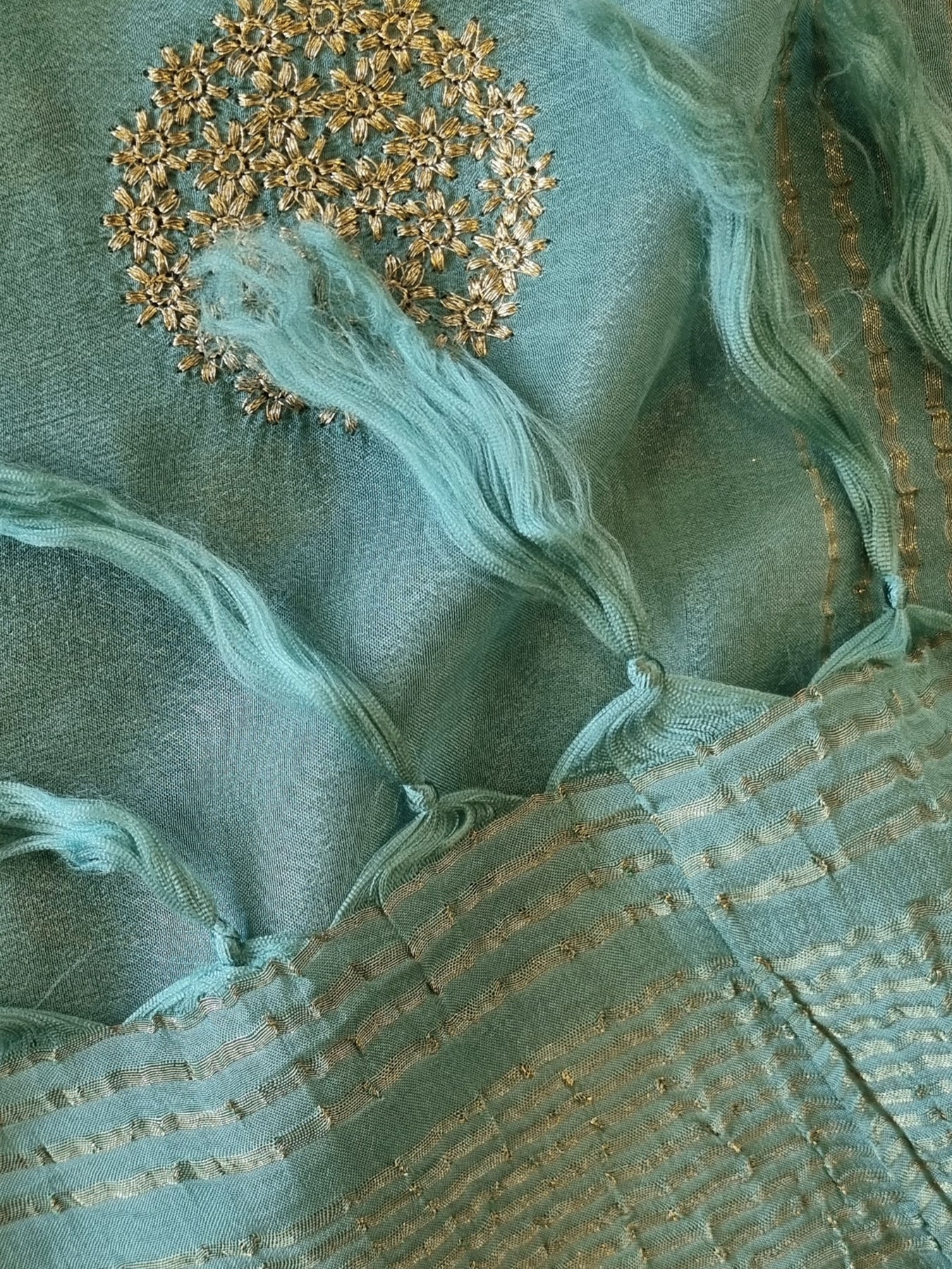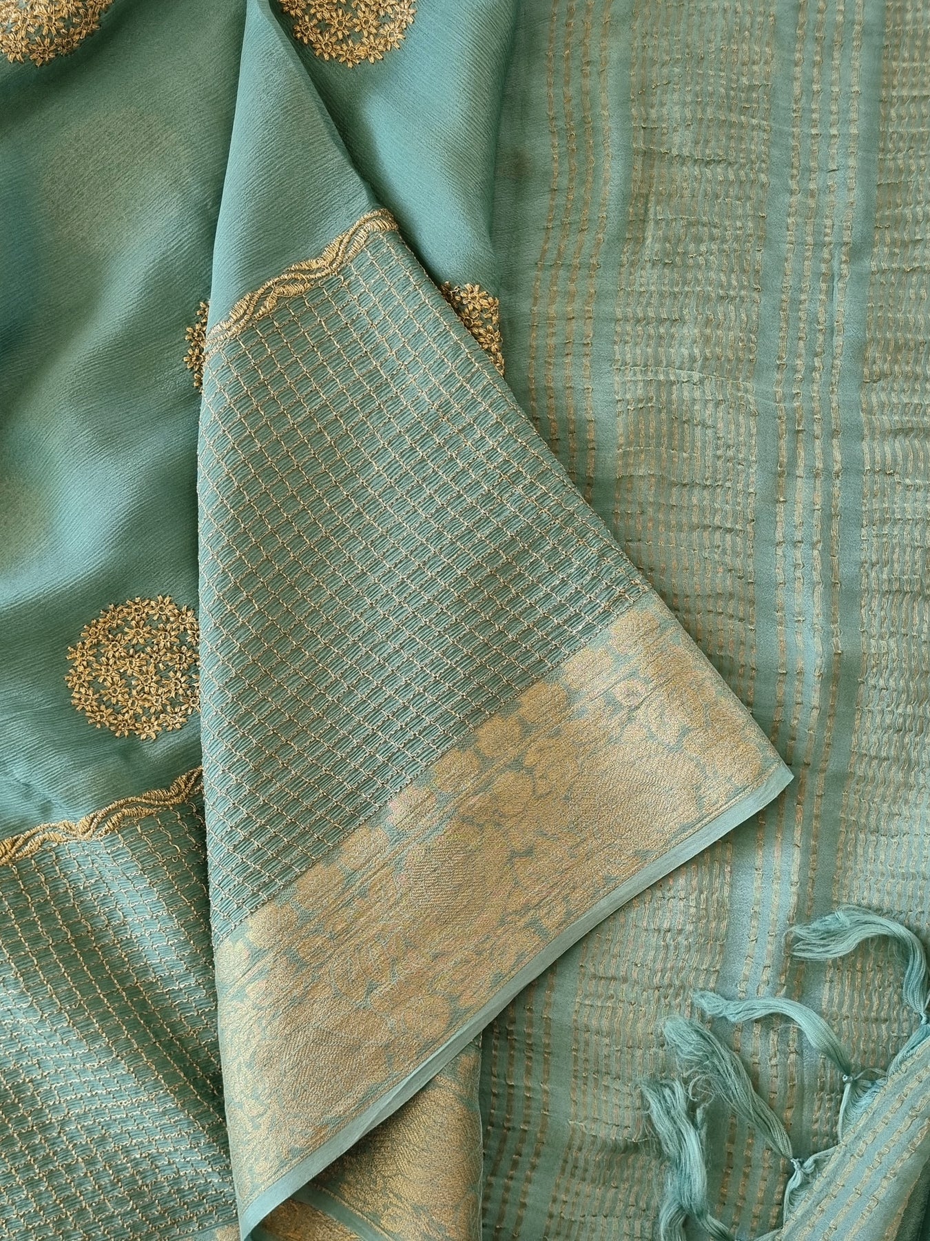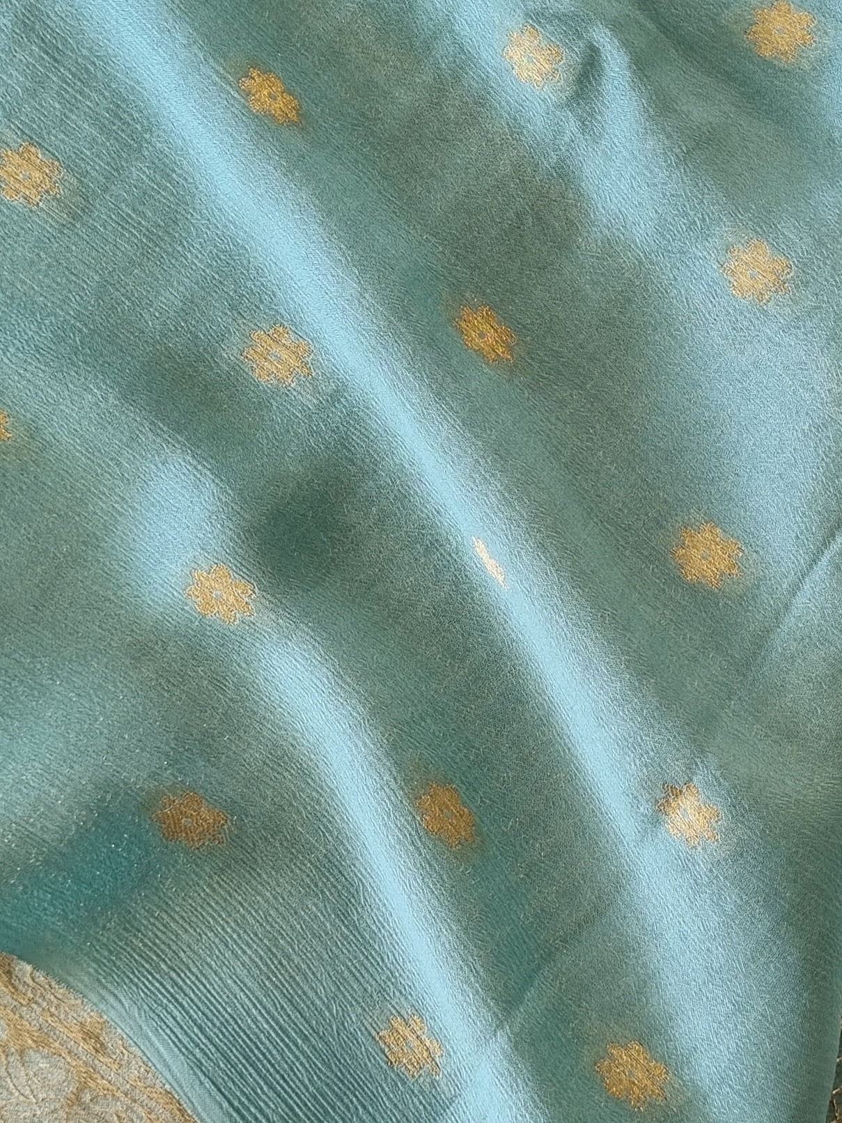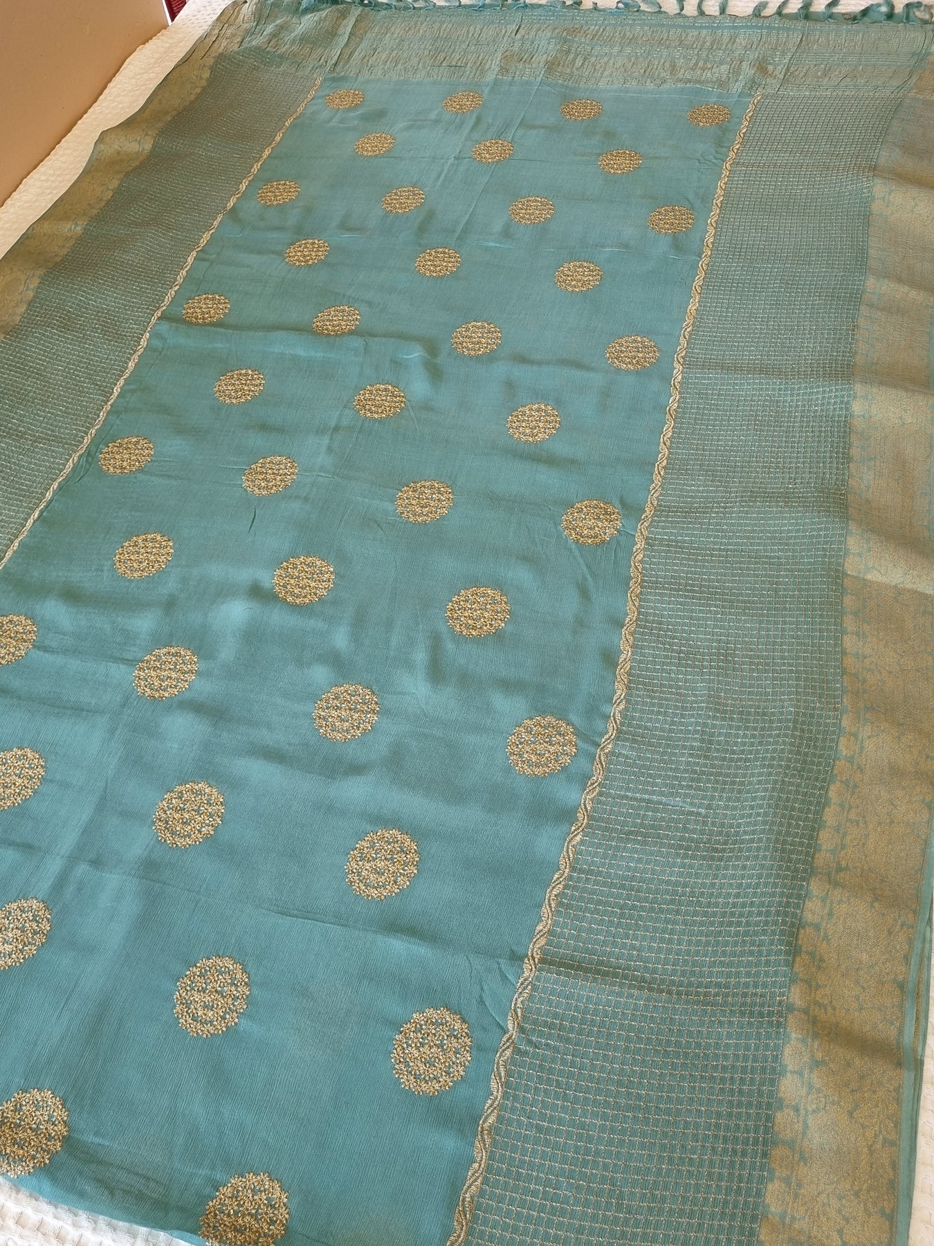 Semi Georgette Saree, with woven borders, paired with a Blouse fabric