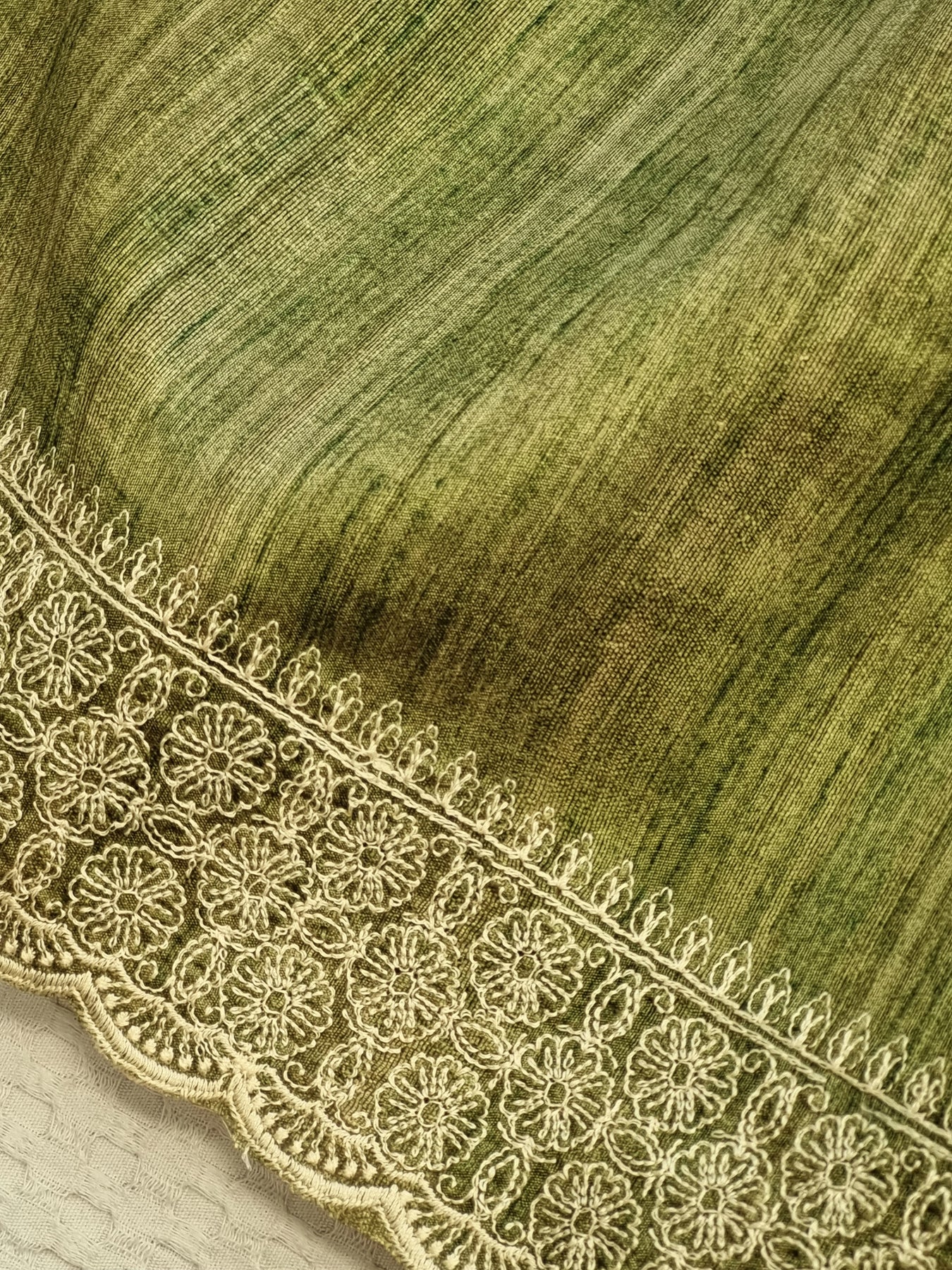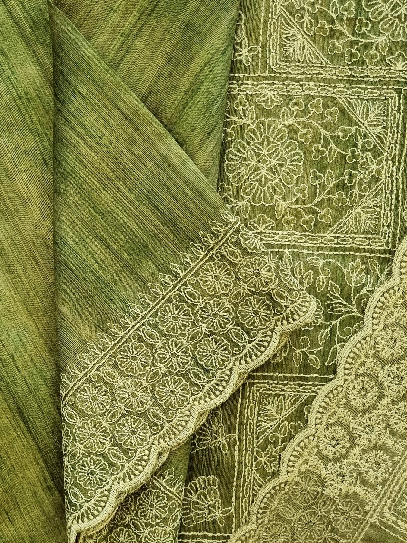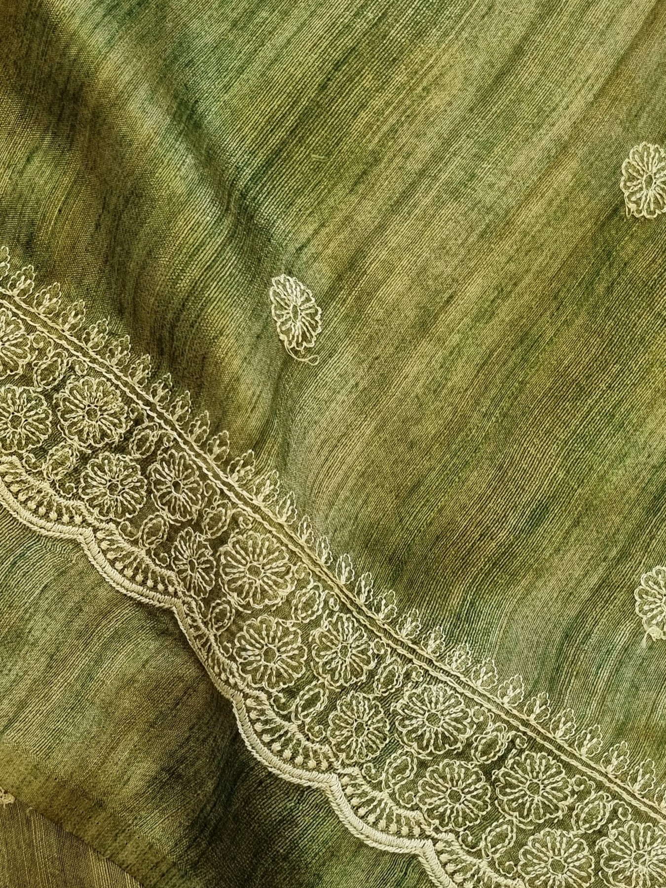 Green Raw Silk Saree with Embroidered Borders