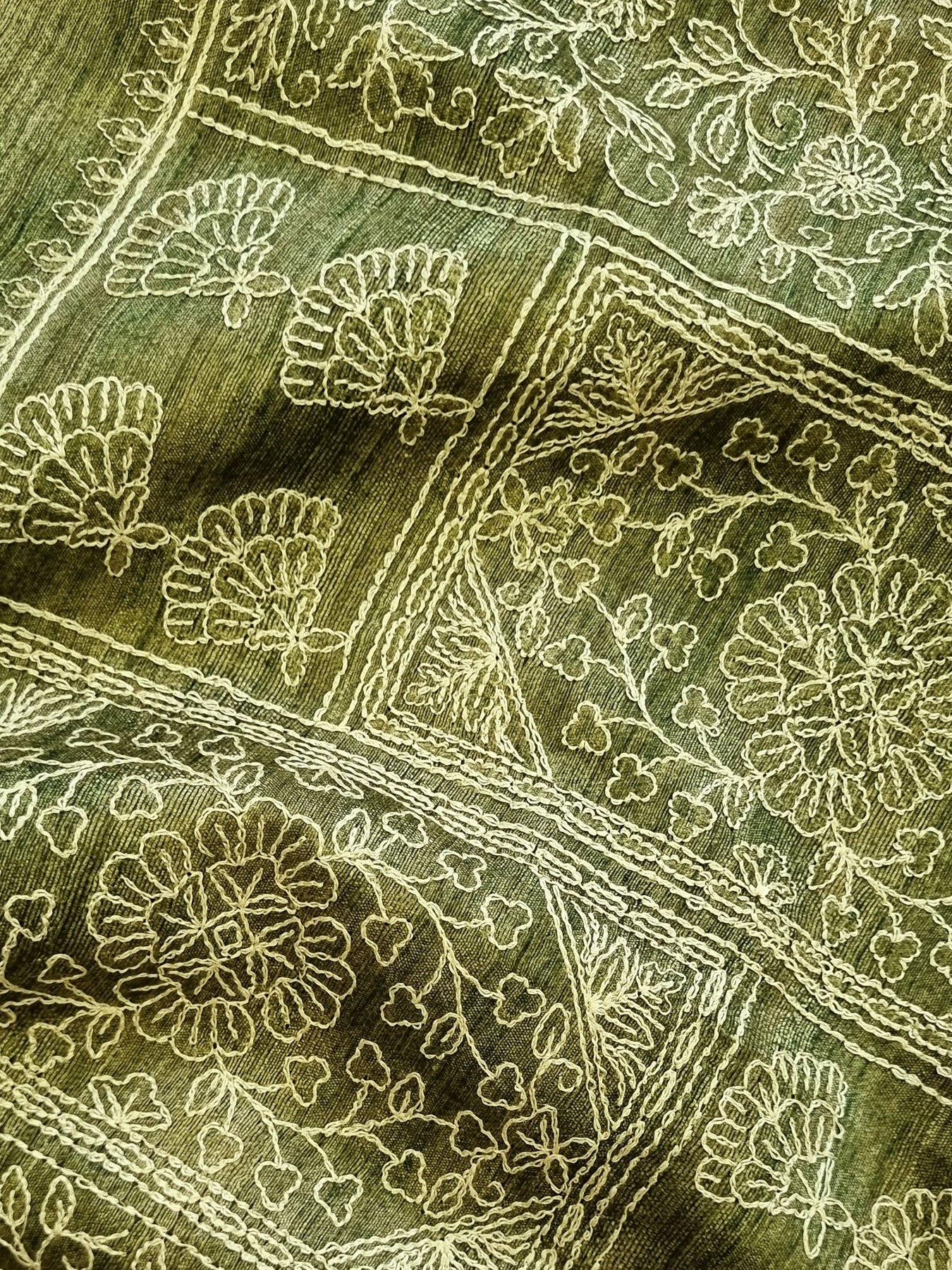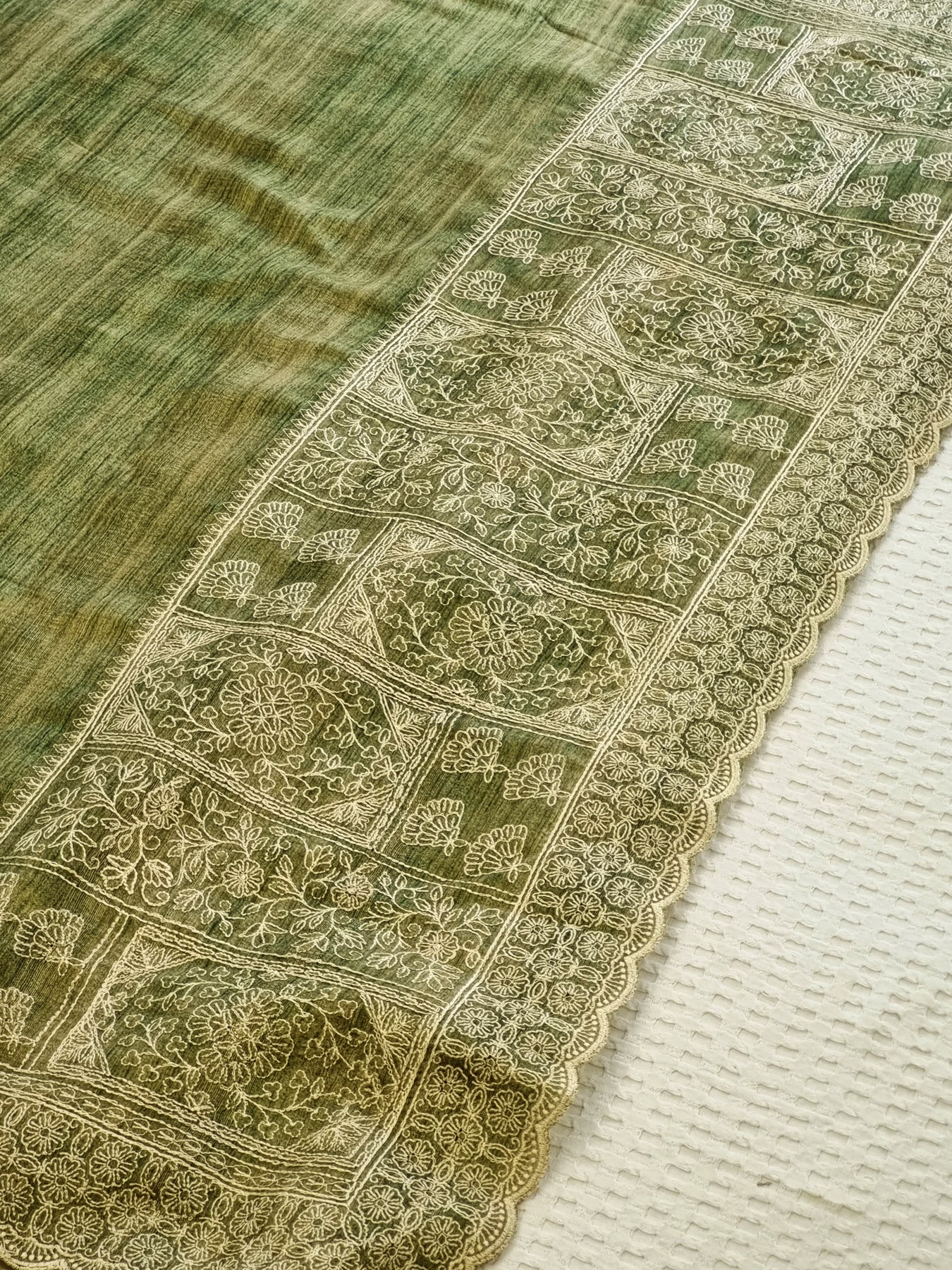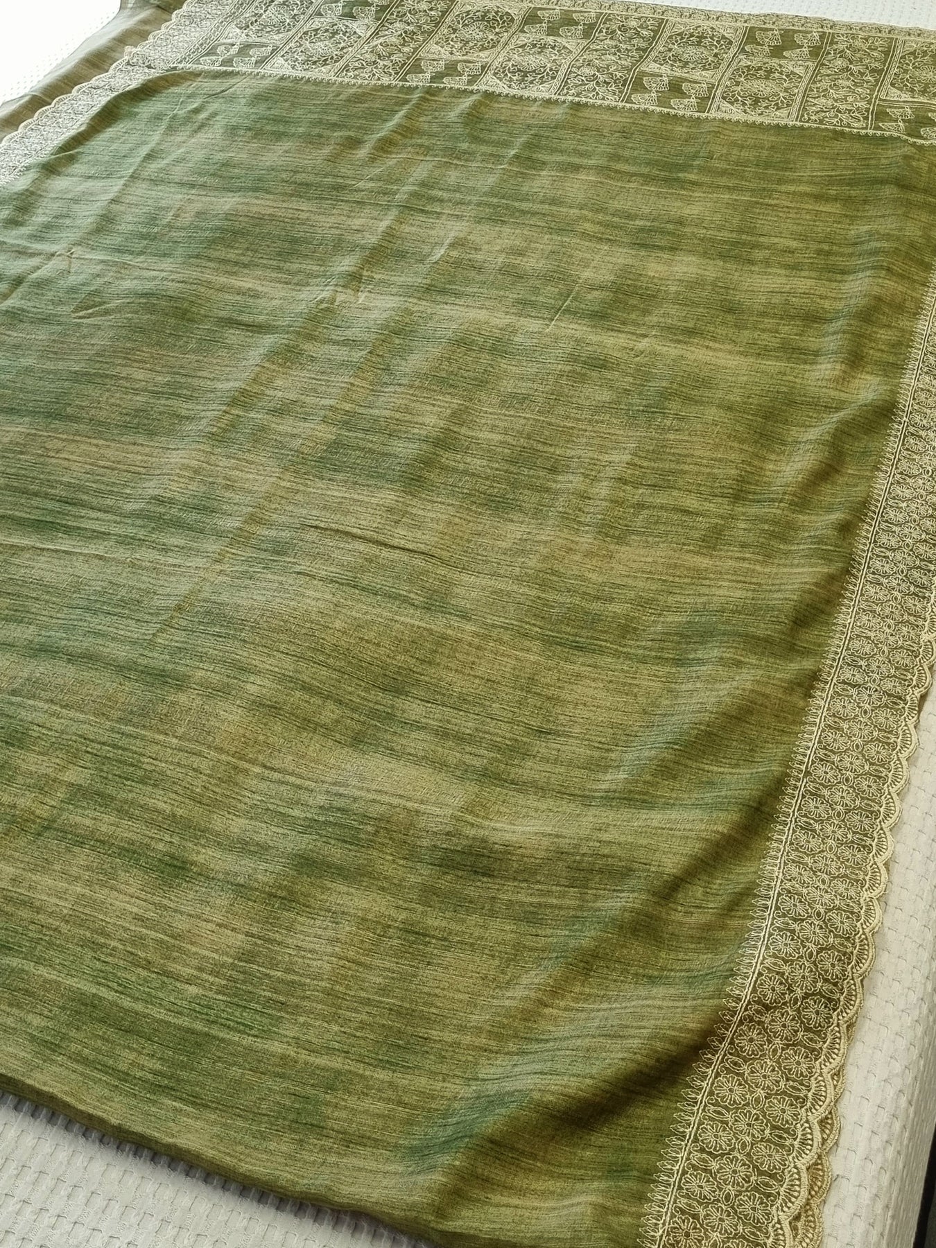 Green Raw Silk Saree with Embroidered Borders