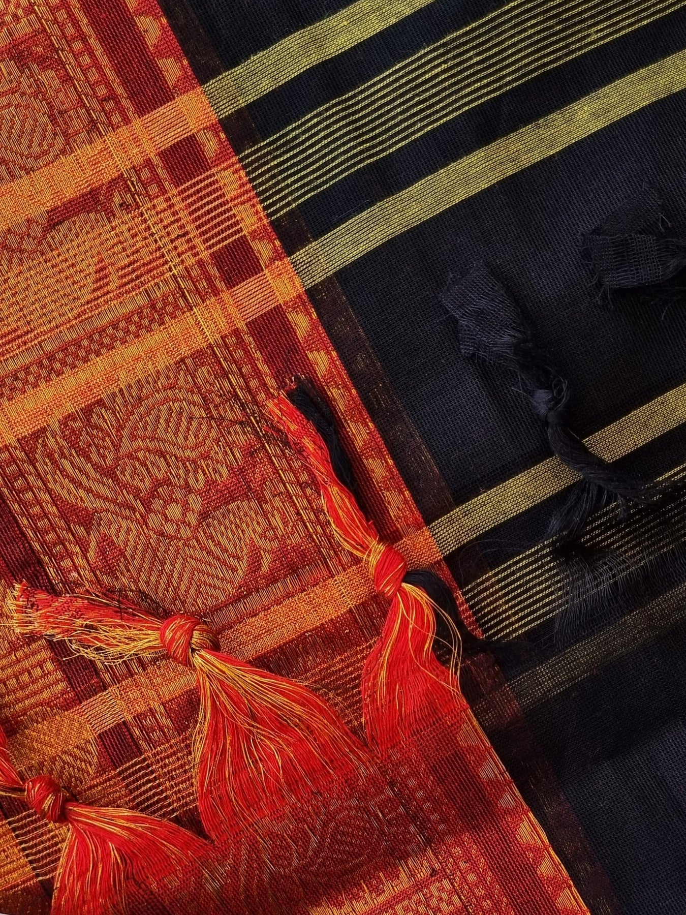 Handloom Kanchi Cotton Saree with running blouse fabric