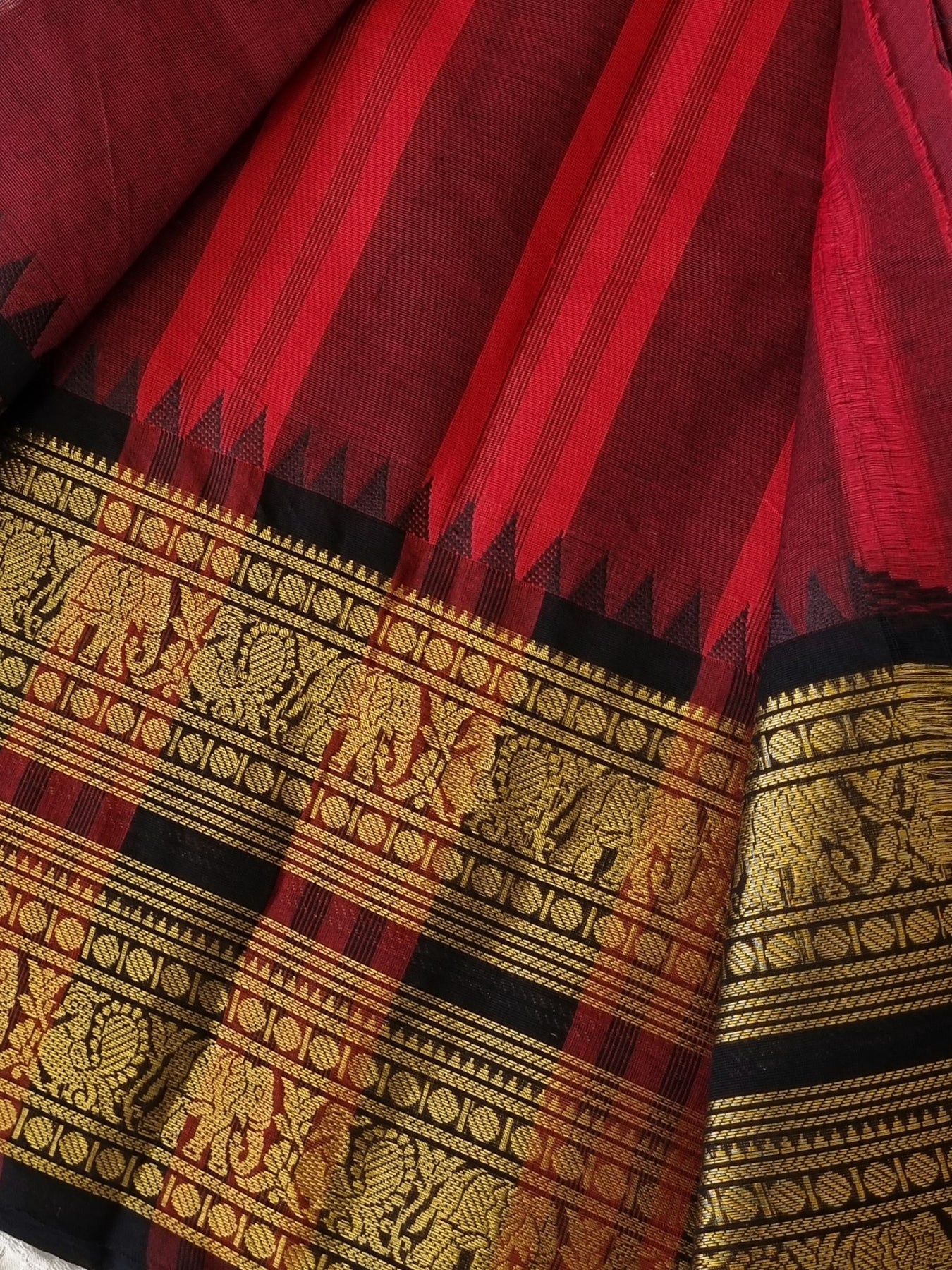 • Handloom Kanchi Cotton Saree with running blouse fabric