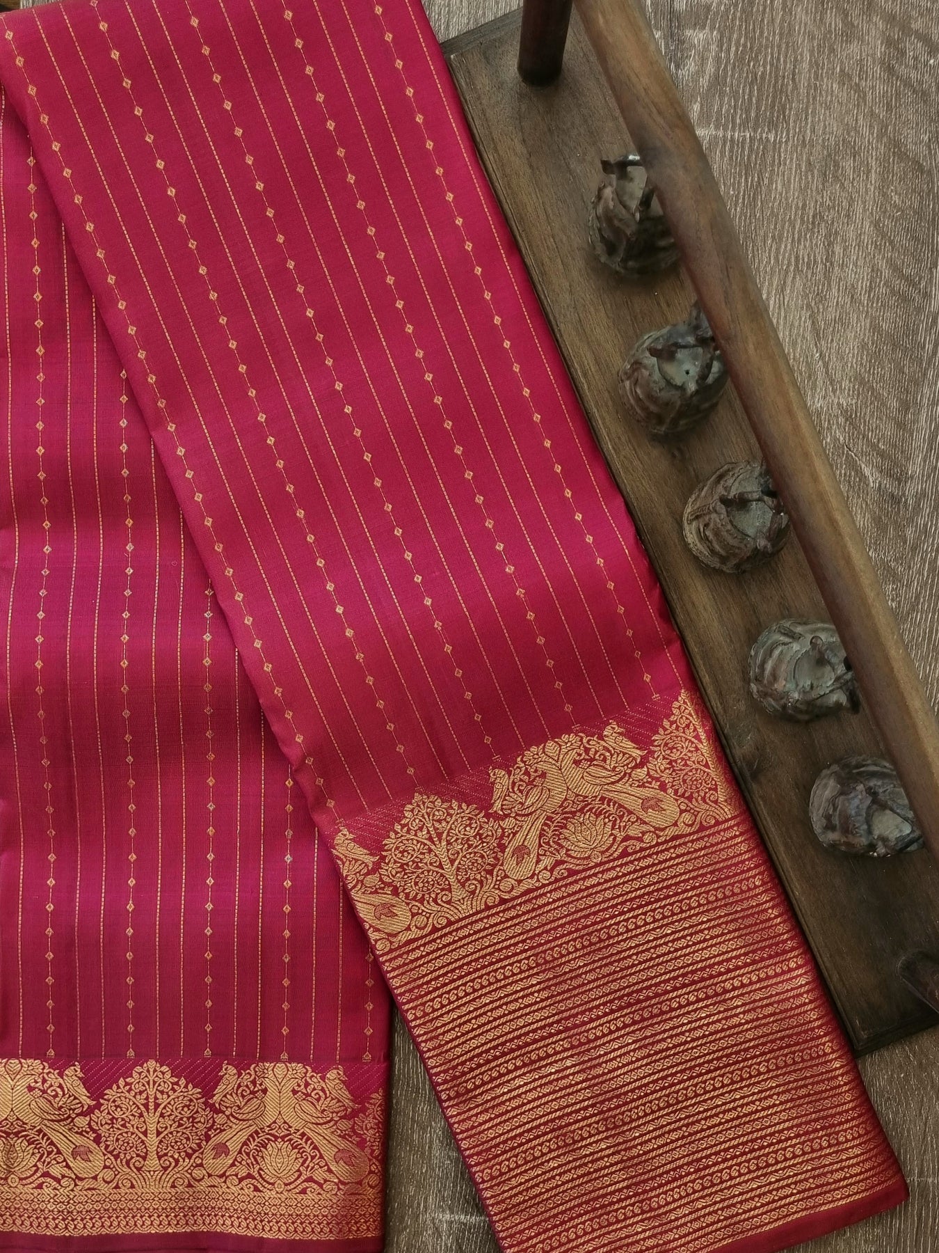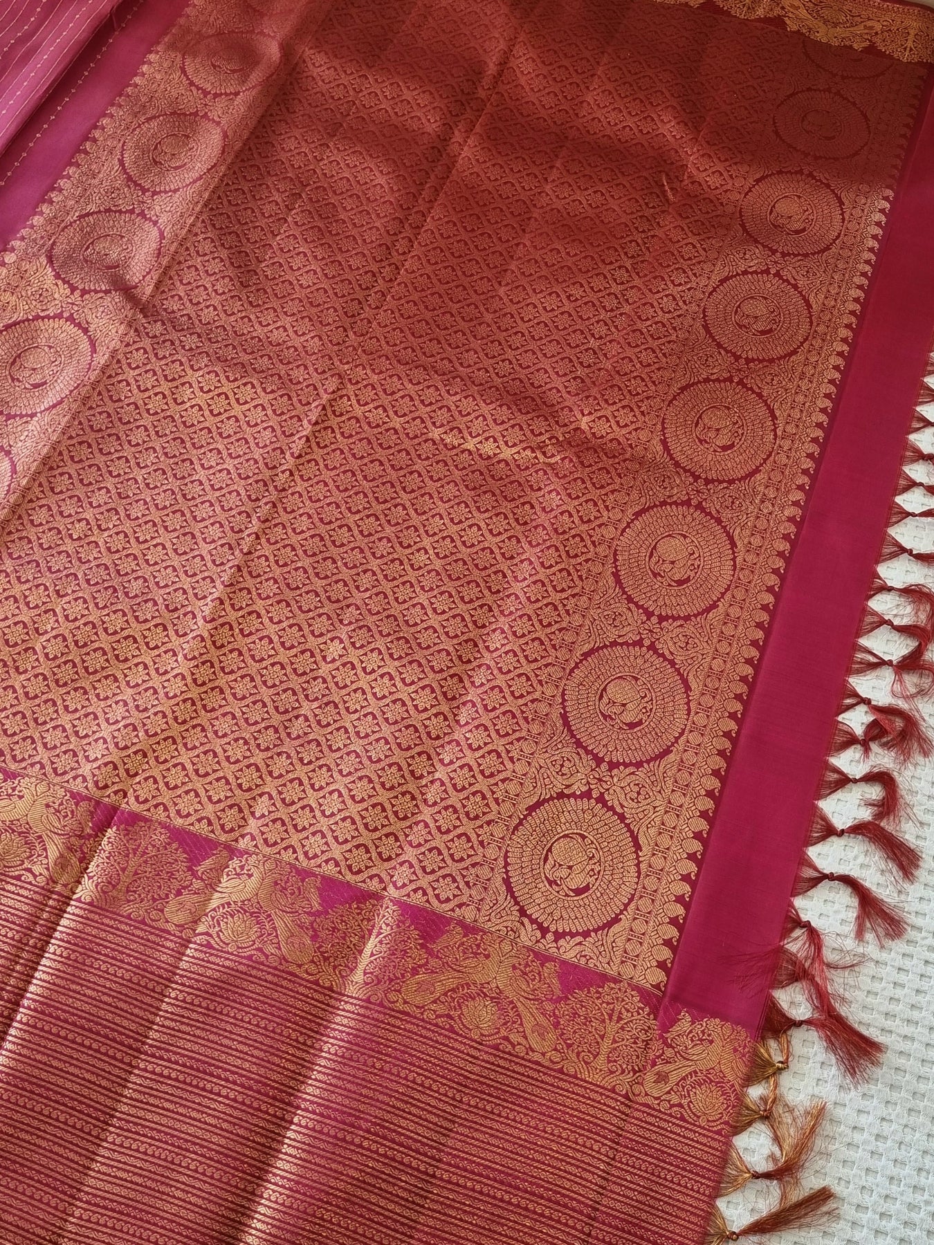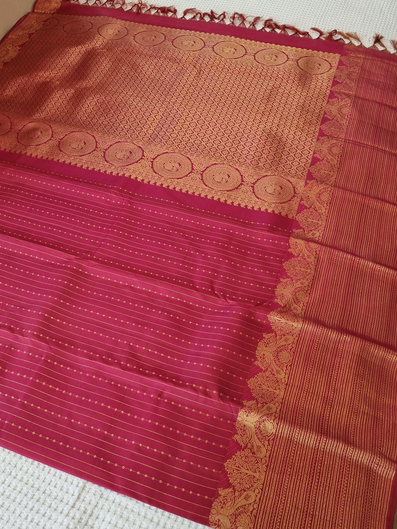 Handloom Kanjivaram Pure Silk Saree with Gold Zari Borders