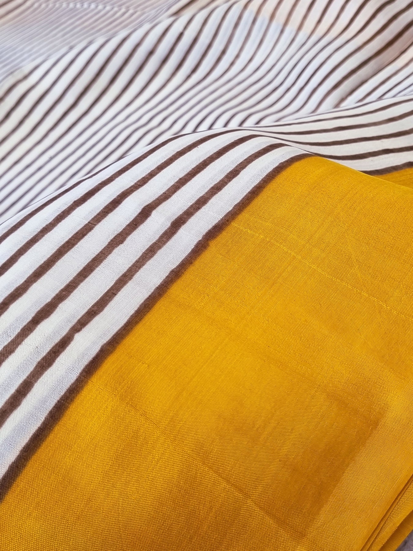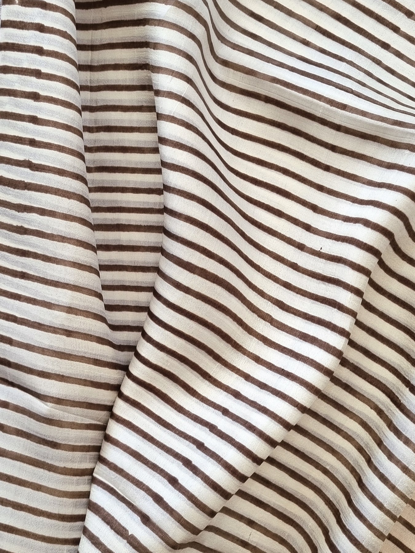 Characteristic imperfections associated with handblock printing may be observed, and colours may fade or bleed due to the traditional dyeing and printing process employed