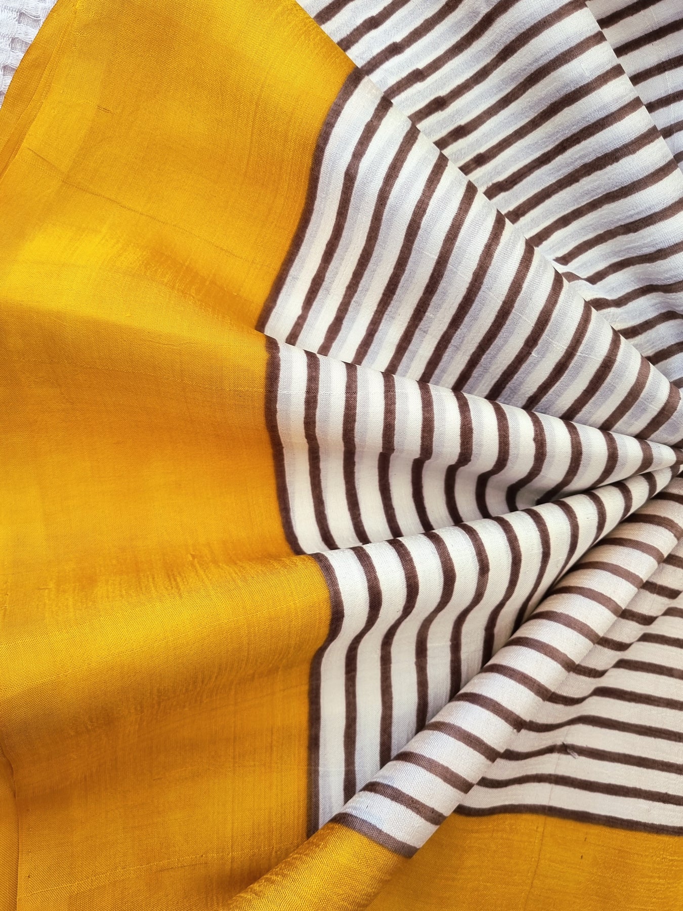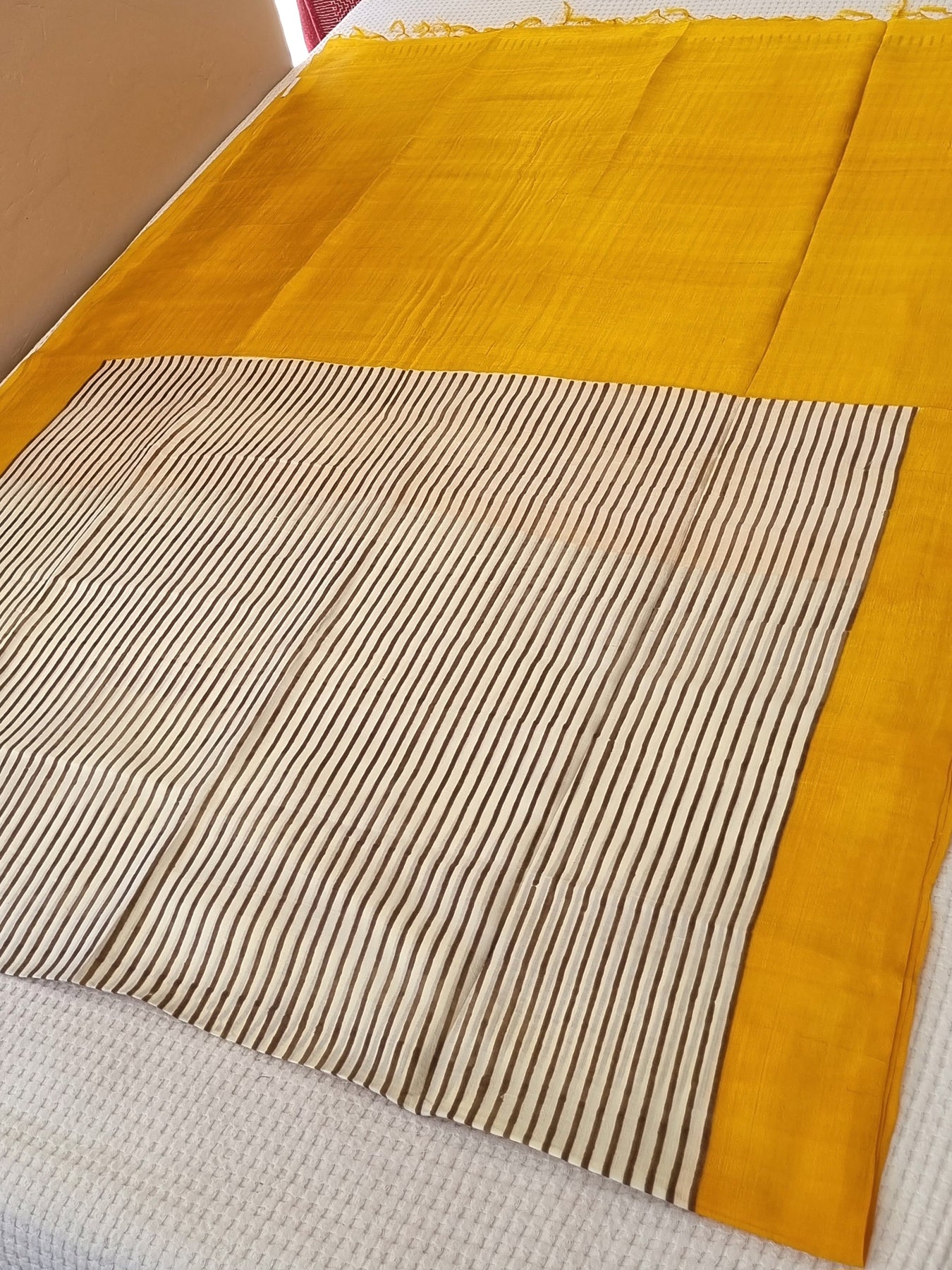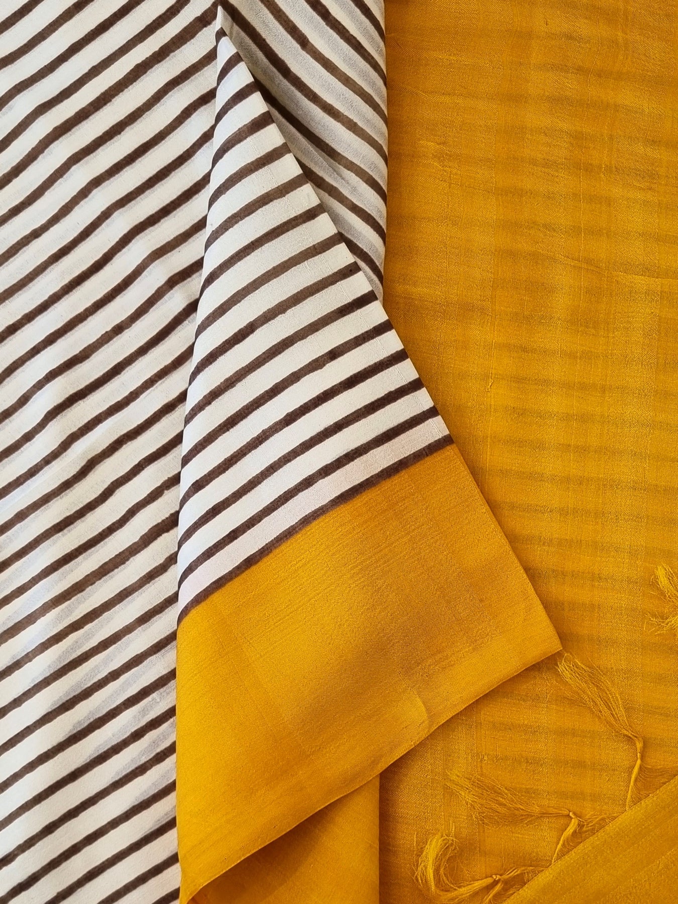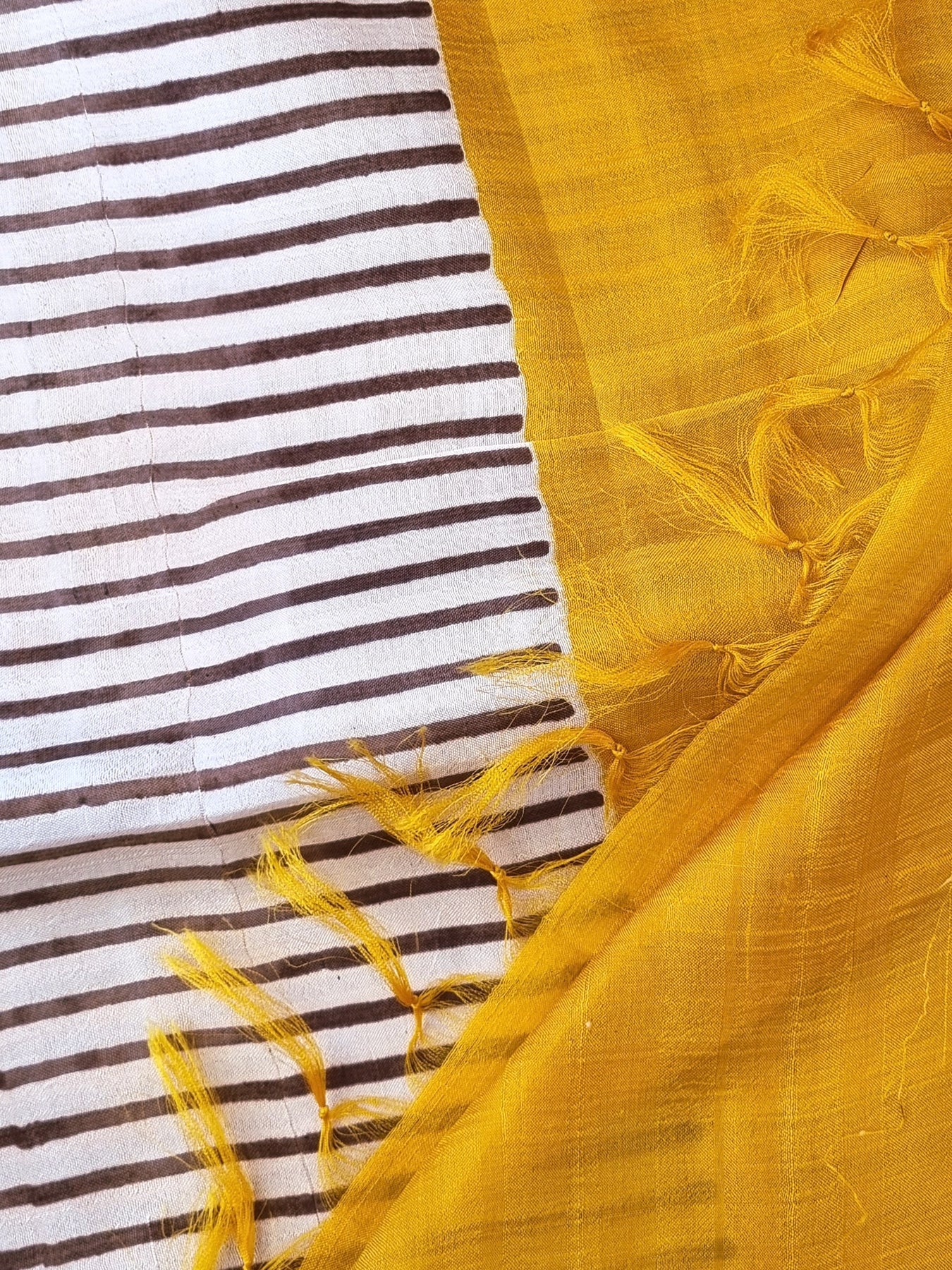 Handloom Murshidabad Pure Silk Saree with Block Prints beautifully finished with tassels