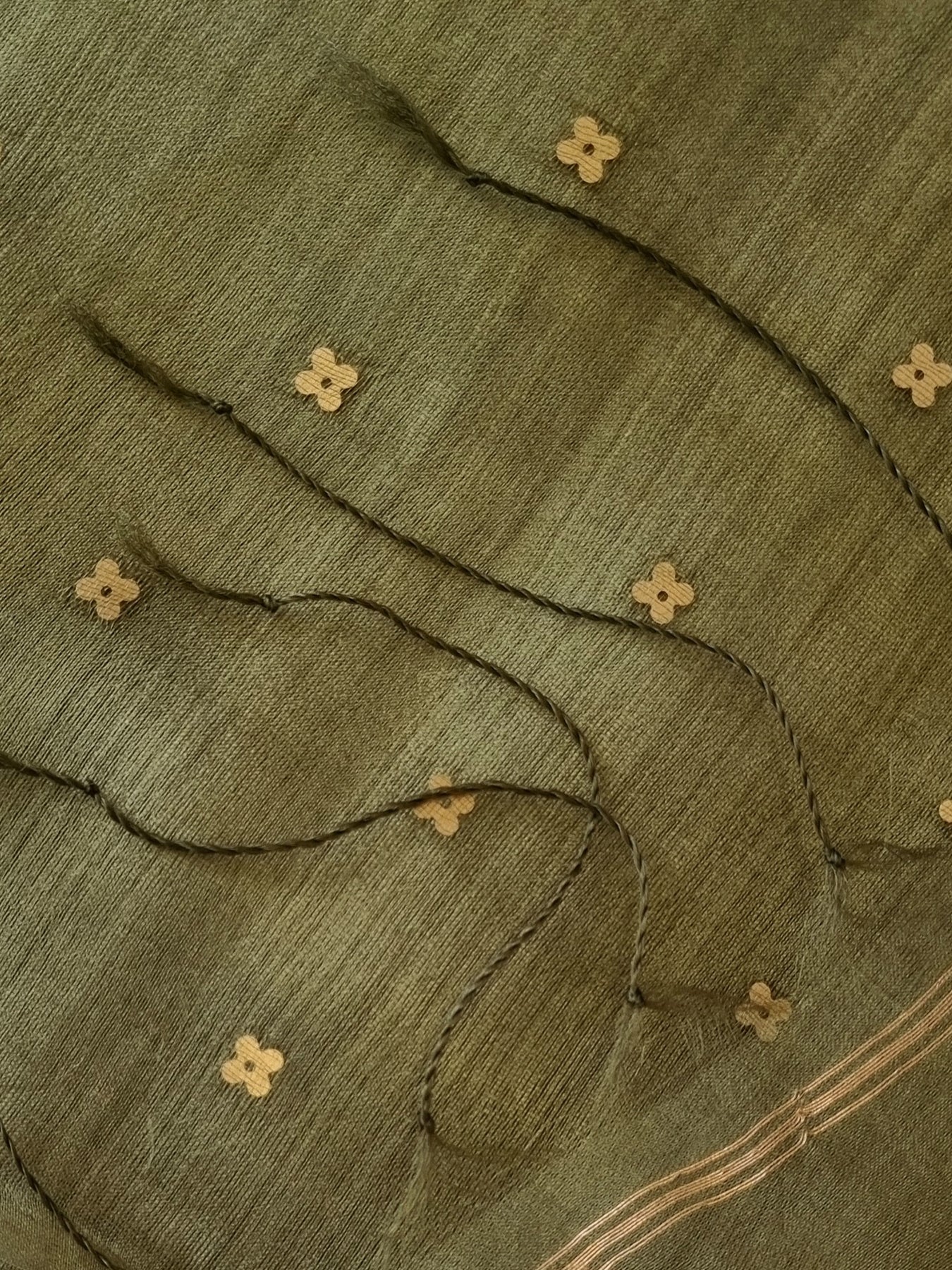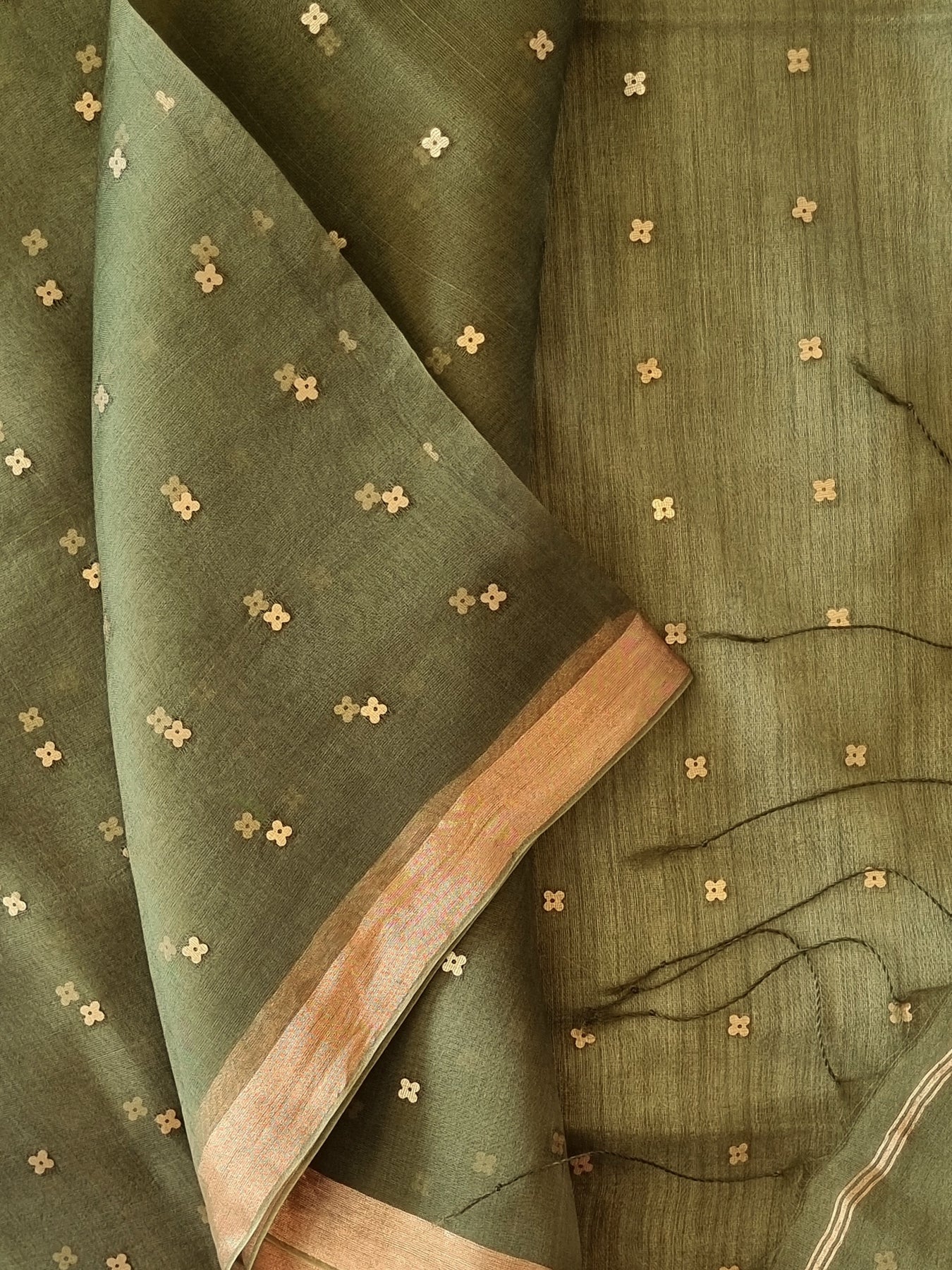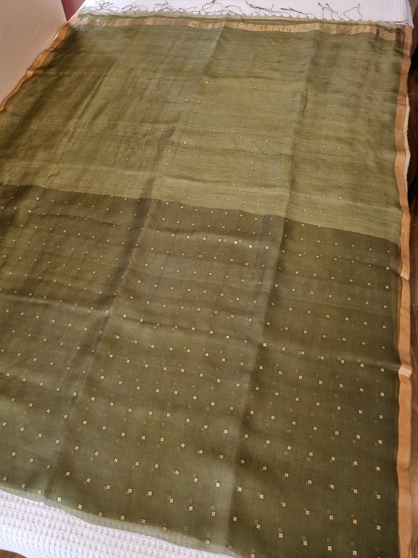 Handloom Pure Muslin Silk Saree with Woven Sequins
