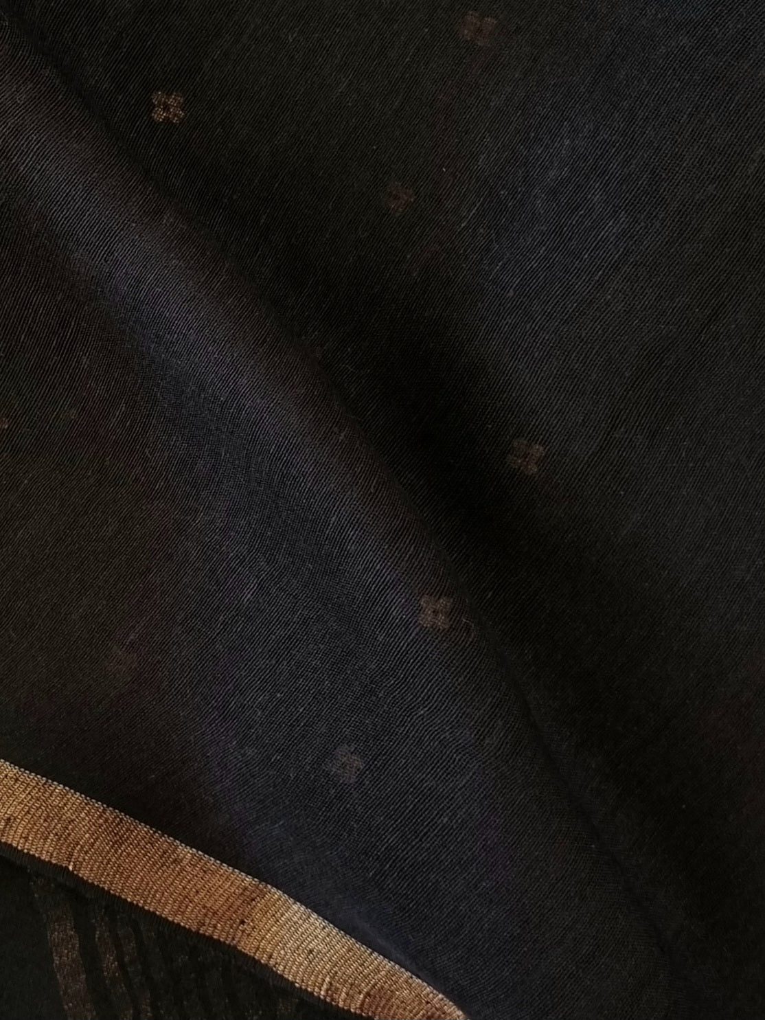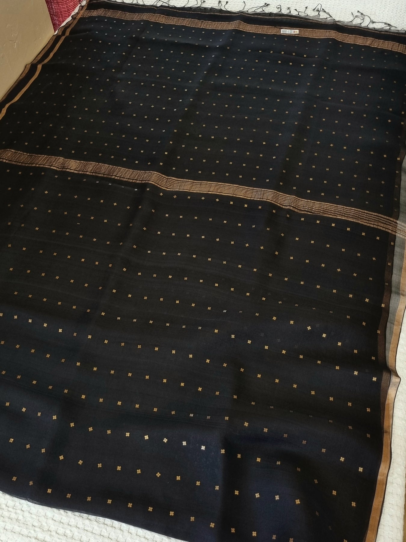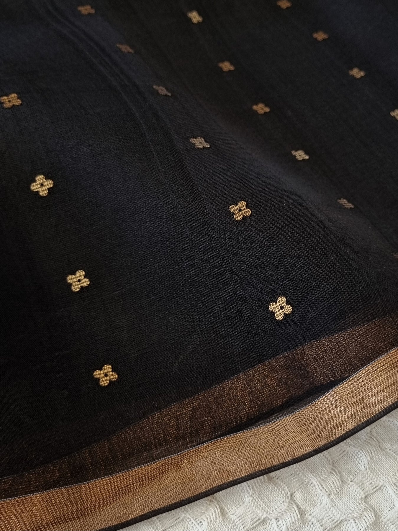 Black Handloom Pure Muslin Silk Saree with Woven Sequins