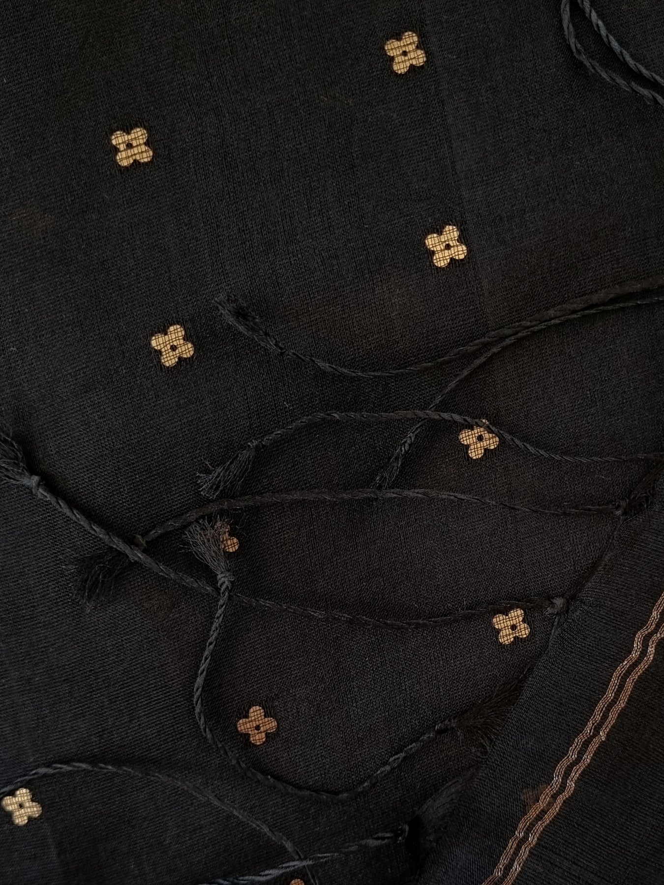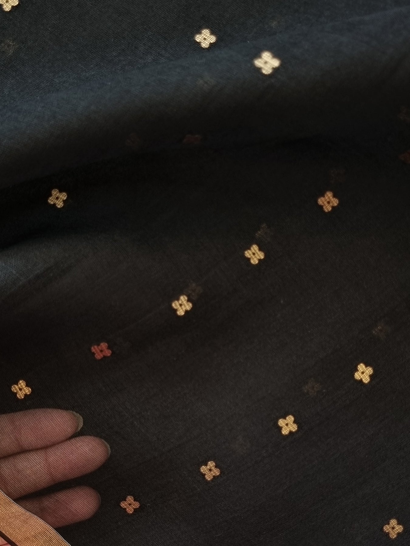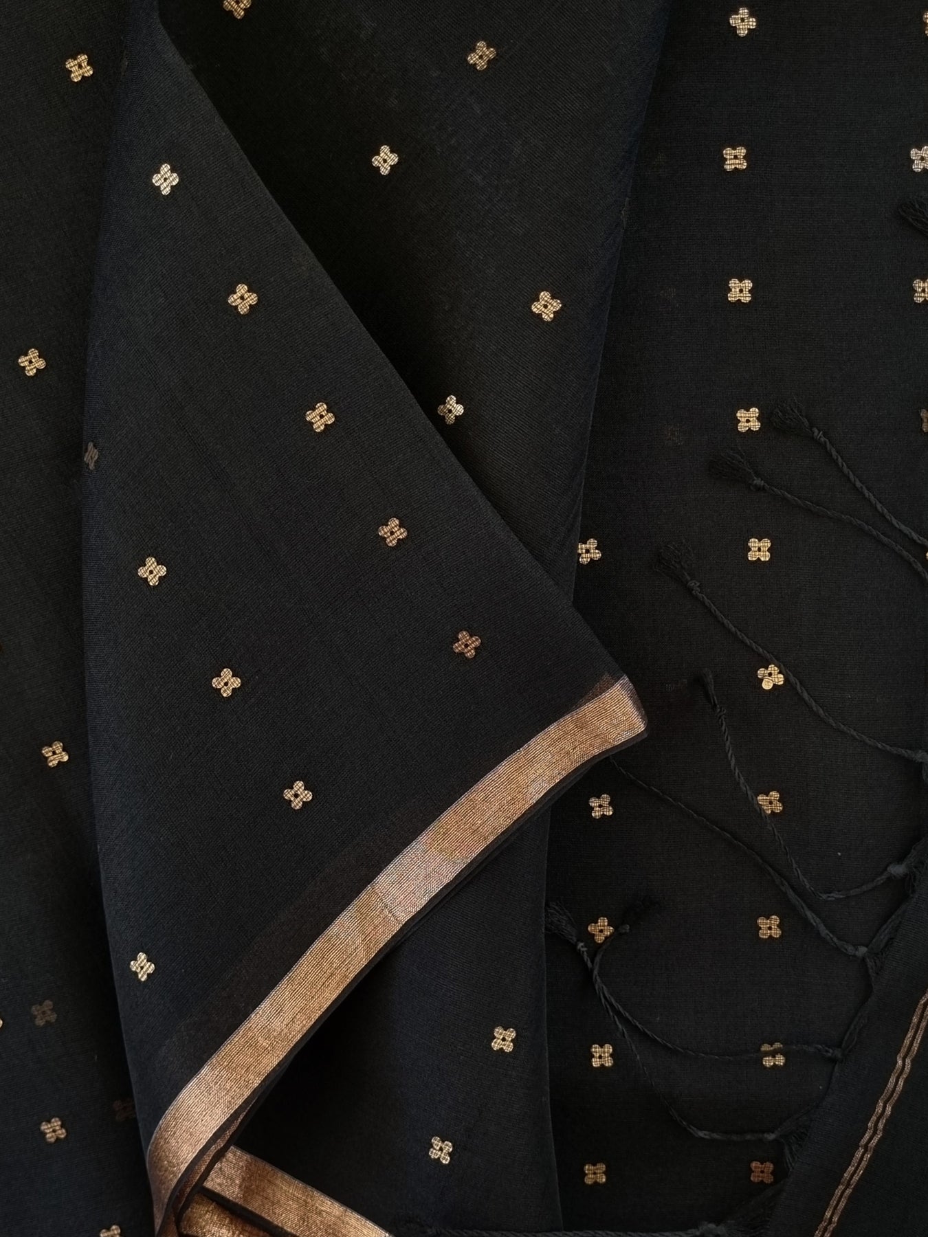 Black Handloom Pure Muslin Silk Saree with Woven Sequins