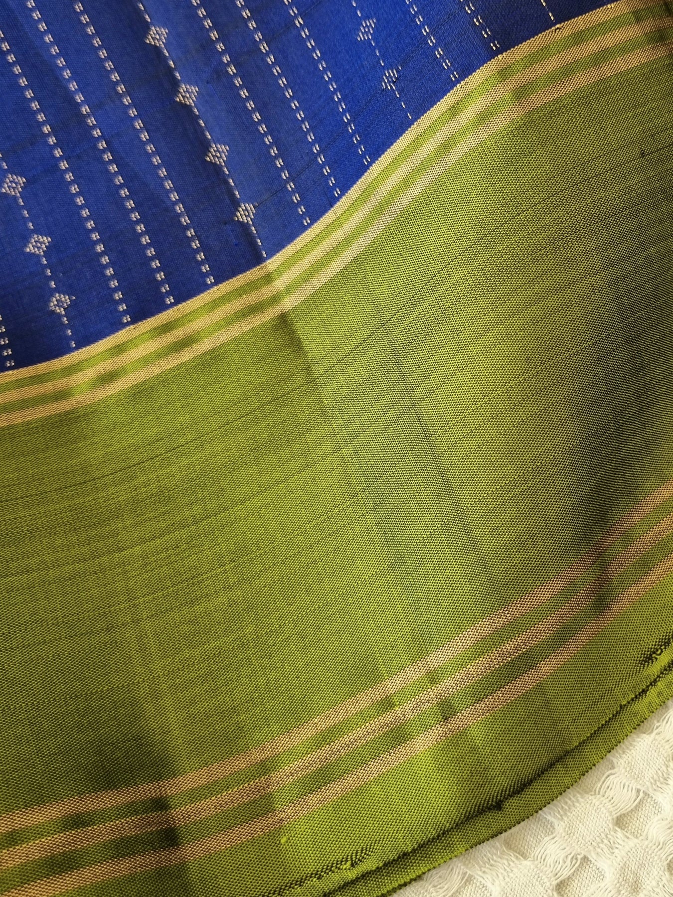 Beautiful Handwoven Soft Silk Saree with a contrast border and intricately woven gold motifs on the body and a rich woven pallu