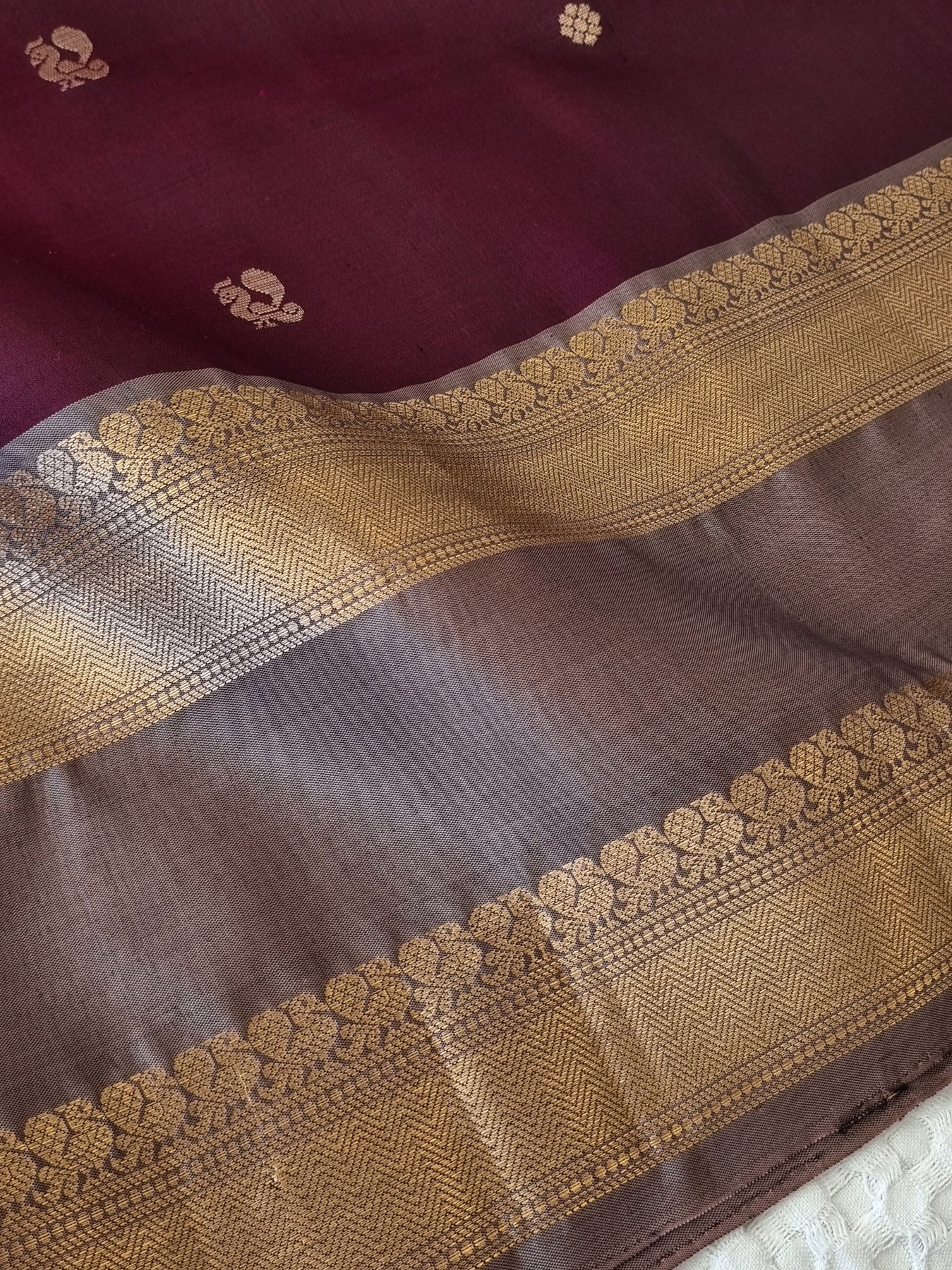 Beautiful Handwoven Soft Silk Saree with a contrast edgings and intricately woven gold motifs on the body and a rich woven pallu