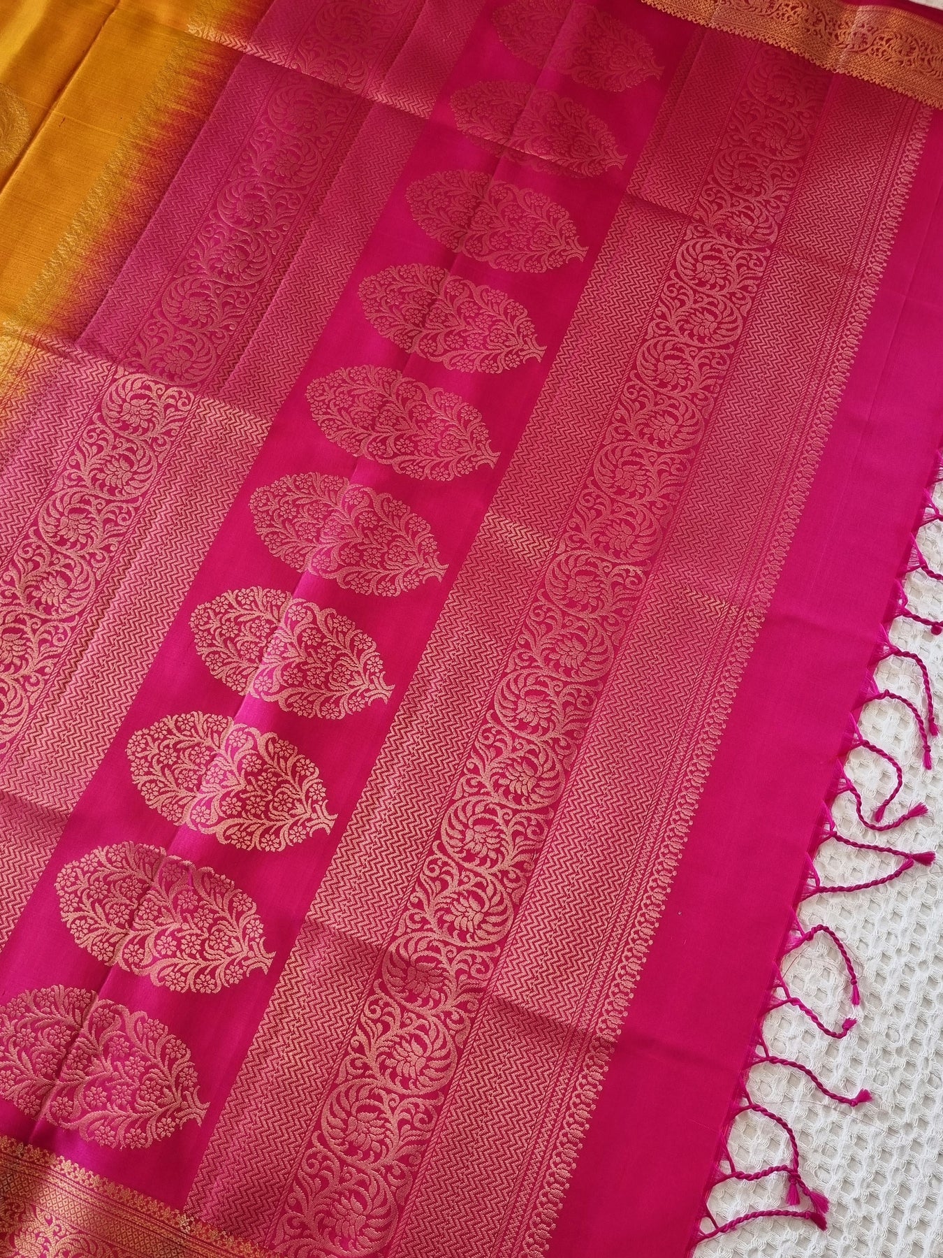 This is a Pure Handloom Kanjivaram Soft Silk Saree sourced directly from weavers