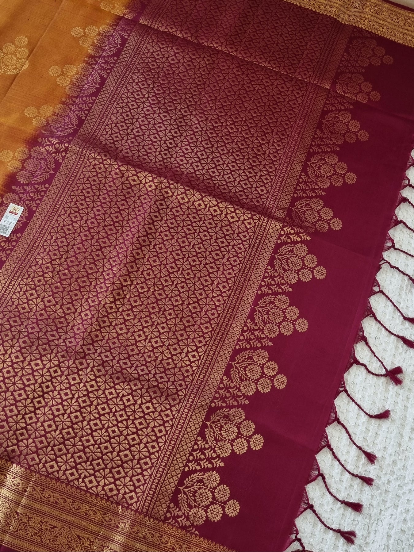 Blouse: The last image gives a detailed look of the blouse fabric that comes with the Saree