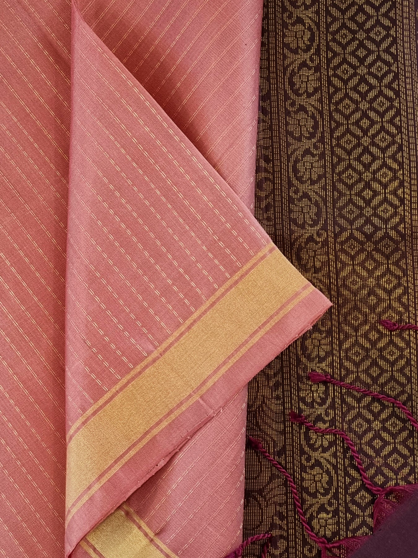 Pink Handwoven Kanjivaram Soft Silk With Gold Borders