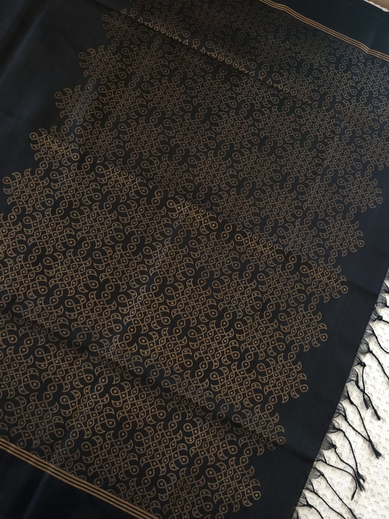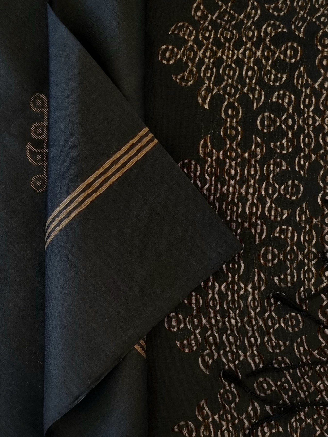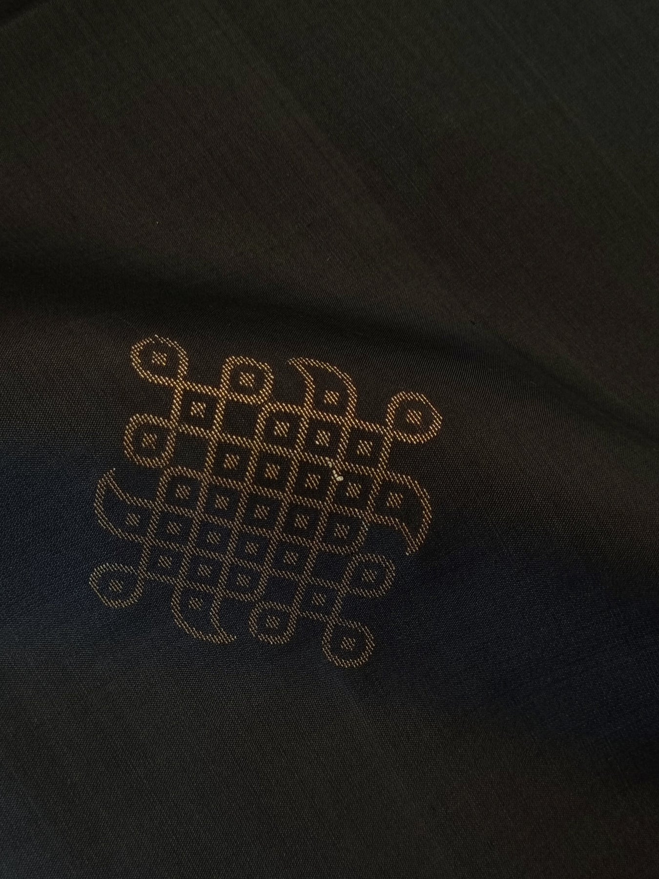 Beautiful Black Handwoven Soft Silk Saree with Kolam Motifs on the Body and a rich Zari Woven Pallu