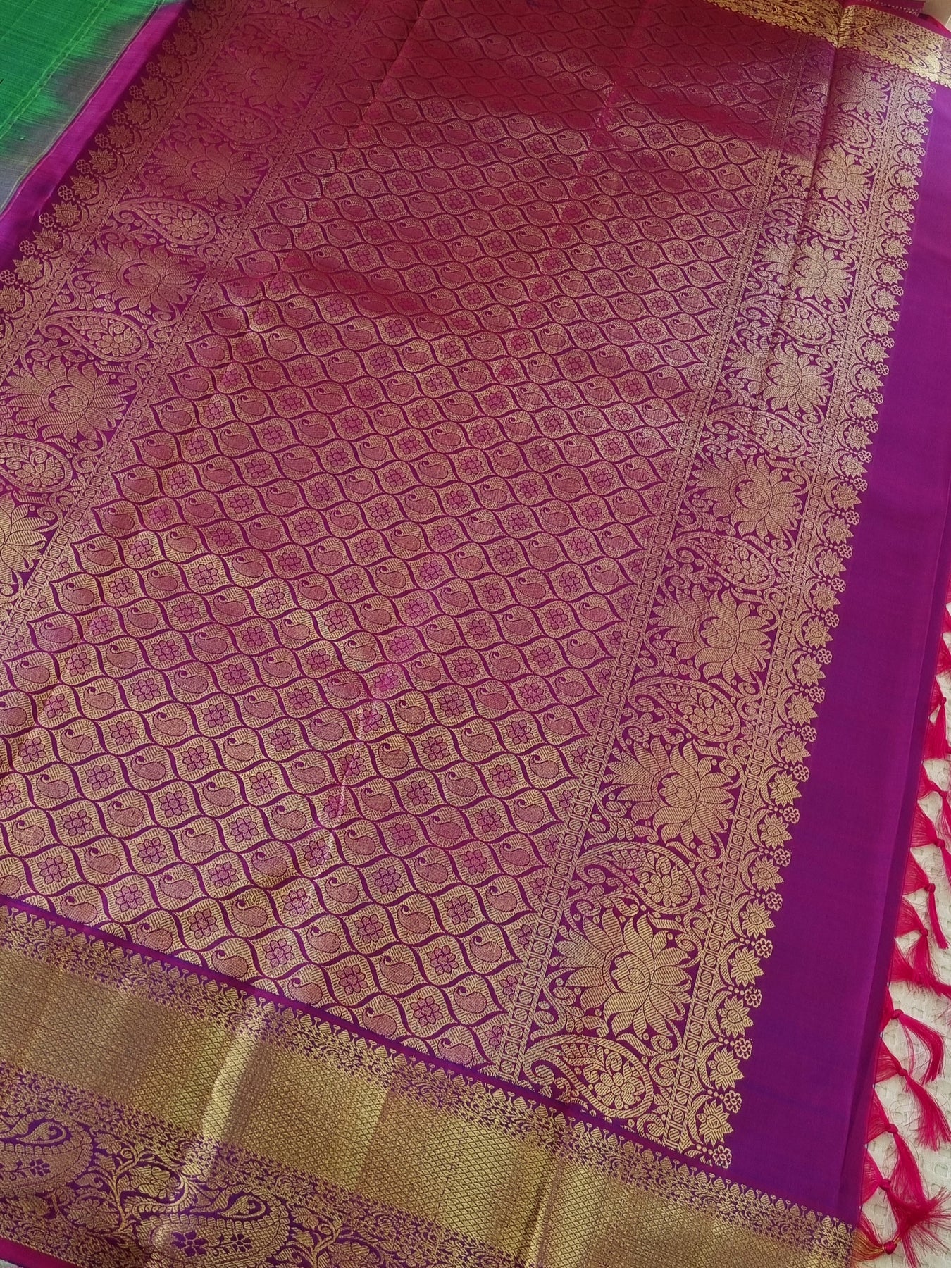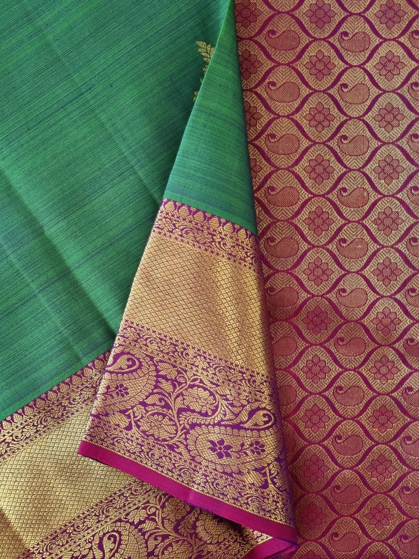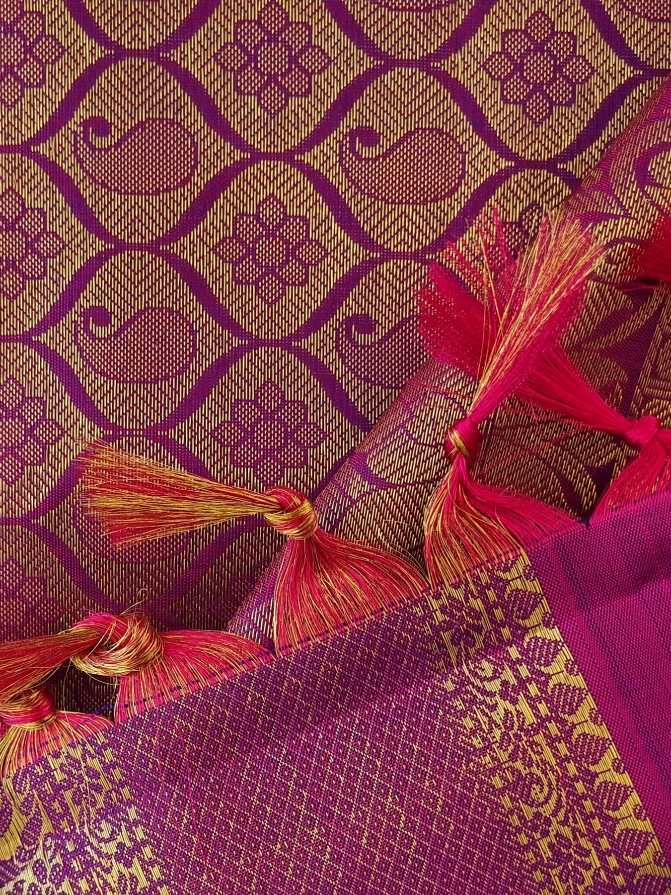 Kanjivaram Pure Silk Saree with Contrast Borders