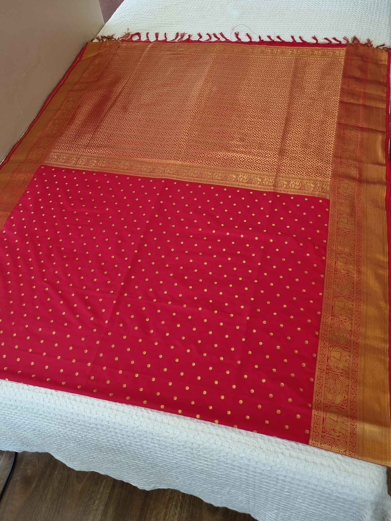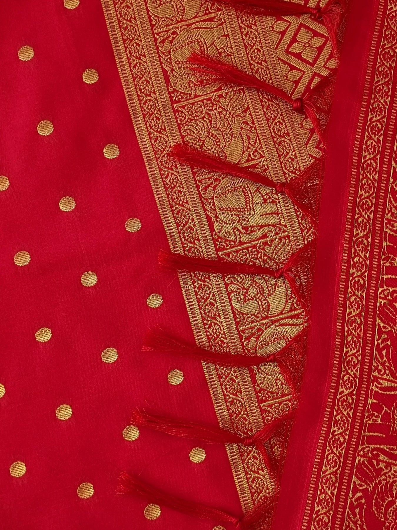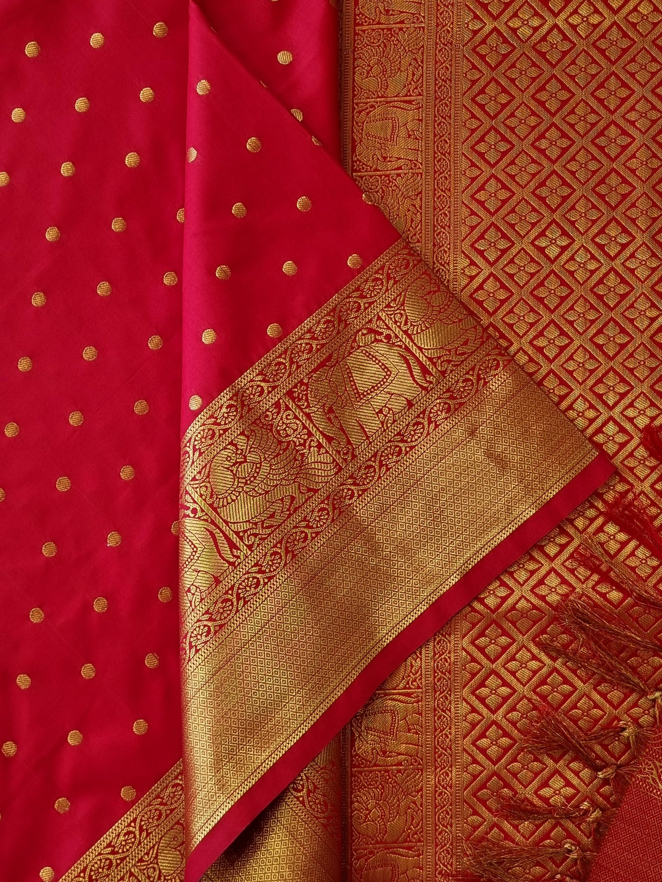 Red Semi Silk Saree with woven borders and pallu, beautifully finished with tassels