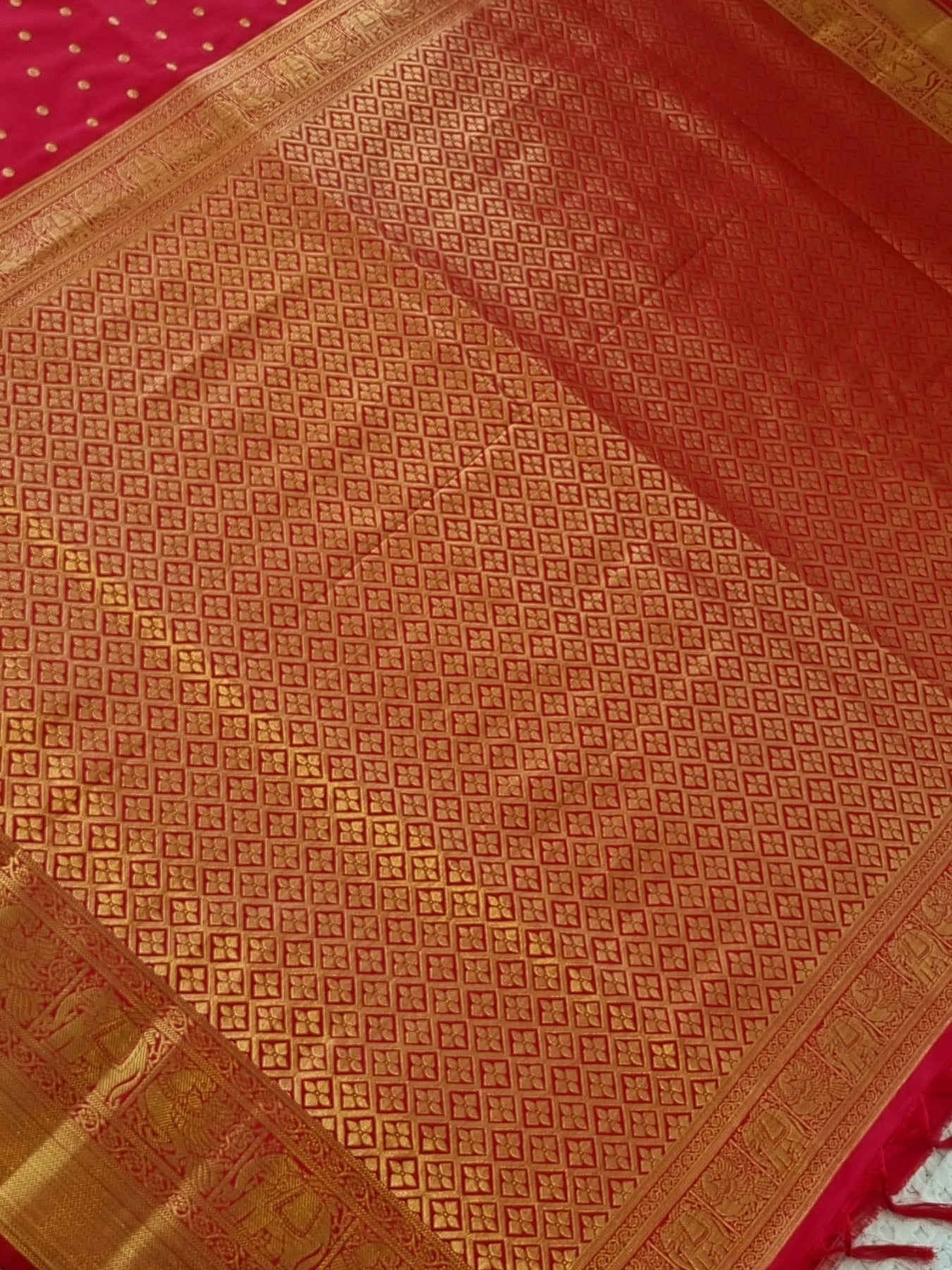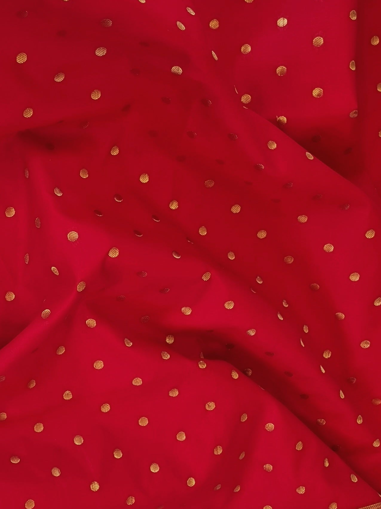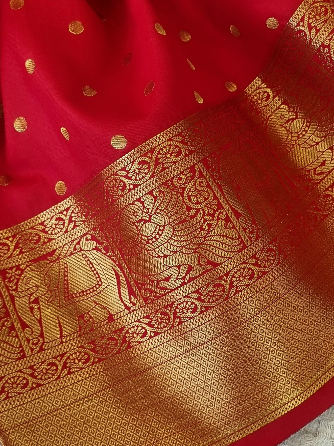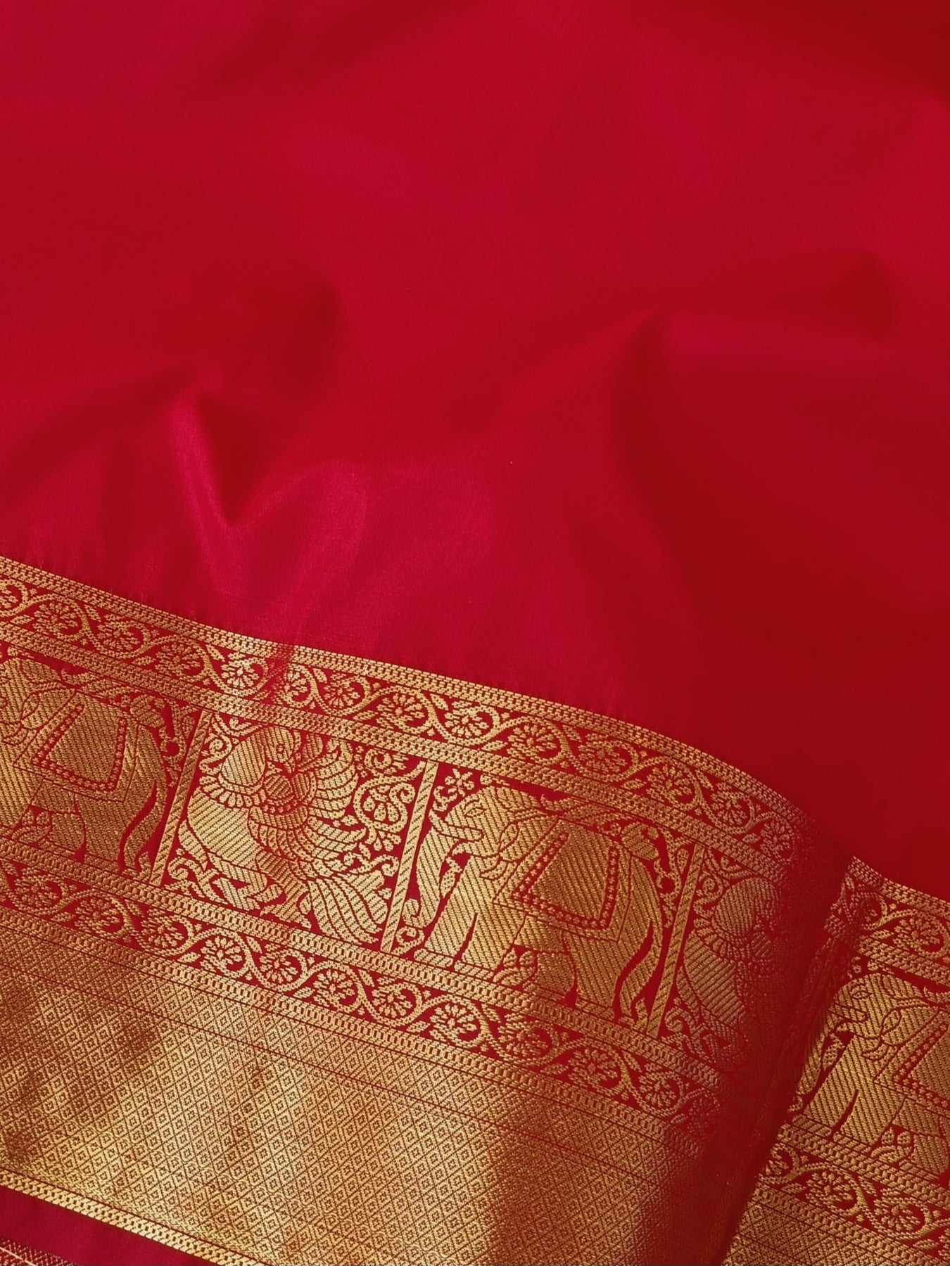 Red Semi Silk Saree with woven borders and pallu, beautifully finished with tassels