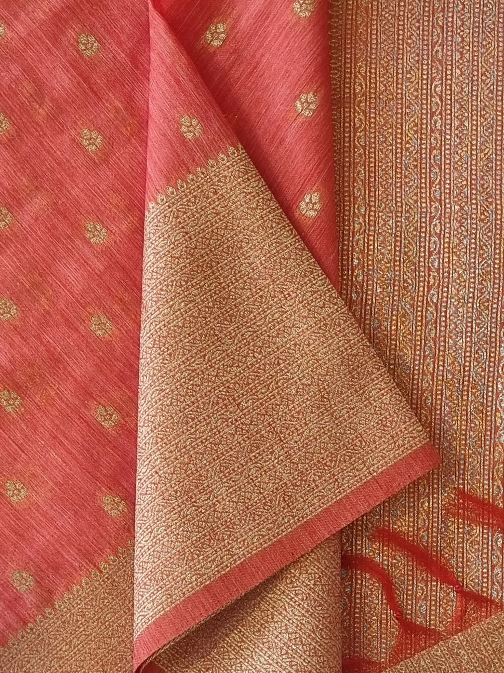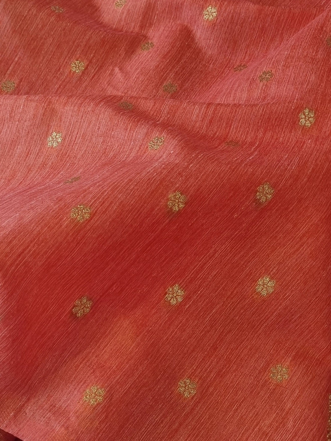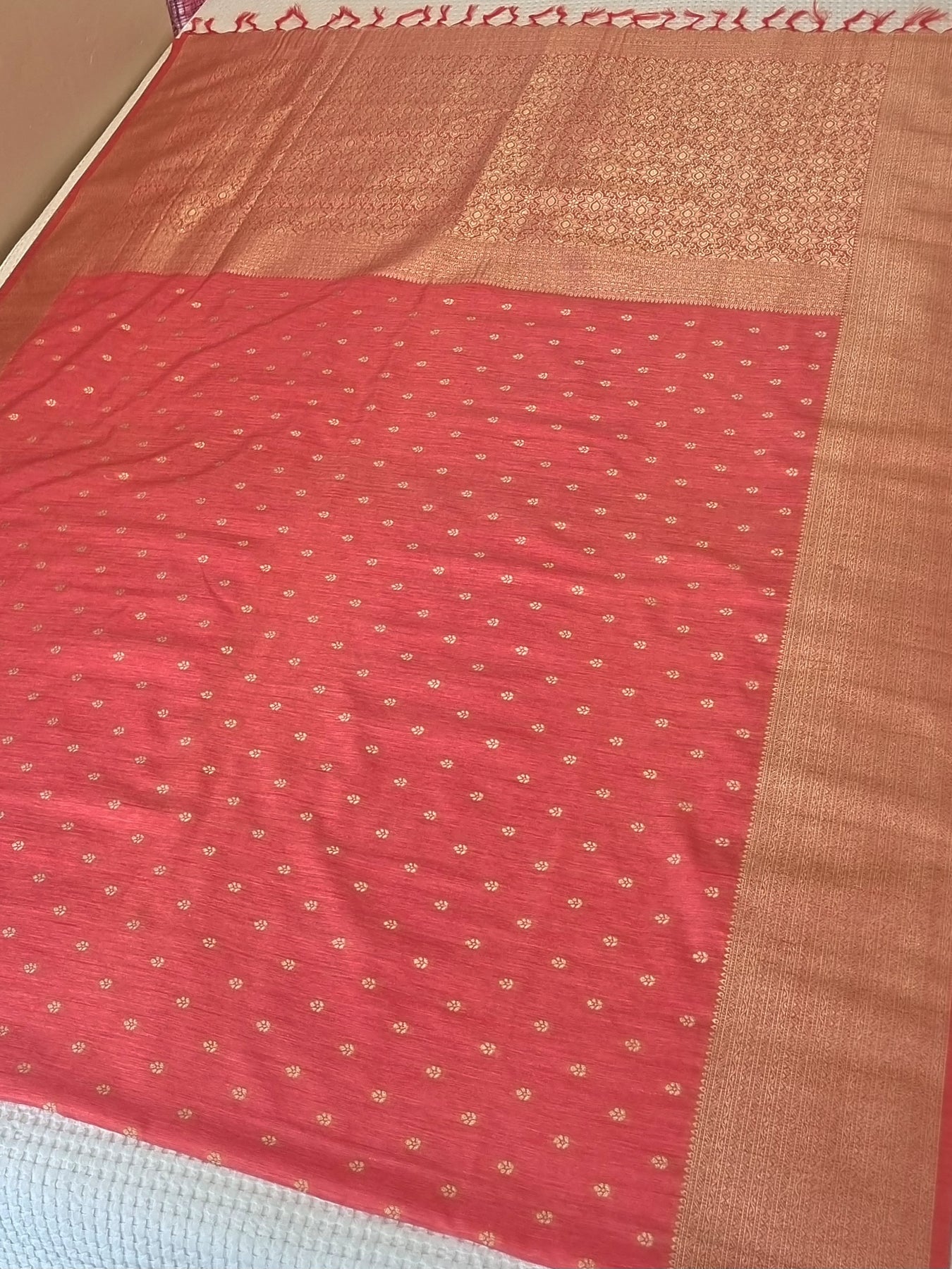 Coral Pink Semi Silk Saree with Gold Borders and Pallu