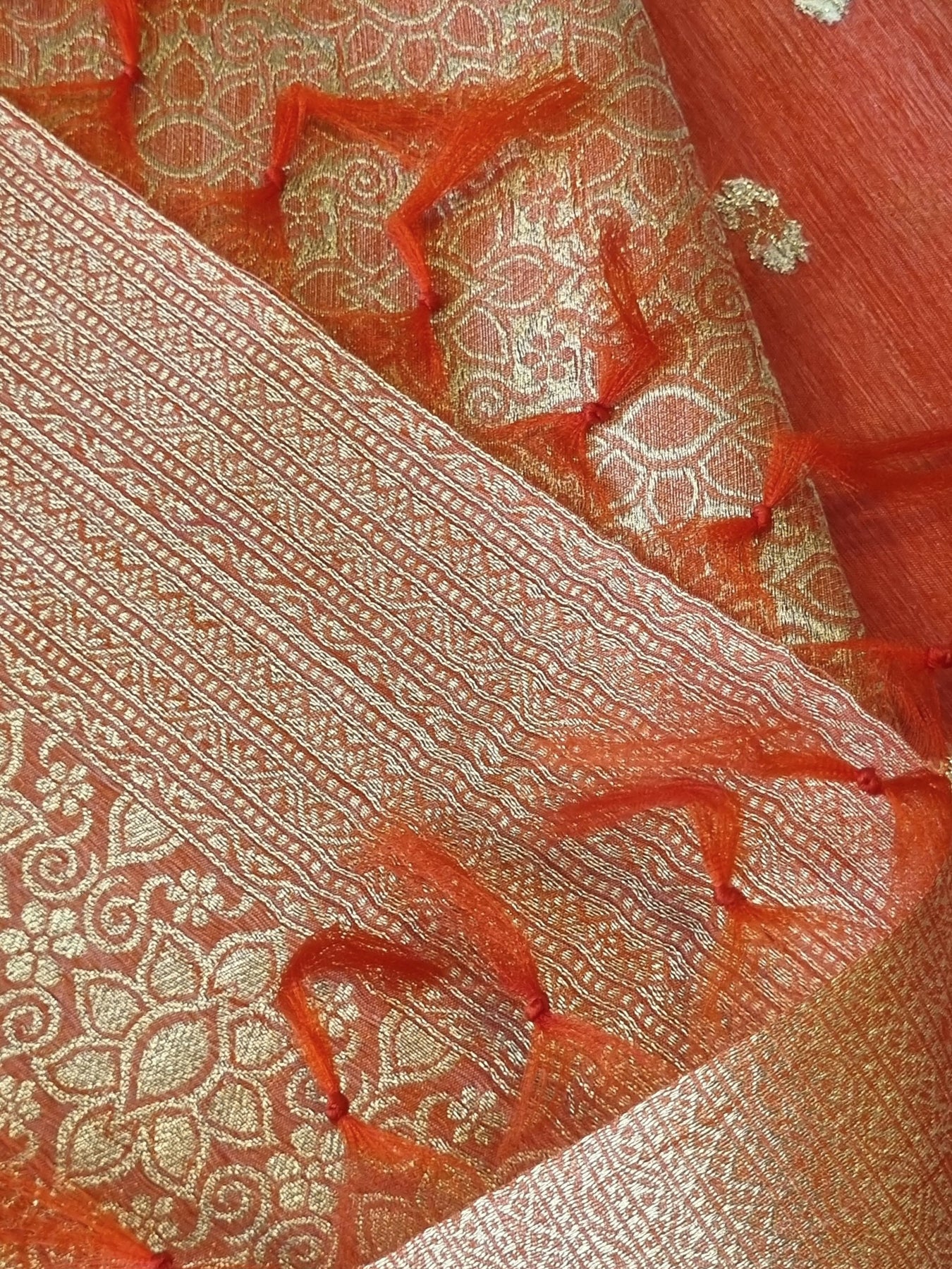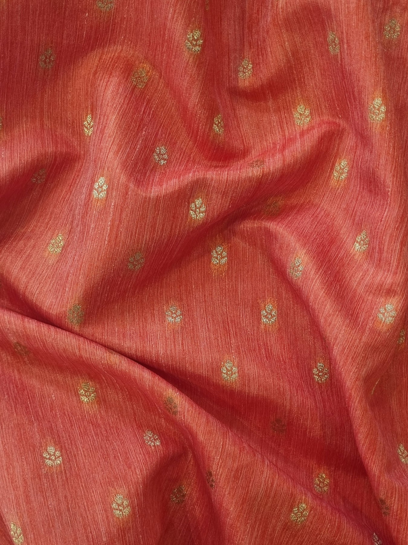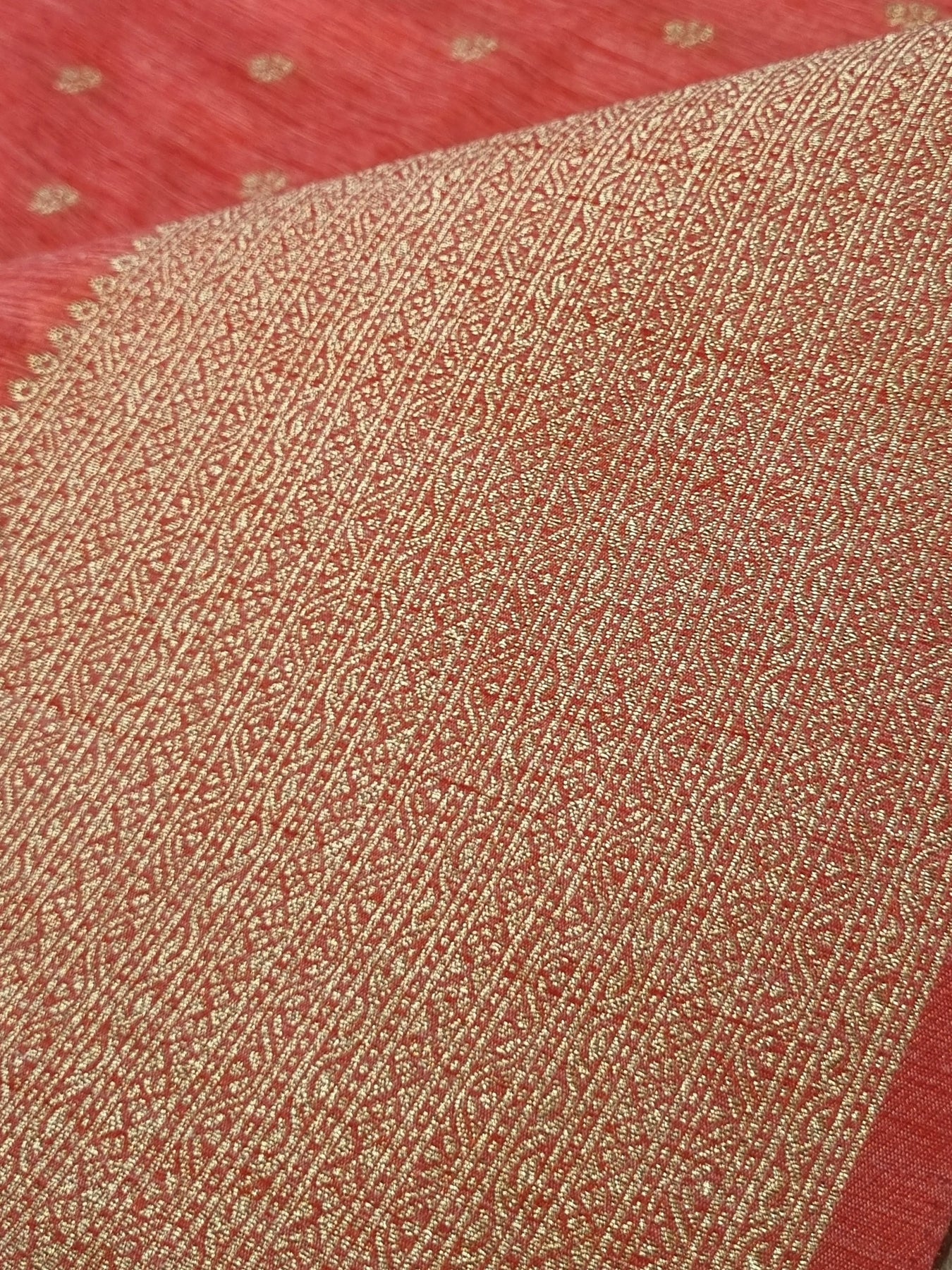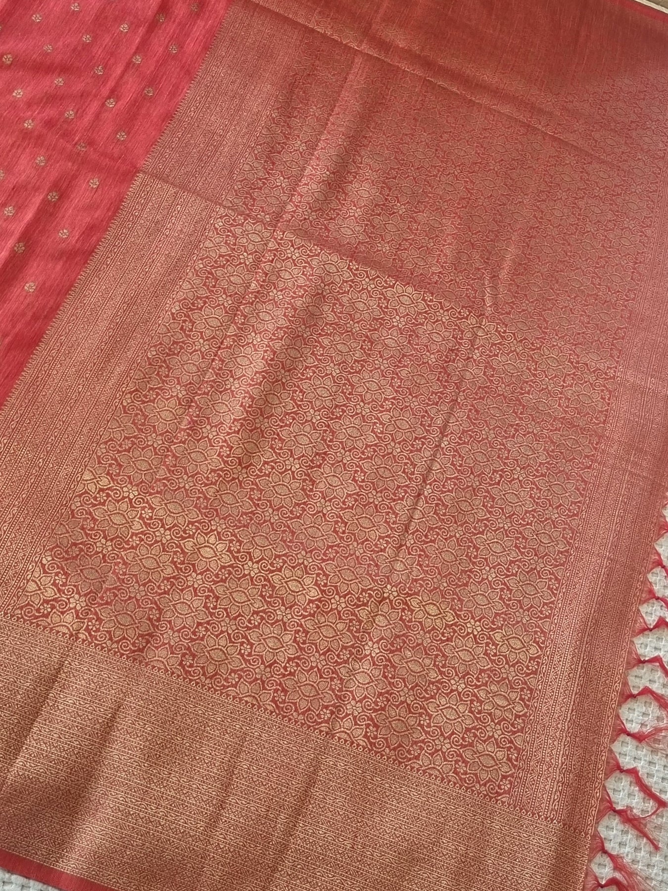 Coral Pink Semi Silk Saree with Gold Borders and Pallu