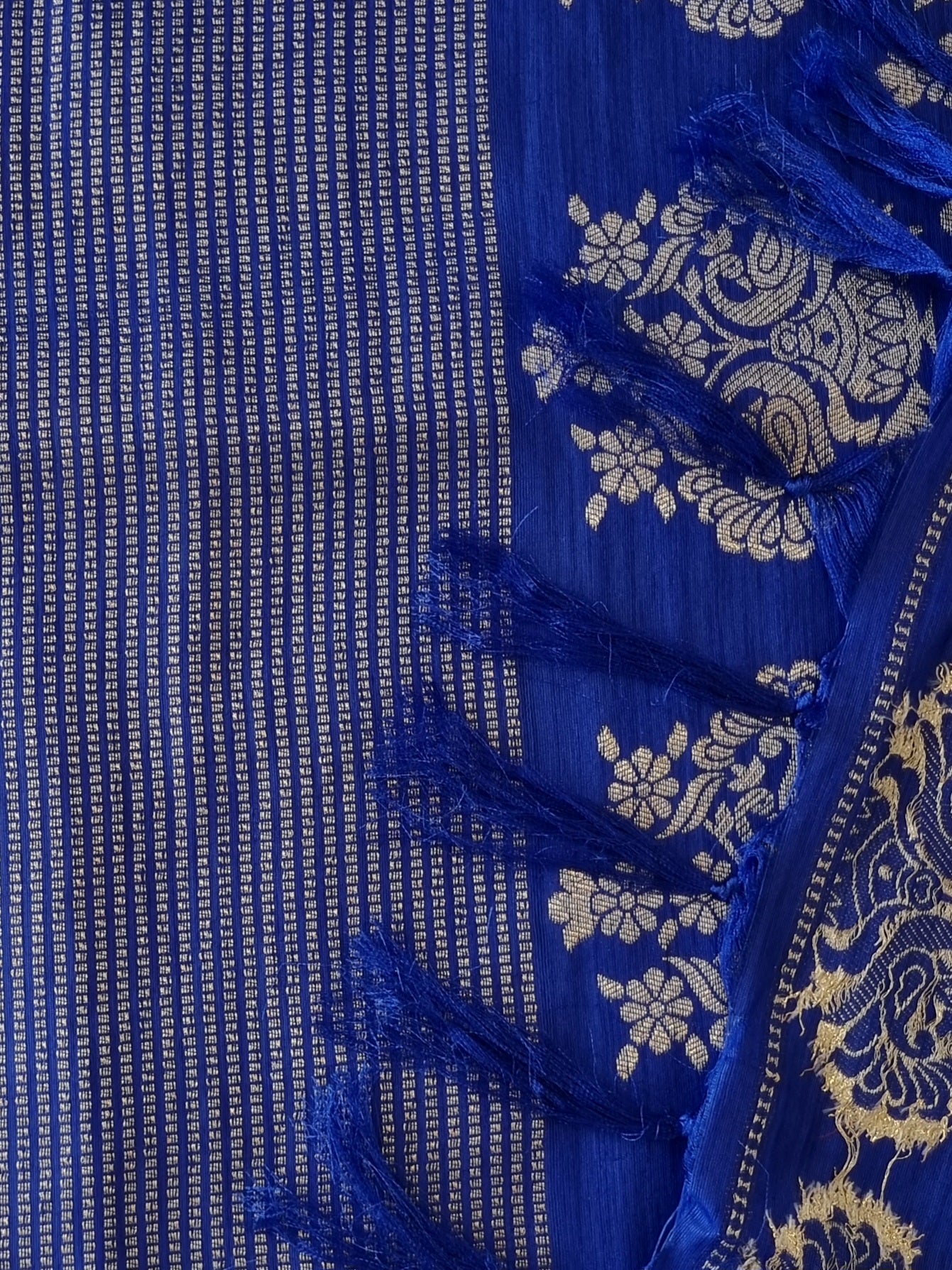 Semi Silk Saree, with woven borders, paired with matching blouse fabric