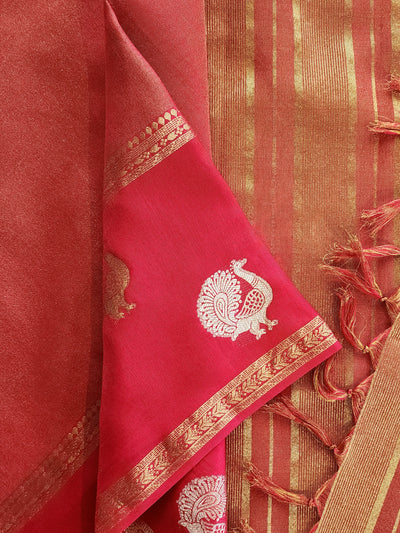 Pink Tissue Crepe Silk Saree with Contrast Borders
