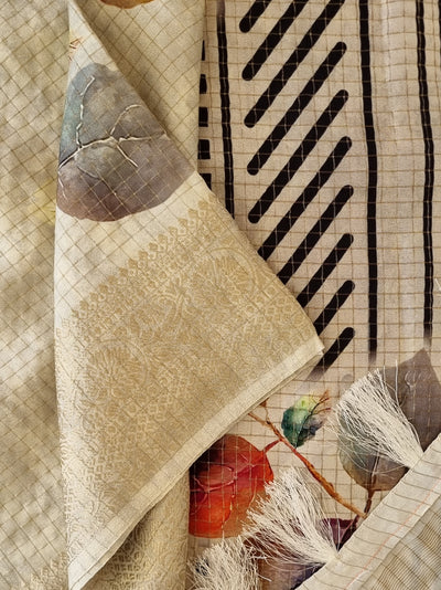 Tussar Silk Saree with Digital Floral Prints